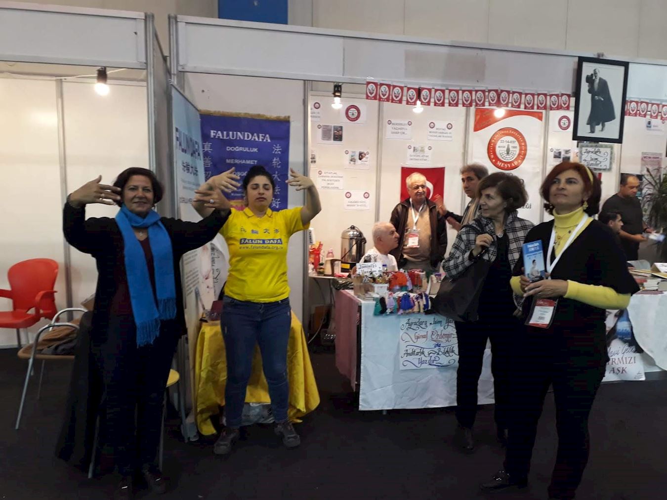 图3:土耳其法轮功学员在书展上向民众介绍法轮功