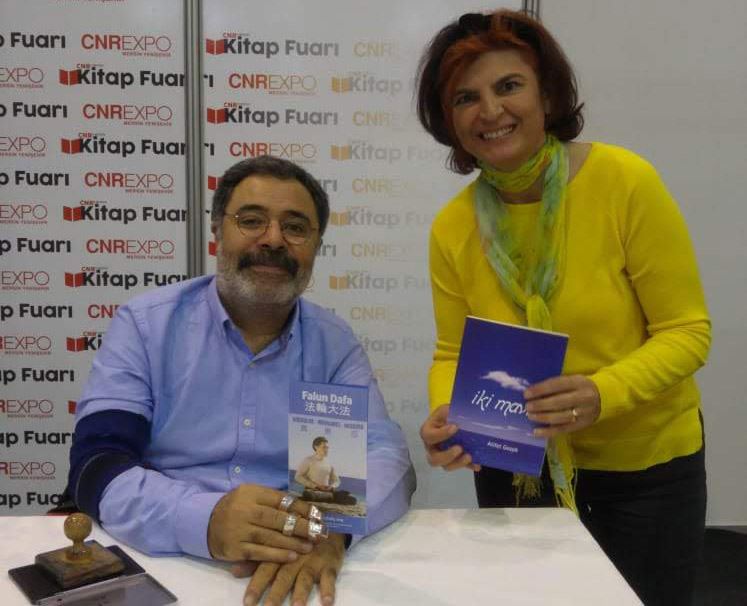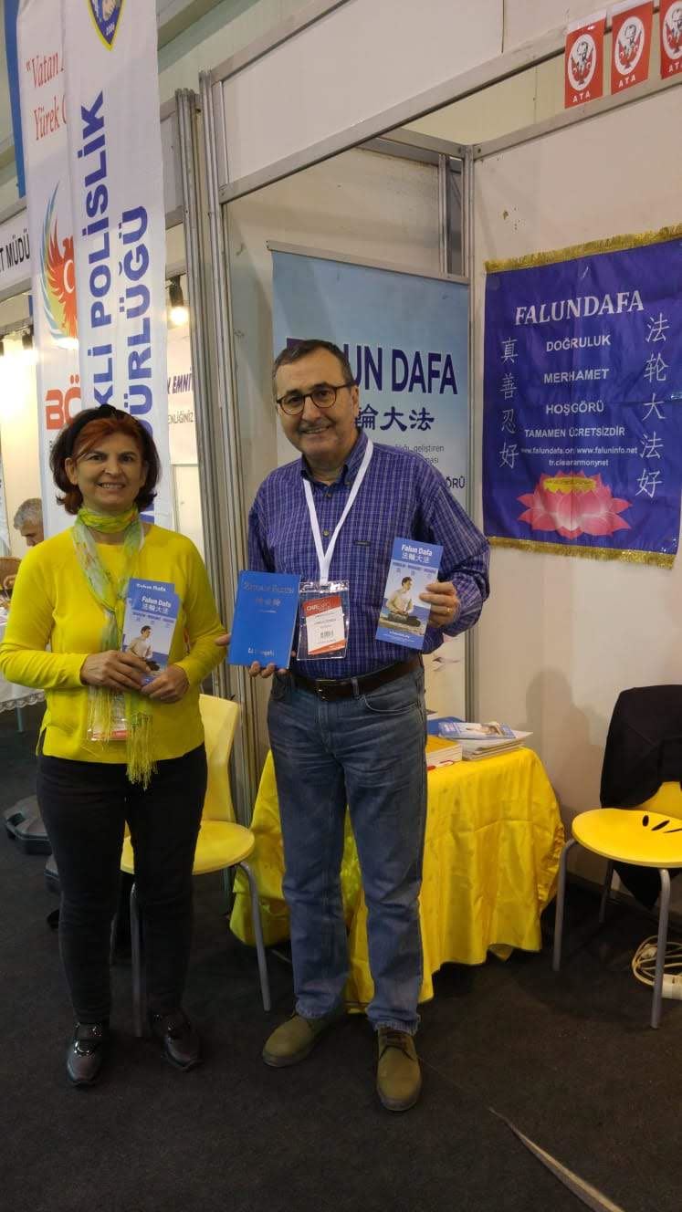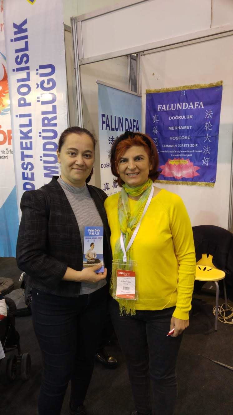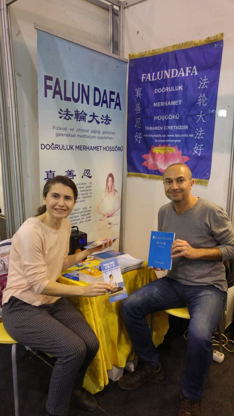 参观书展的内斯利罕(Neslihan)看到法轮大法的摊位时非常高兴。 她说大约十五年前她炼过法轮功,还请了《转法轮》。她当时很喜欢炼功,但后来就不炼了。她索要了当地炼功点的信息。