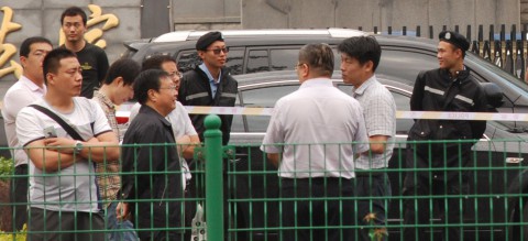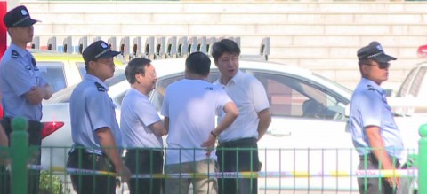 第一次非法庭审,一个外地五十多岁戴眼镜的男士,来到现场准备去旁听声援。到南门办理旁听,大门已关闭,武警骗他说:“已经办完了”,他义正词严的指出:“说好开庭前给办,现在离开庭还有半小时,竟然就不给办了。” “炼法轮功的碍你们什么事啦,不就是一群好人吗?!你们就是流氓和骗子。”四个警察围上来,一把抓掉眼镜,扇了他三个耳光,卡住脖子,两脚把他踹上警车,劫持到泃阳镇派出所,非法拘禁七个多小时,才被国保送到燕郊。