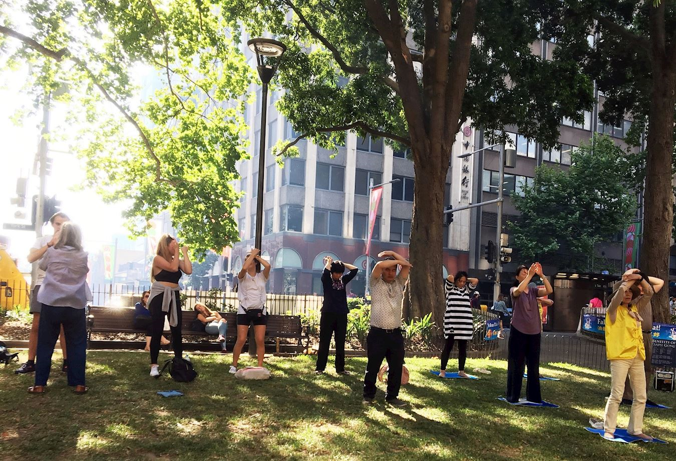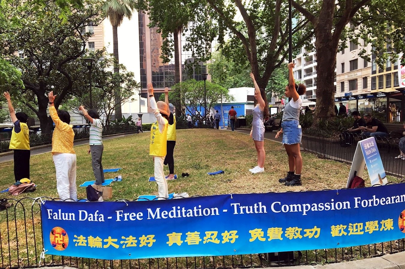 有的行人当场学炼法轮功后感觉非常舒服,法轮功学员告诉他们悉尼将于十一月份,和明年一月份举办免费的九天教功班,他们听后非常高兴并表示要参加。