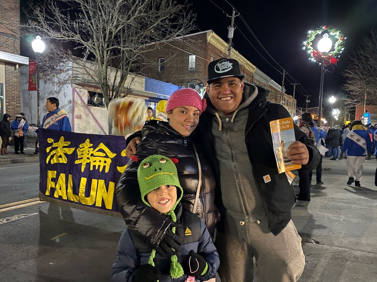 理查德(Ricardo)与太太和孩子在法轮功队伍前拍照后说:“我之前就知道法轮大法是好的!很多人相信。”