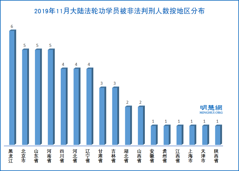 据明慧网信息统计,二零一九年十一月份49名法轮功学员被非法判刑,分布在十七个省、自治区、直辖市的31个城市。