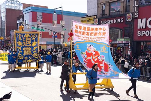 .退:党!服务中心在法拉盛参加一年一度的纽约华人中国新年大游行中的游行队伍。'>图1~8:二零一九年二月九日,全球.退:党!服务中心在法拉盛参加一年一度的纽约华人中国新年大游行中的游行队伍。 |
