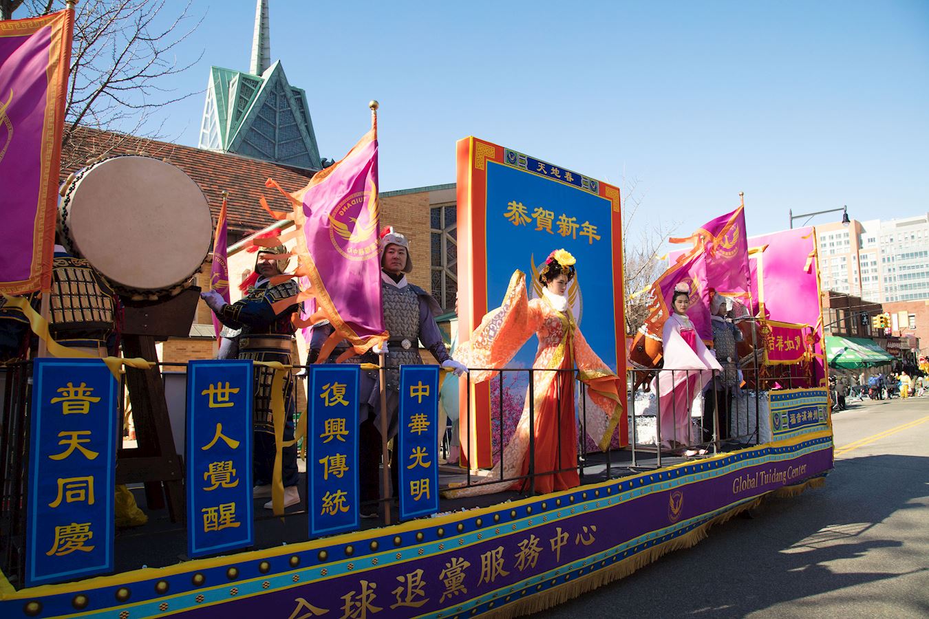 <英文版: http://en.d2s3ombhnov3zf.cloudfront.net/html/articles/2019/2/15/175839.html>法拉盛新年大游行 退!党!花车传喜讯(图)