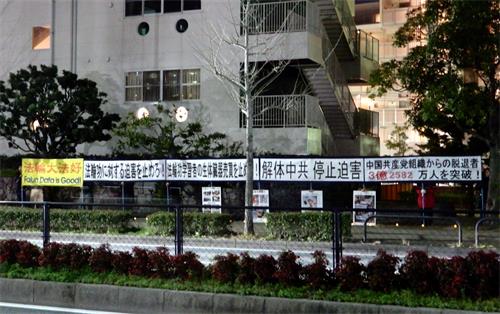 自一九九九年七月二十日以江泽民为首的中共邪*党-发起对法轮功的迫害以来,熊本地区法轮功学员每逢大年除夕之际,都会来到位于九州福冈的中领馆前进行和平抗议。二零一九年二月四日大年除夕的傍晚,法轮功学员来到驻福冈中领馆前,打出“法轮大法好!”、“解体中共,停止迫害”、“立即停止对法轮功的迫害”、“立即停止对法轮功学员活摘器官”等横幅和标语牌,呼吁各界关注在中国发生的残酷的人权迫害。