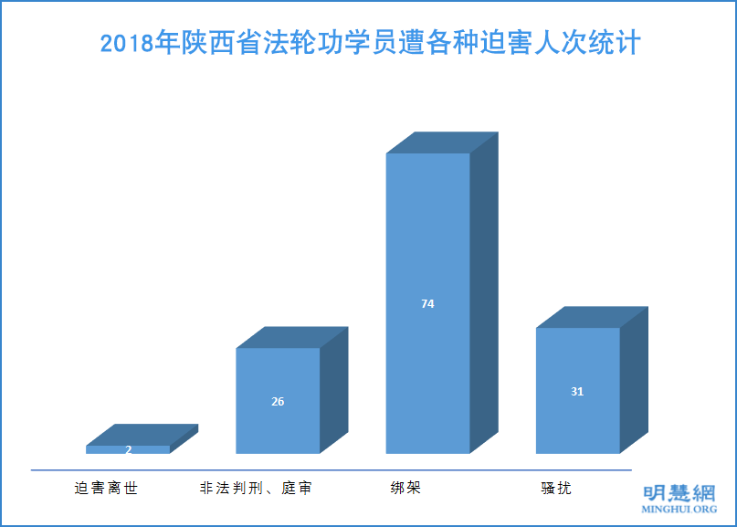 ![]() 图:2018年陕西省法轮功学员遭各种迫害人次统计 |