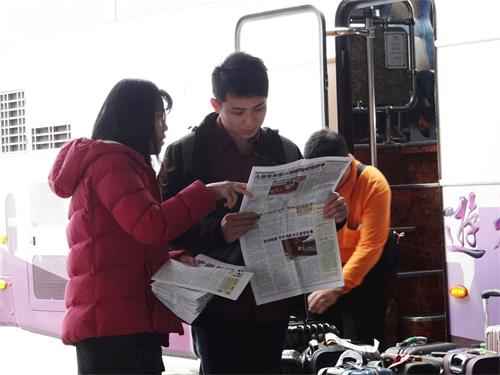 【明慧网二零一九年二月十九日】(明慧记者黄宇生、郑语焉、方慧台湾桃园报导)两岸开通以来,中国民众可以透过旅行团或自由行来台旅游。抵达台湾桃园机场时,不论是白天、黑夜甚至凌晨,都能遇见迎接他们的法轮功学员上前亲切的问候、递上一份真相资料,及“旅途平安”的真诚祝福。