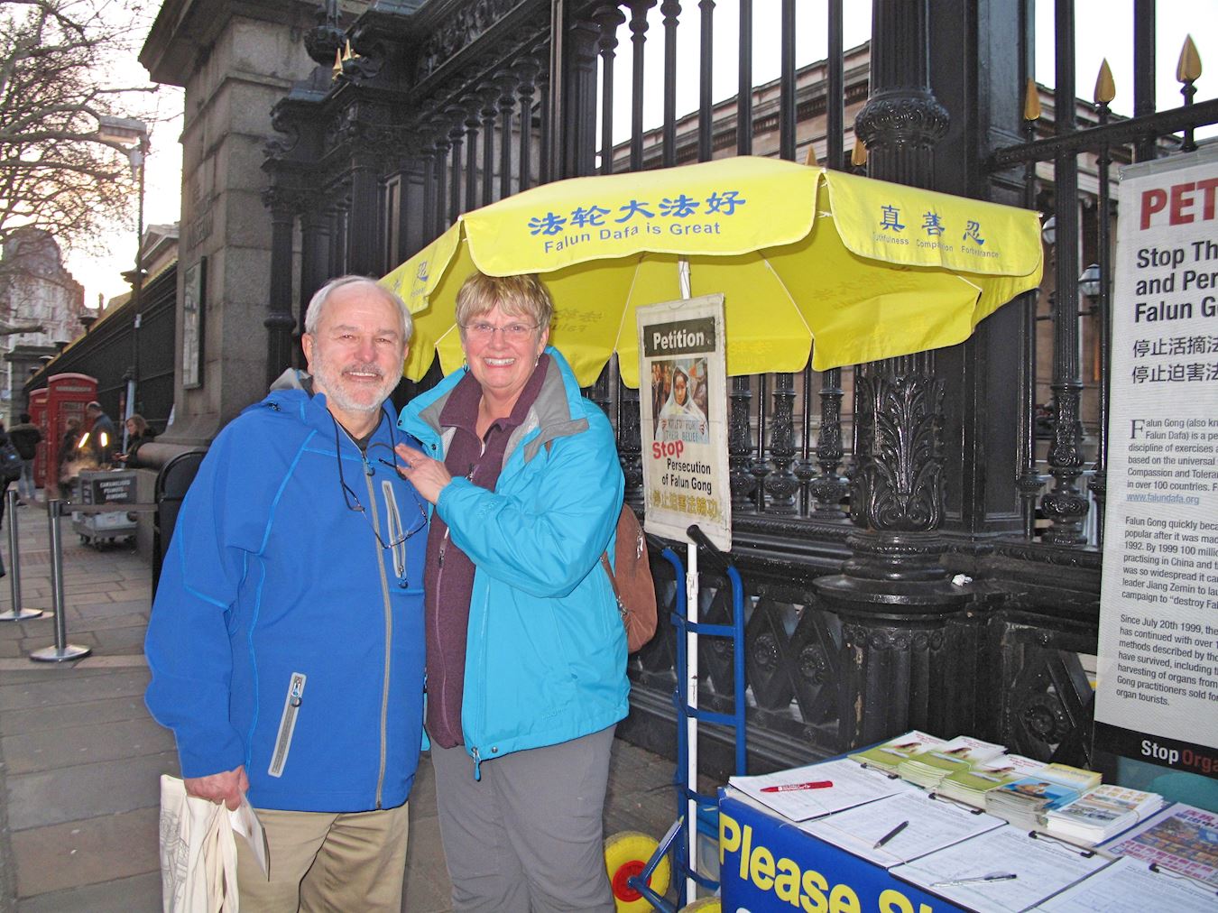 罗杰(Roger)是来自美国密西根州的社会学教授,他和太太凯西(Cathy)在大英博物馆大门前与法轮功学员交谈了解真相,二人都签名要求制止中共对法轮功的残酷迫害。罗杰了解中共一直在毁灭传统文化和信仰,专制政权为一己之私不顾人民死活,认为中共在专制体制下大规模活摘法轮功学员器官牟取暴利是在对人类犯罪:“这(中共活摘器官)太糟糕了”,“为了赚钱无恶不作,他们(中共活摘器官)的行径已经不配做人了”,“这是人类的悲剧,这是在对人类犯罪。”