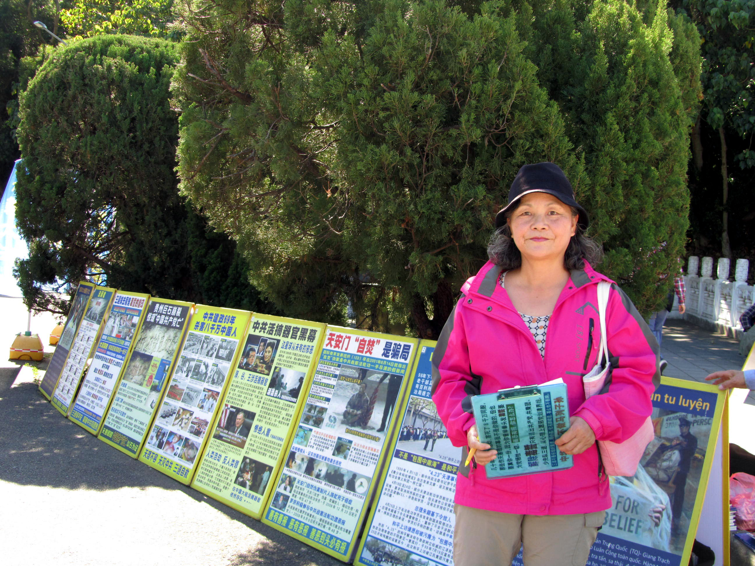![]() 图10:从大陆嫁到台湾的李鑫菊,从二零零五年起就每天都到台北故宫讲真相劝退。 |