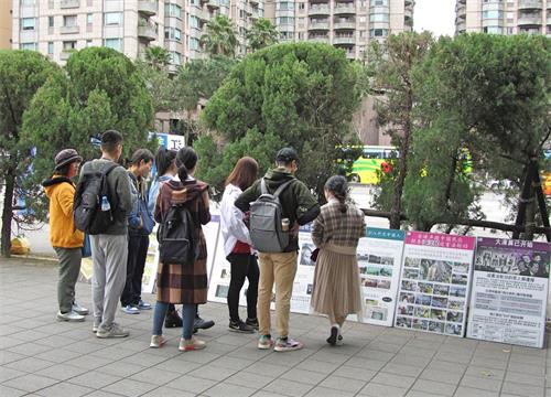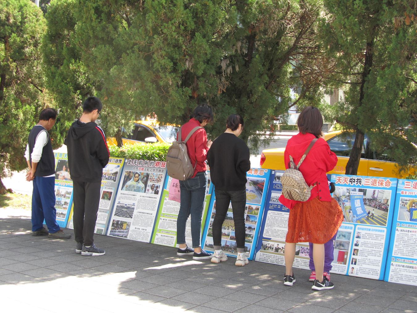 常有好奇的台湾民众趋前询问:“你们在这里做什么?”听学员讲述法轮功真相,以及学员们自发自愿来在这里对中国大陆游客讲真相的唯一目的,是让他们明白真相,清除共产邪灵灌输的毒素和钳制,选择正义善良,与中共划清界限,以免天灭中共来临时,成为恶贯满盈的中共的陪葬。民众听言之后都会竖起大拇指表示钦佩与支持。也有不少大陆游客三:退.之后对学员竖起大拇指表示敬佩与感激。
