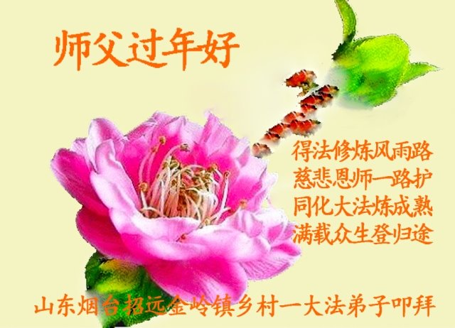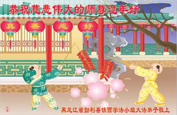 祝李大师过年好!我见到法轮功的学员很善良,乐于助人,感觉法轮大法真的很好。通过看资料受到启发,我也很拥护法轮大法,学习他们的善良和乐于助人。