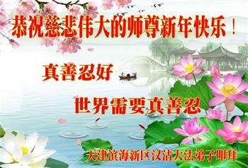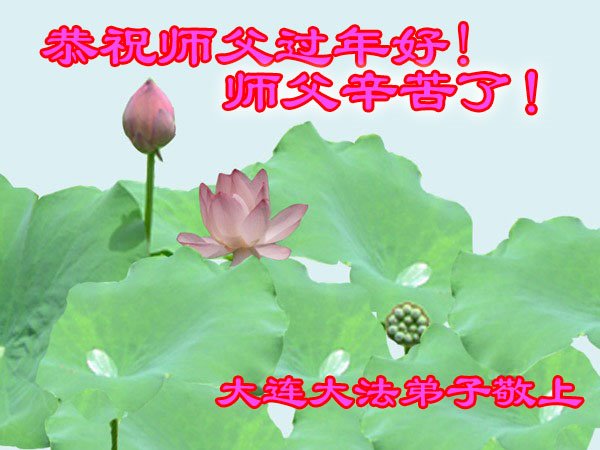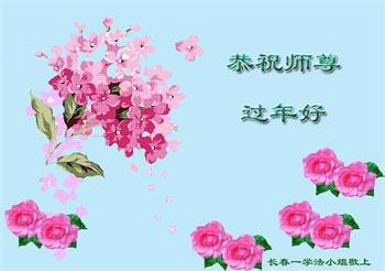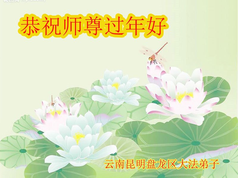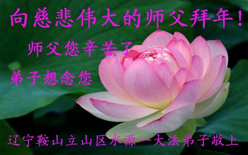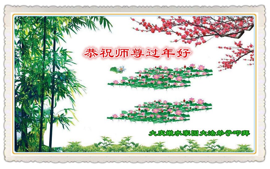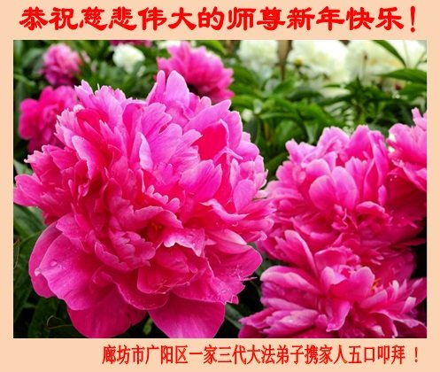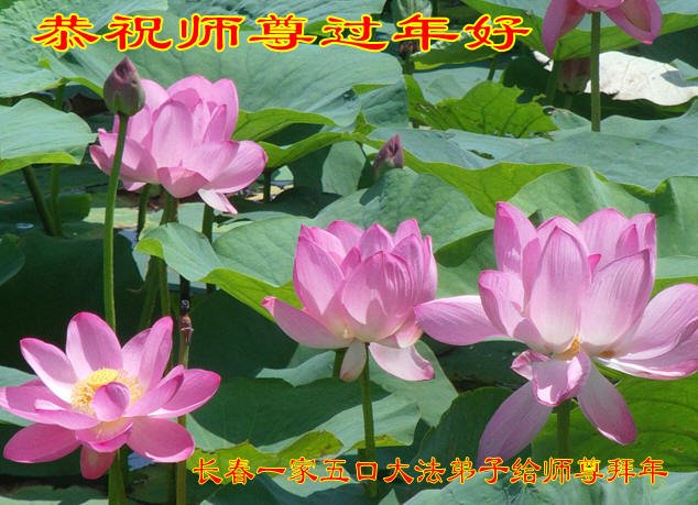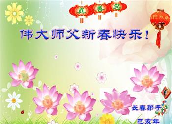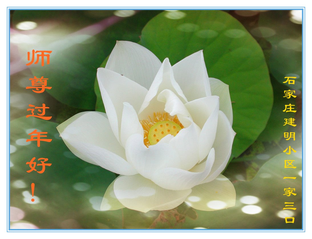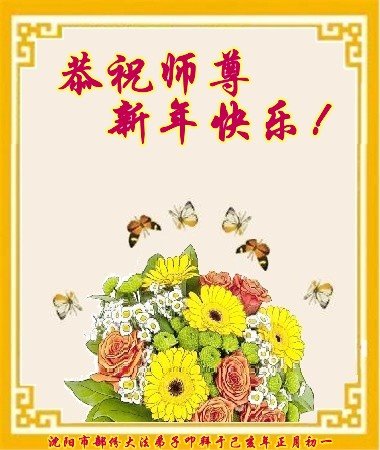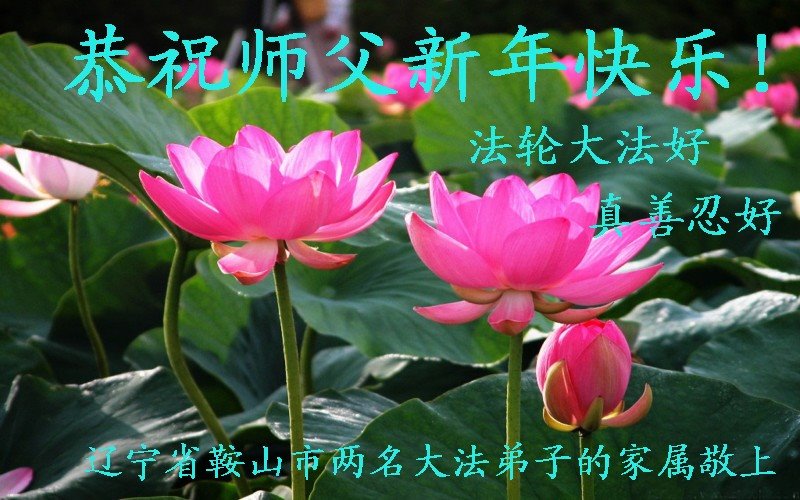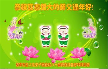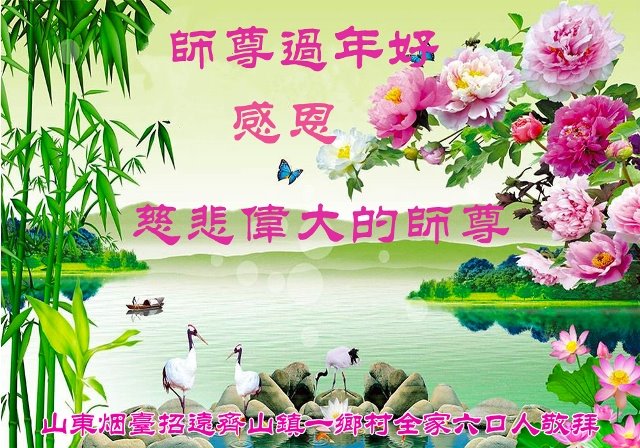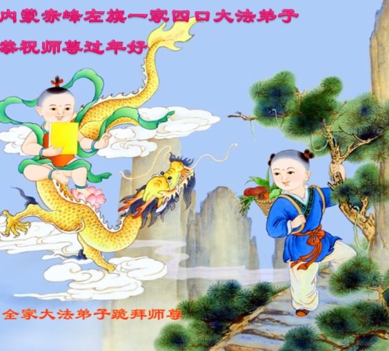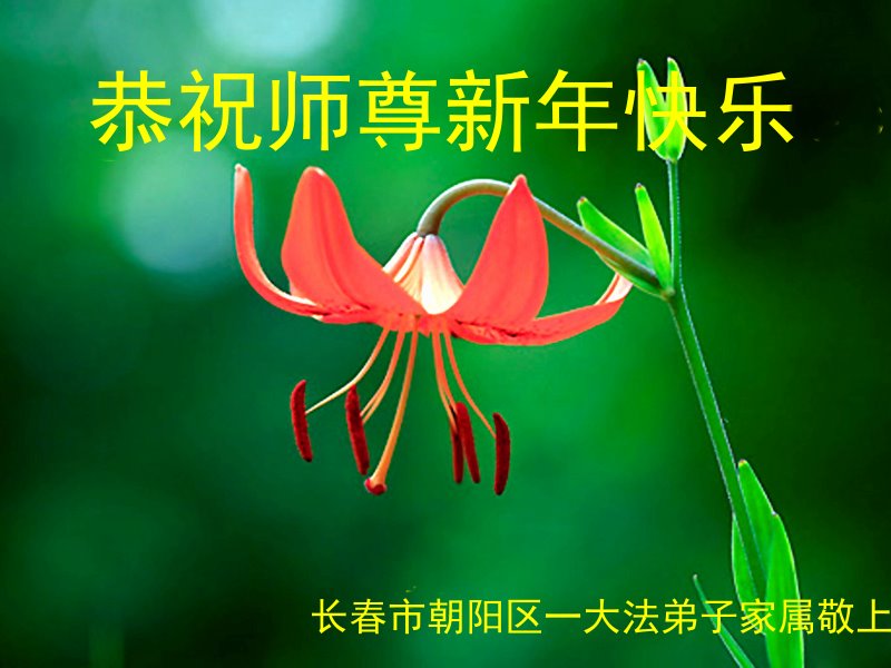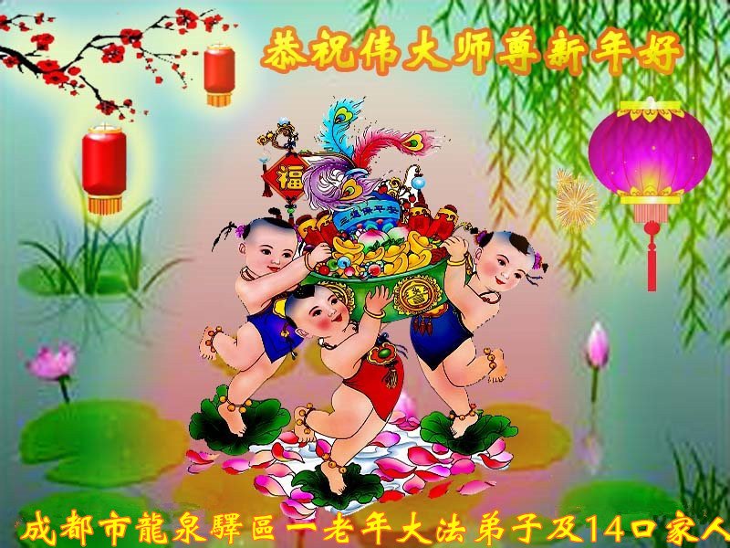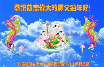 我们是大陆大法弟子的亲人,在您的弟子的耐心帮助之下,我们早已明白了法轮大法真相,早已做了三:退.,远离中共邪*党-;我们常常在心中虔诚敬念“法轮大法好,真善忍好”,现在我们身体健康,家庭和睦。在这新春伊始,万象更新的喜庆日子里,我们恭祝您新年快乐!李大师辛苦了!盼望李大师早日回到中国大陆和您的弟子团圆!