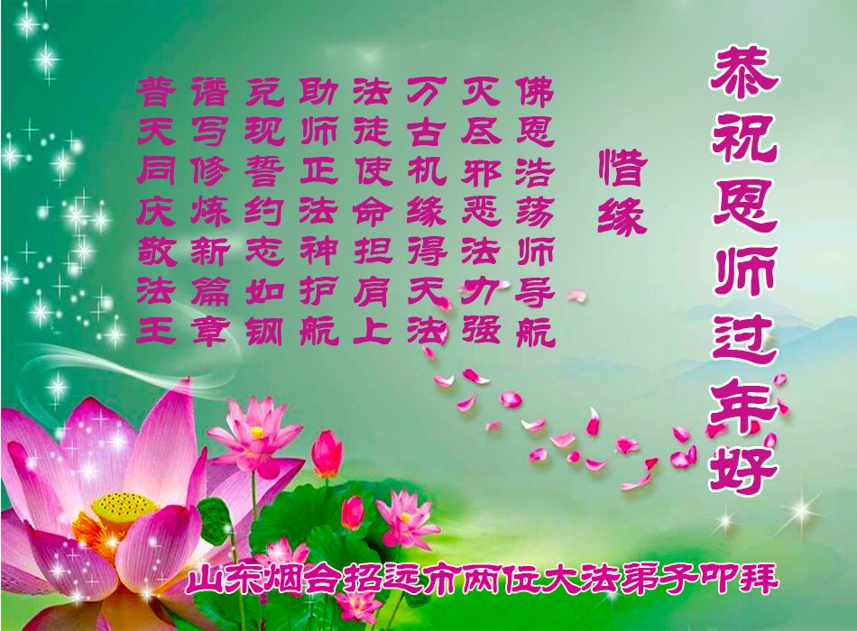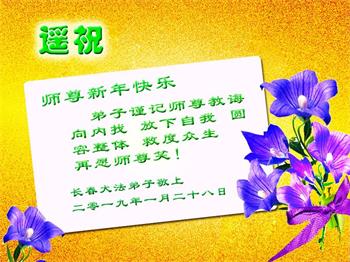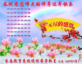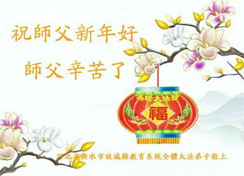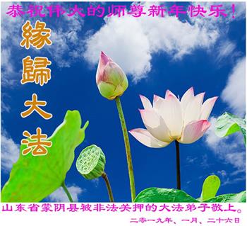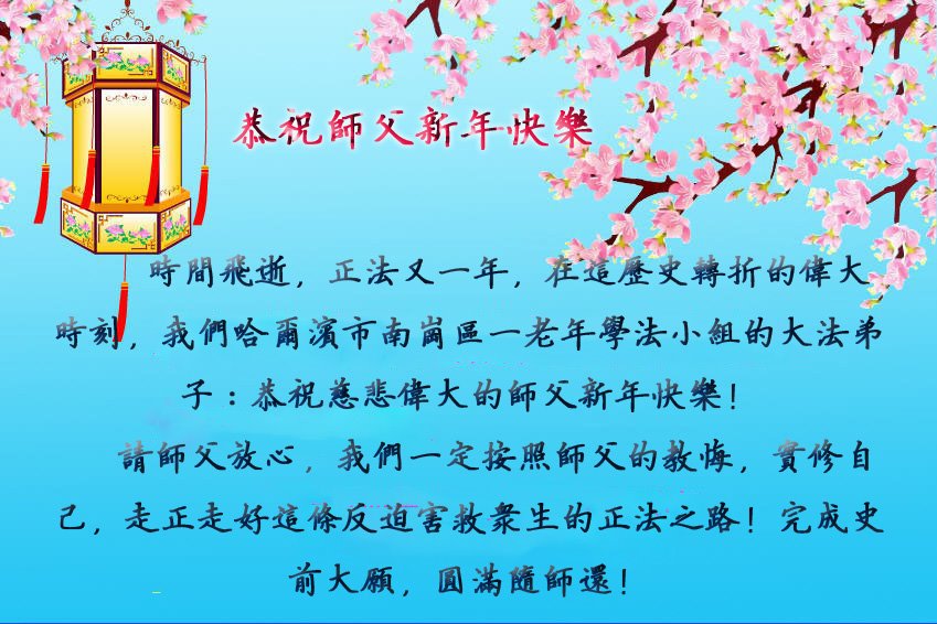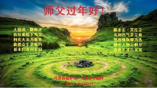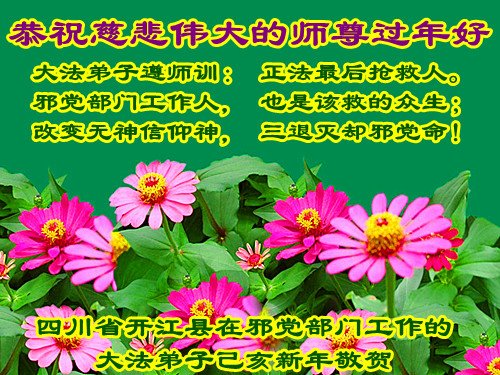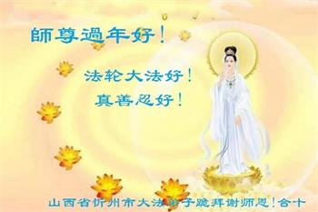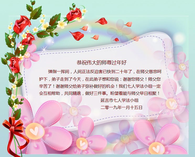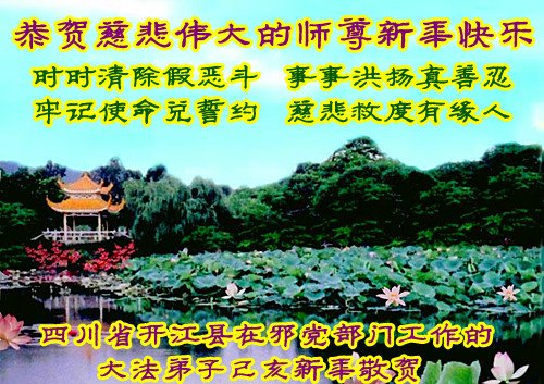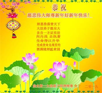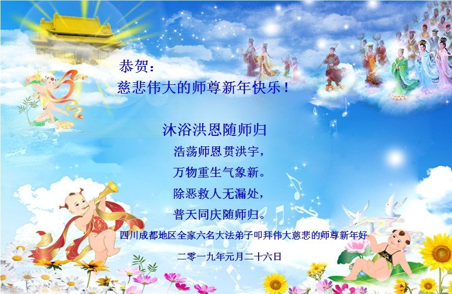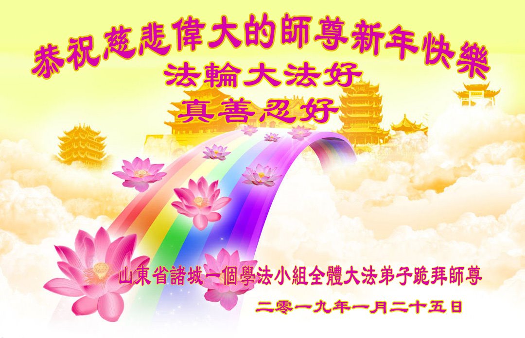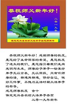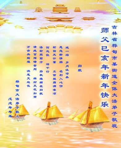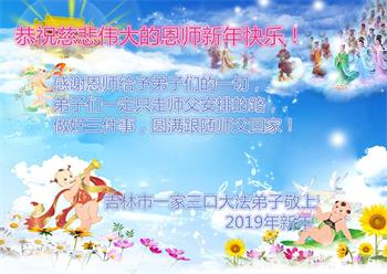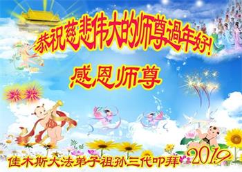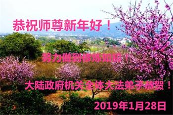 己亥年到来之时,中国各地公、检、法、司、政府机关系统的大法弟子感谢师父的救度之恩,恭祝师父新年快乐!