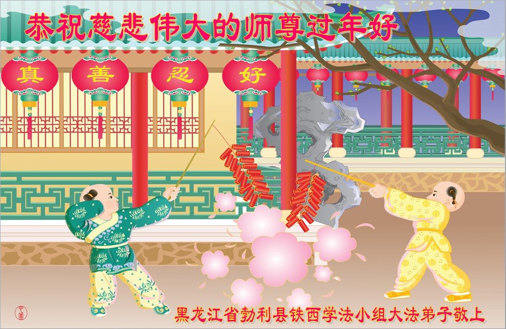 黑龙江省齐齐哈尔市富裕县大法弟子恭祝师尊大年快乐!