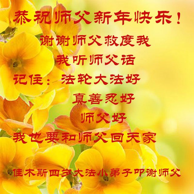 恭祝师父新年快乐!我们会一如既往的支持亲人修炼,支持大法,感恩师父对我们一家人的看护!我们殷切期盼师父早日回国!