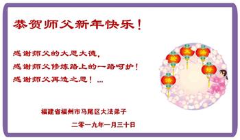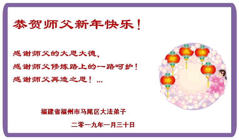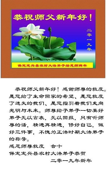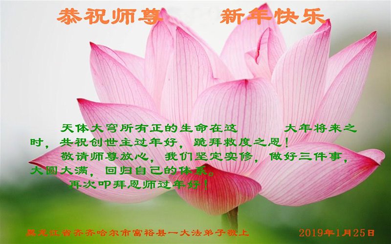 【明慧网二零一九年二月三日】2019年中国传统新年到来,中国各地民众感恩李洪志大师给人们带来了希望,表示将一如既往的支持法轮大法。