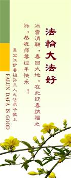 法轮大法“真、善、忍”的理念,就像日月的光辉,能照亮人心,使人道德升华;而共产党的无神论是万恶之源,沦丧了人类的道德。因此我非常敬重李洪志师父,在此恭祝师父新年好!