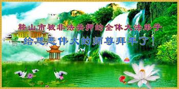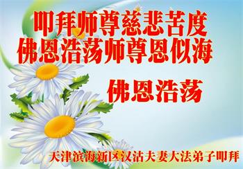 李大师,您好,您辛苦了!在我住院期间,有福听到了大法弟子给我讲的,使我真正明白了法轮功被迫害的真相。是江泽民一手导演的“天安门自焚”骗局,并栽赃给了法轮功,让您蒙受了不白之冤,在这巨大的栽赃陷害和世人不理解的压力下,您还在一如既往救度着众生,了不起!我敬佩您。