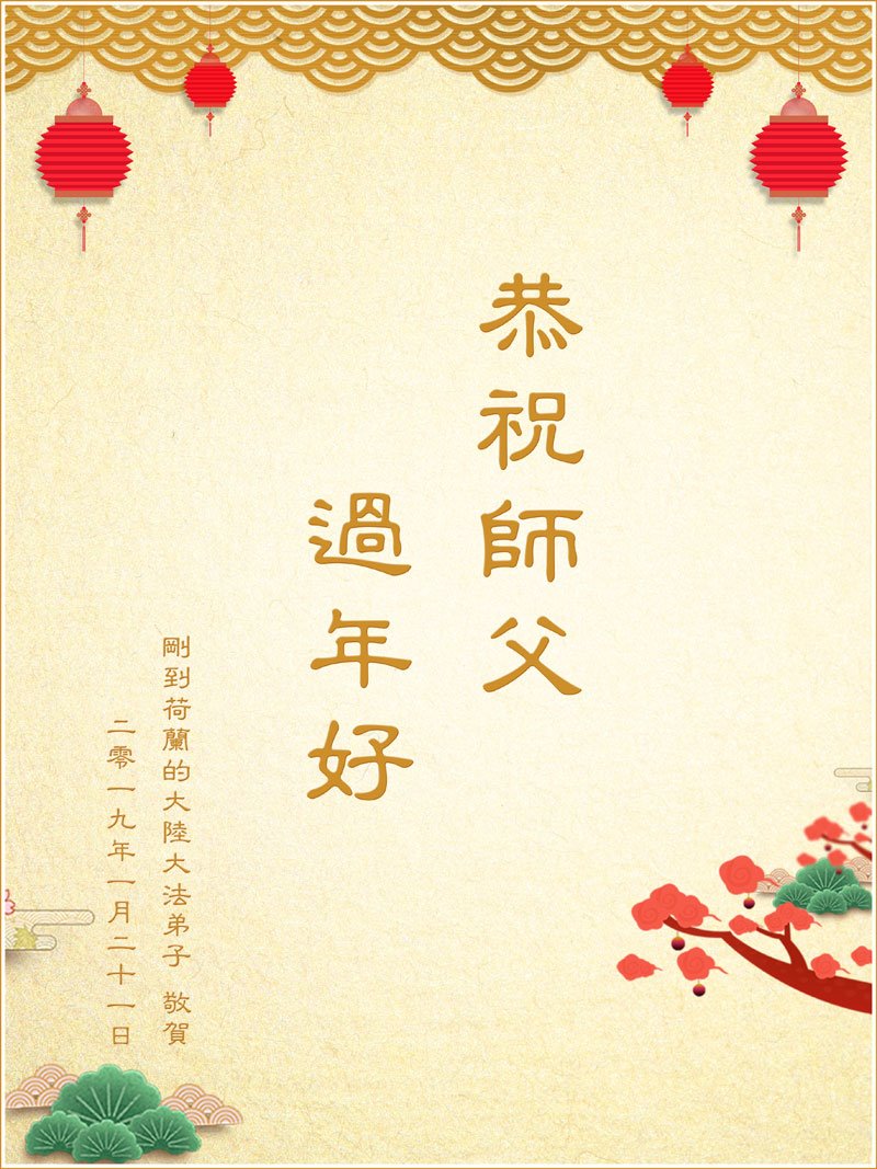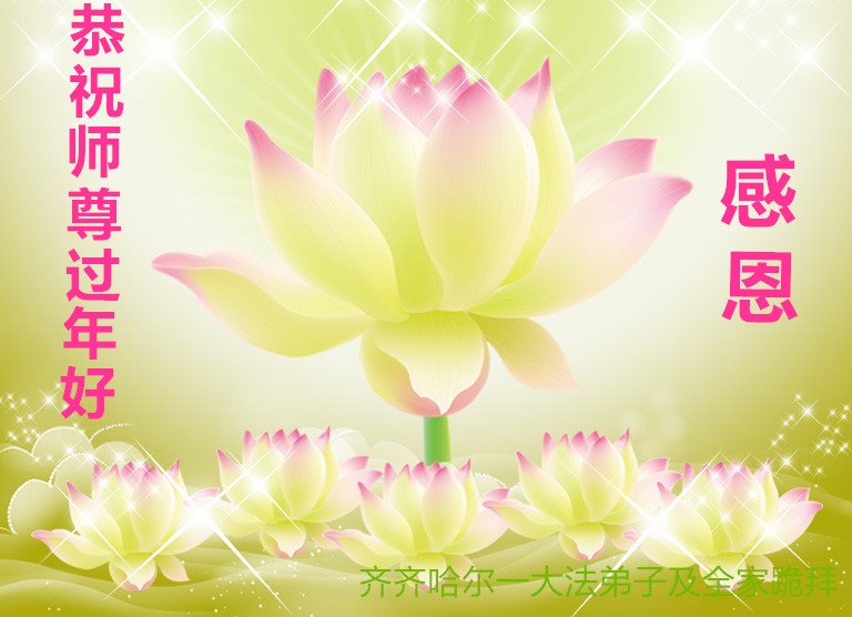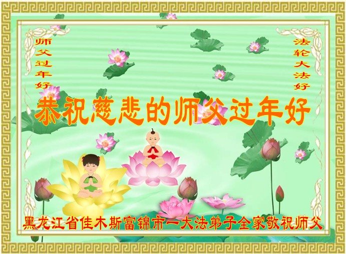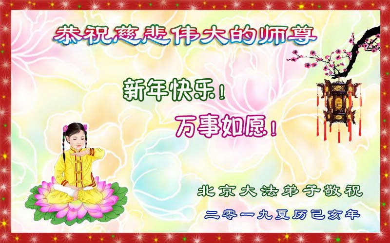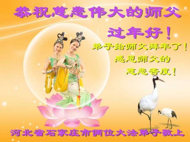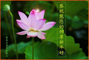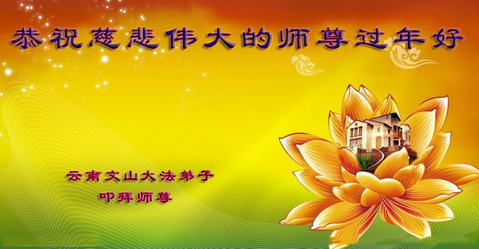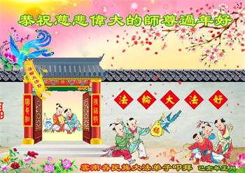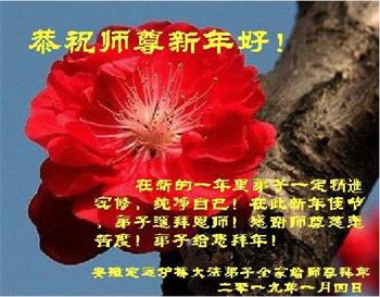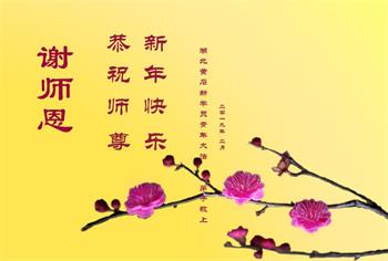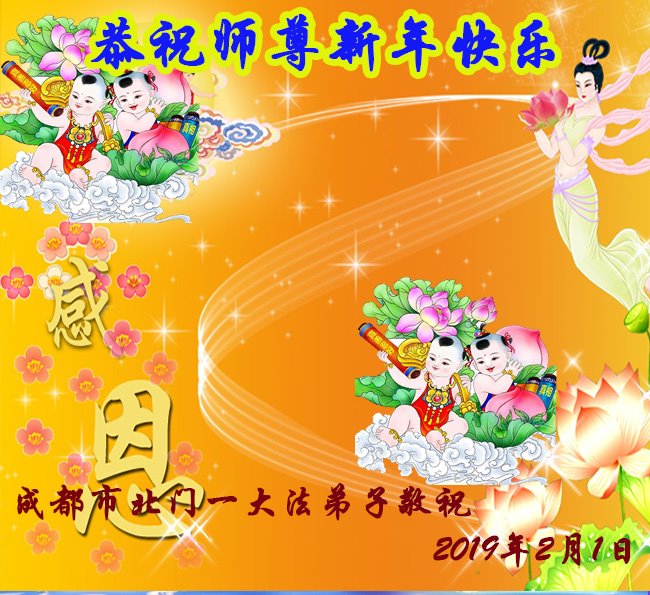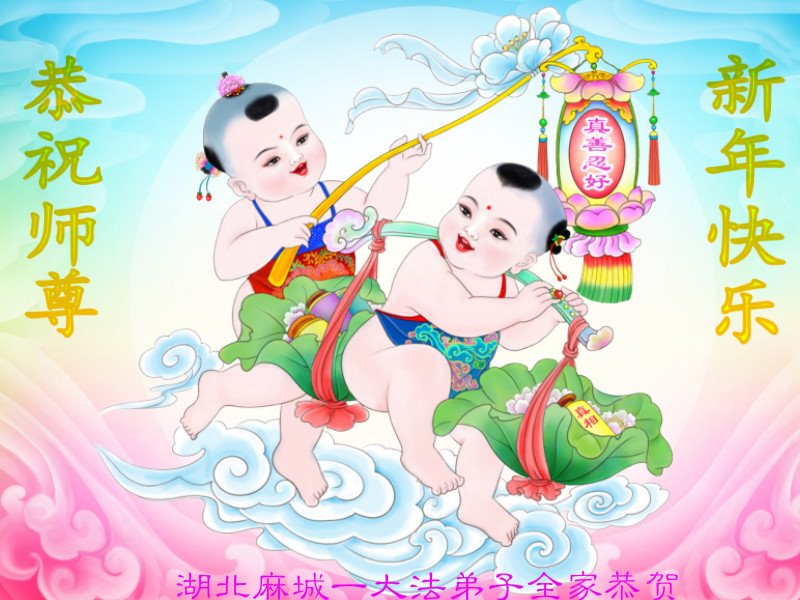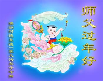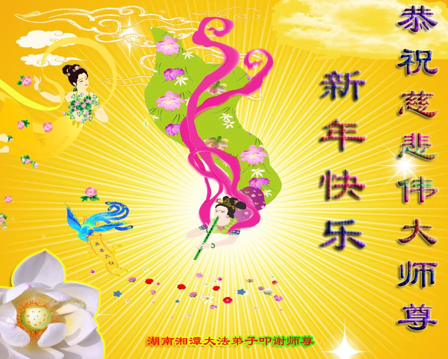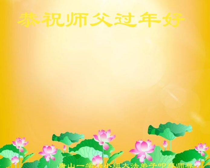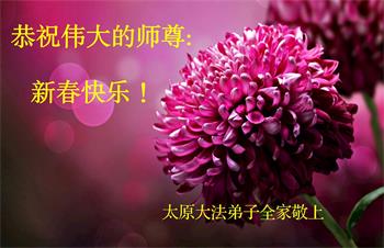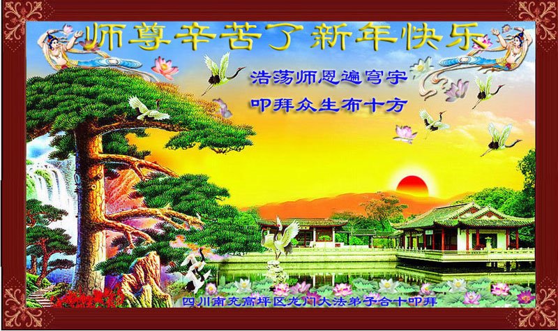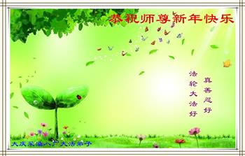 尊敬的师父:您好!在师尊救度苍穹无量众生、法正洪宇的伟大正法中,又一个中国新年来临了。值此辞旧迎新之际,法国大法弟子在无限感恩中向慈悲伟大的师父拜年!恭祝师父新年快乐!
