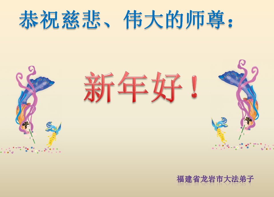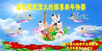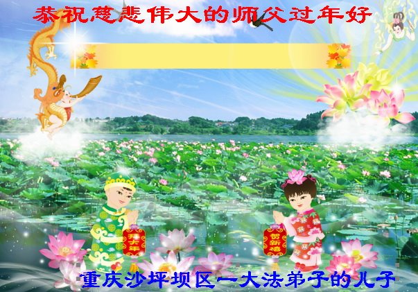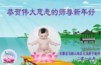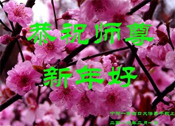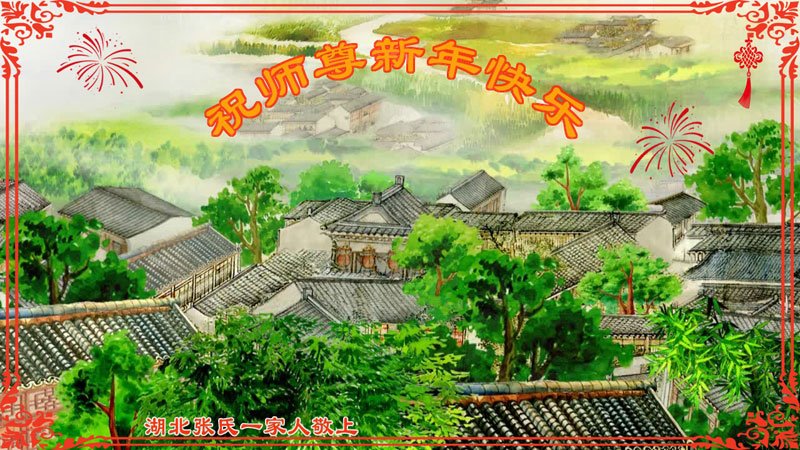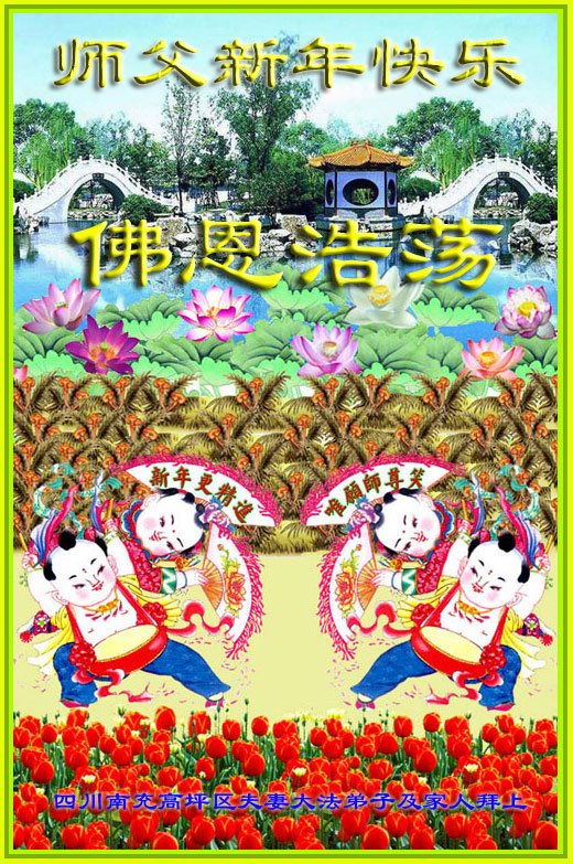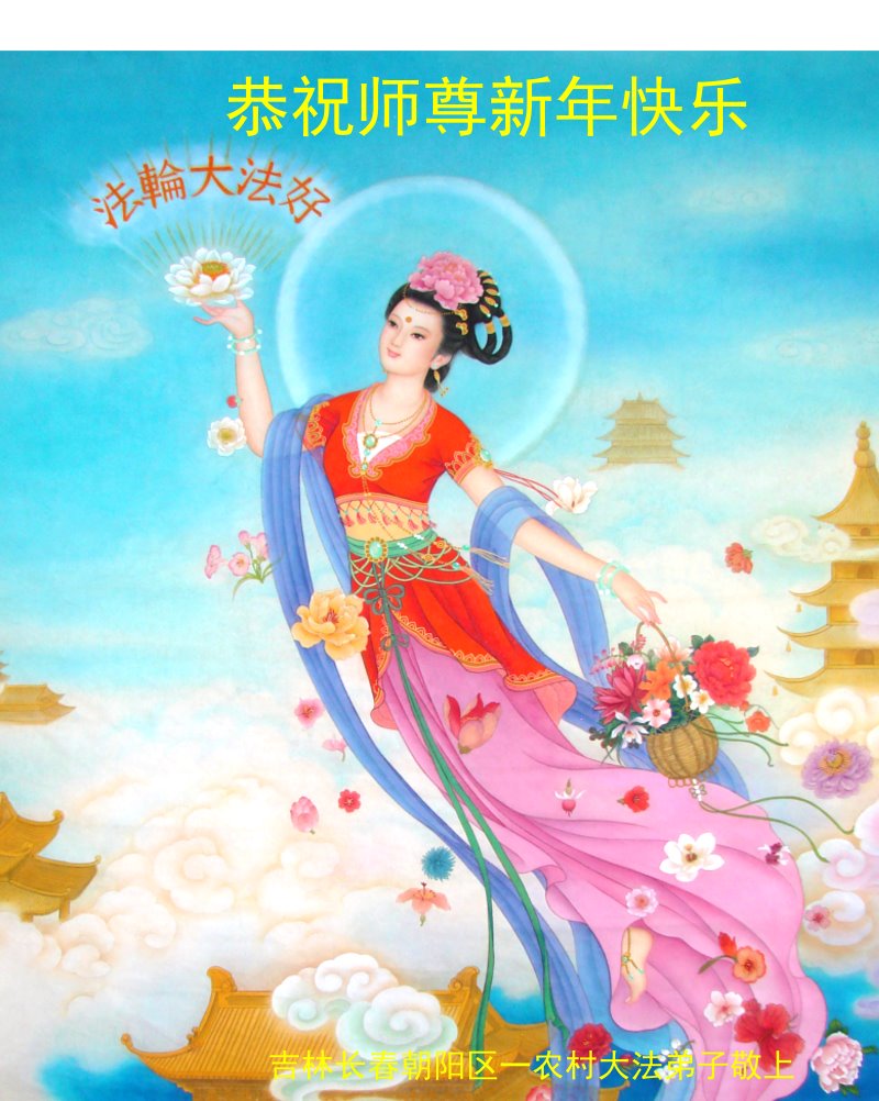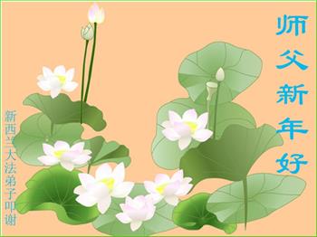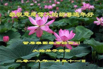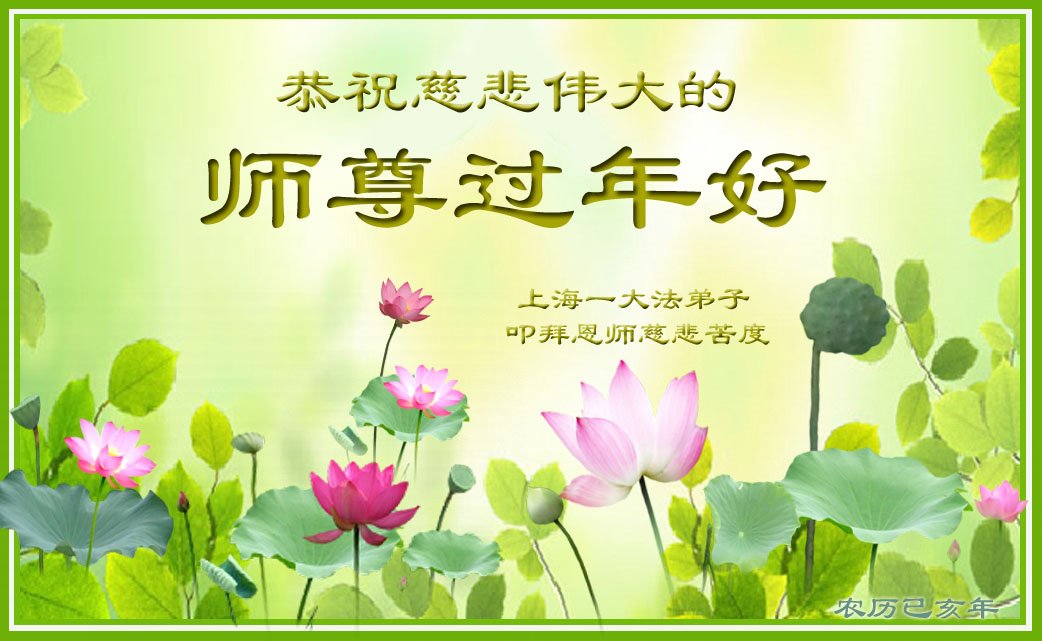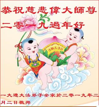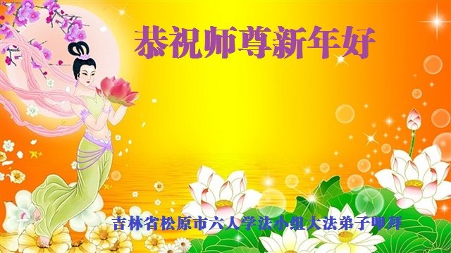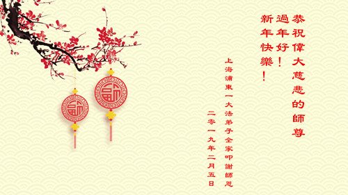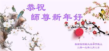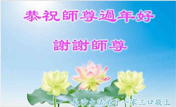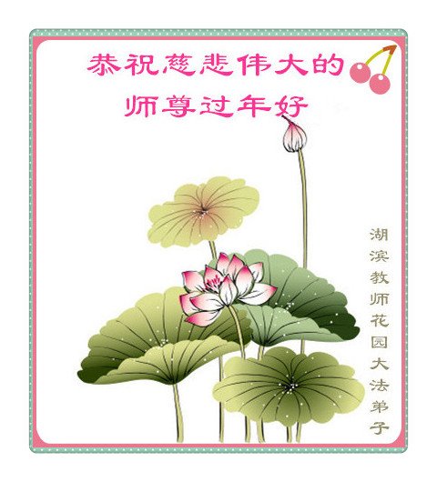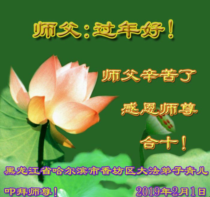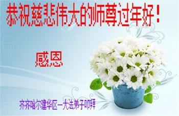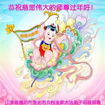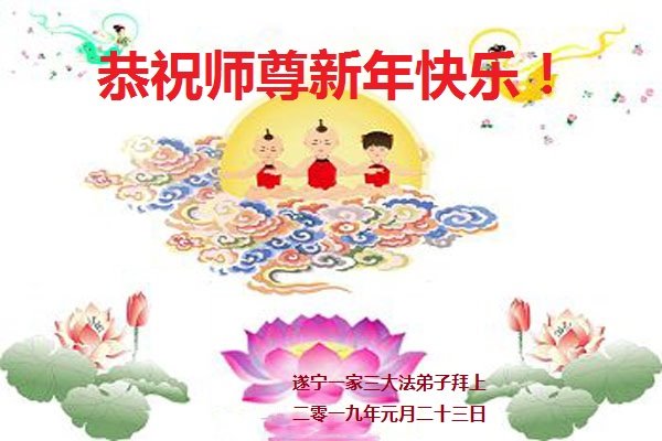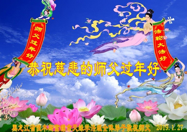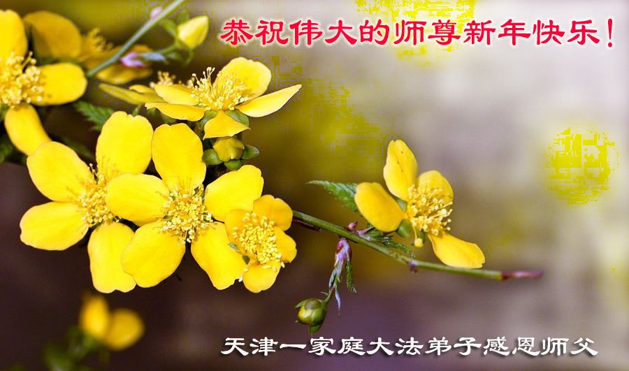 尊敬的师父:您好!在师尊救度苍穹无量众生、法正洪宇的伟大正法中,又一个中国新年来临了。值此辞旧迎新之际,法国大法弟子在无限感恩中向慈悲伟大的师父拜年!恭祝师父新年快乐!