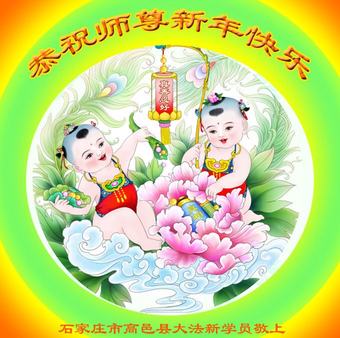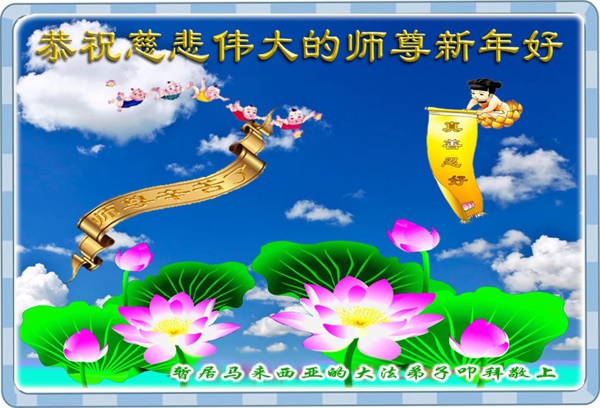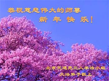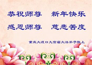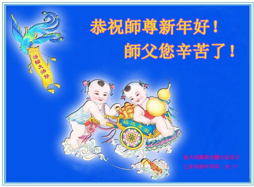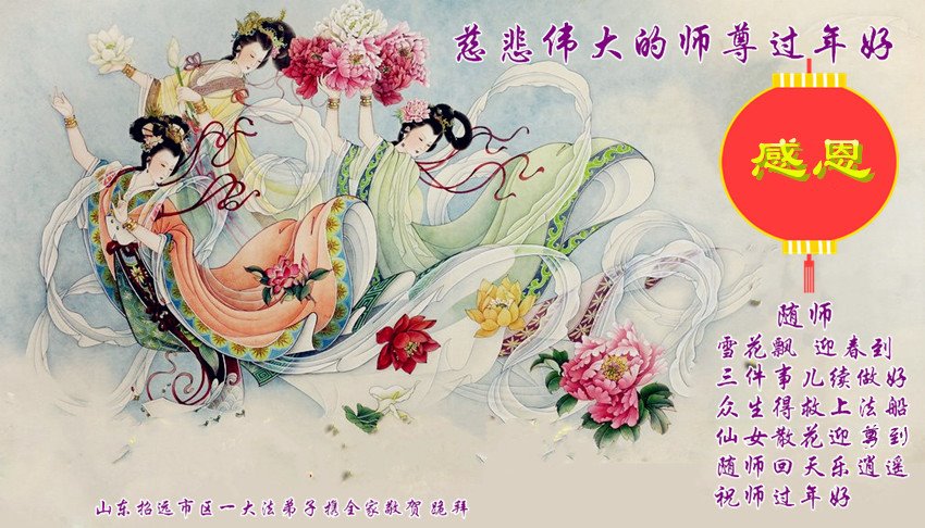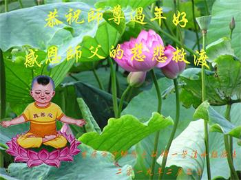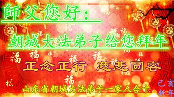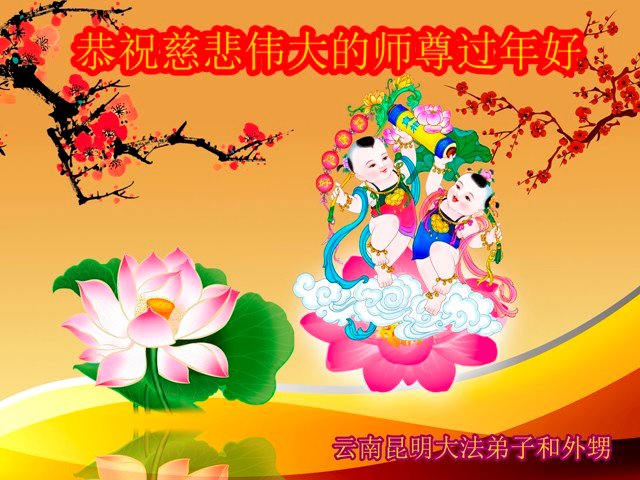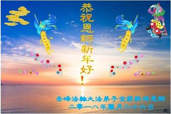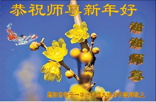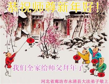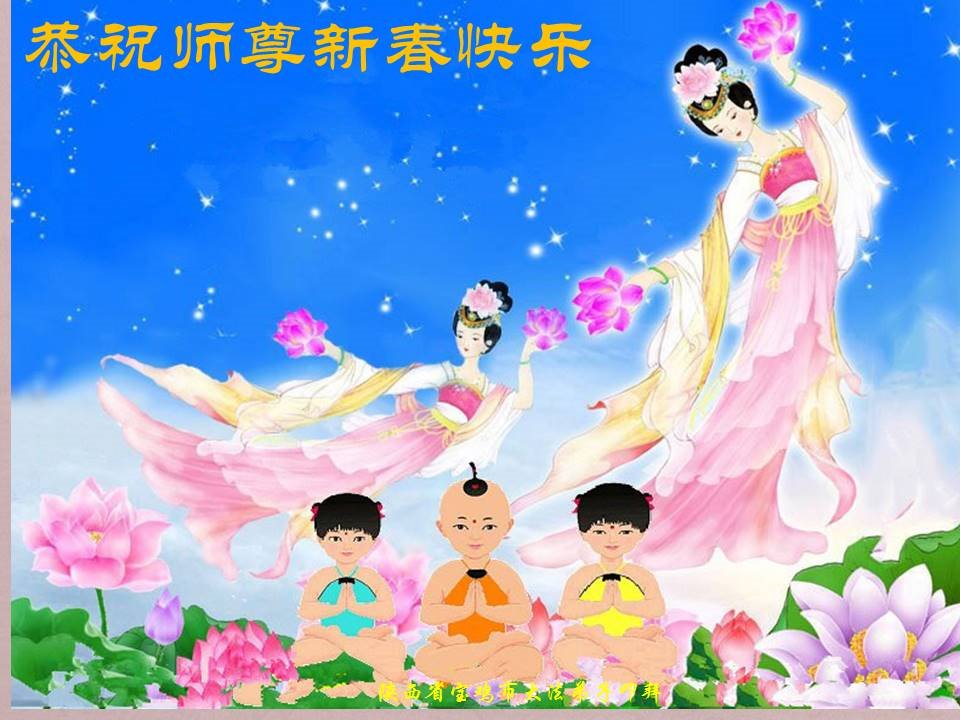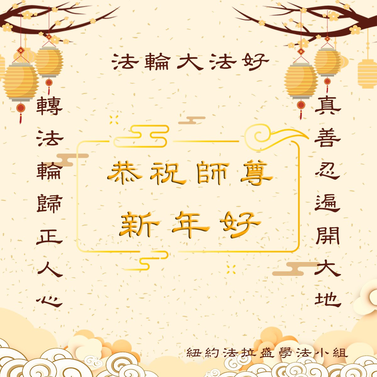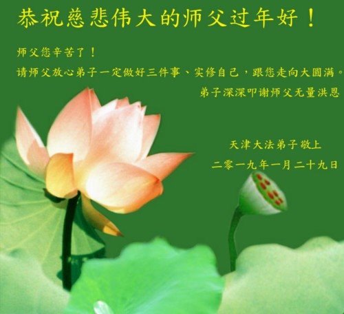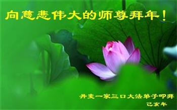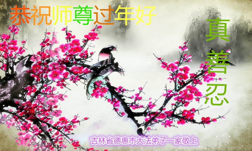 尊敬的师父:您好!在师尊救度苍穹无量众生、法正洪宇的伟大正法中,又一个中国新年来临了。值此辞旧迎新之际,法国大法弟子在无限感恩中向慈悲伟大的师父拜年!恭祝师父新年快乐!