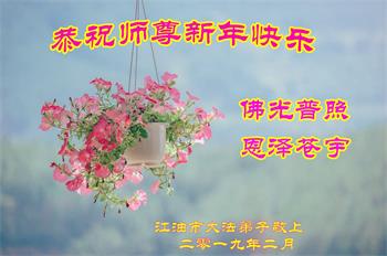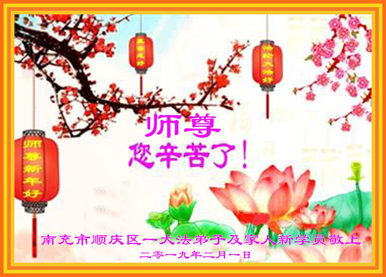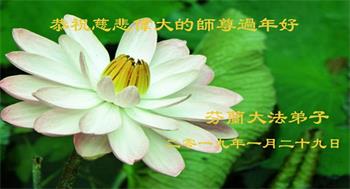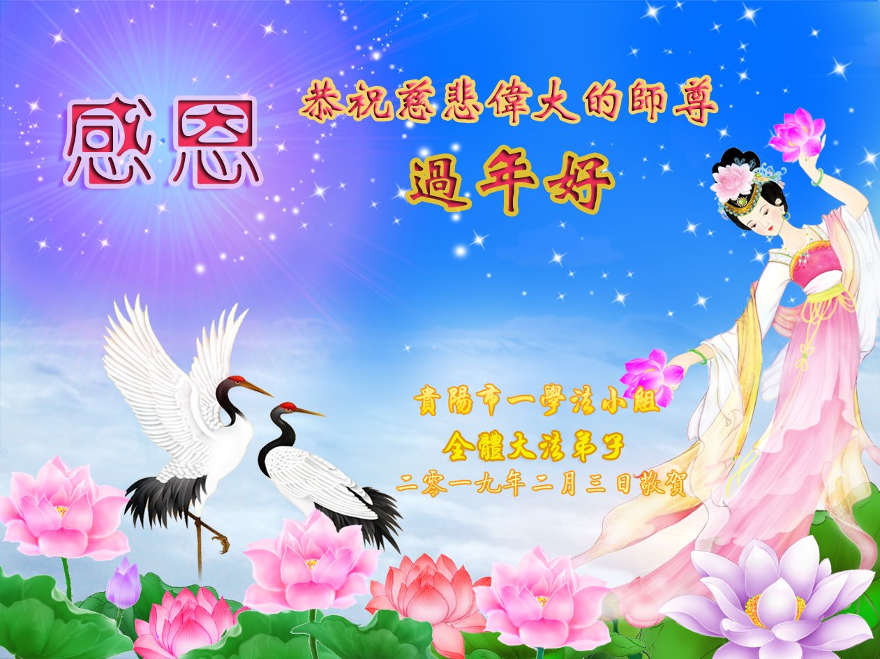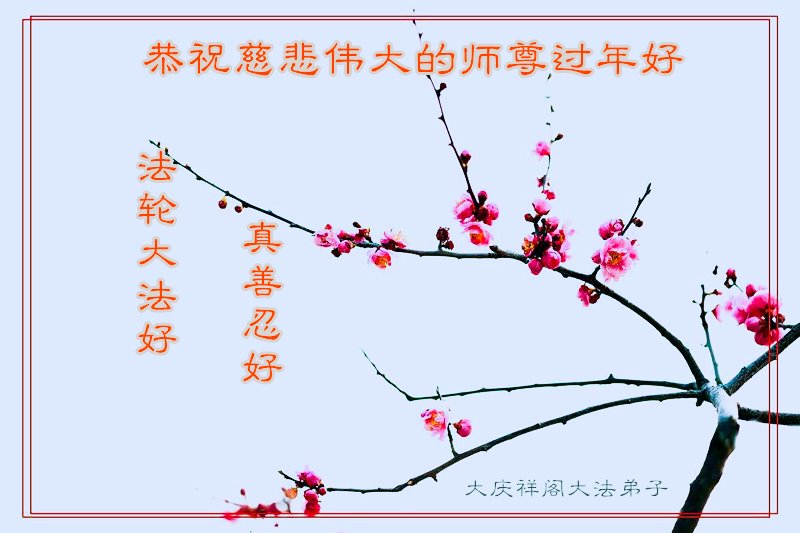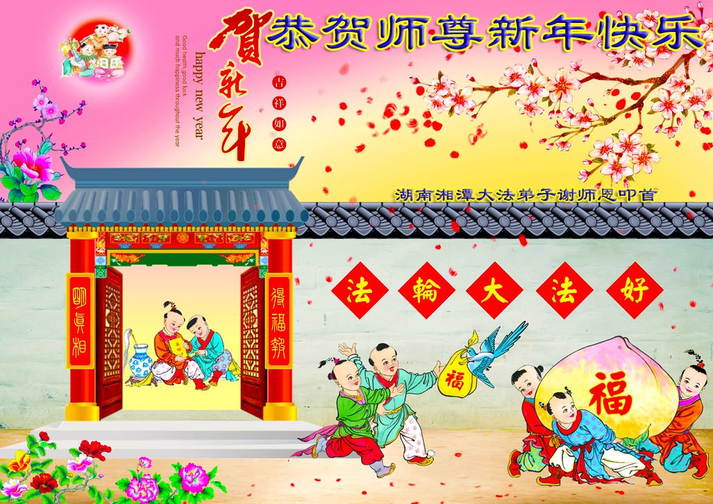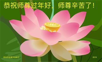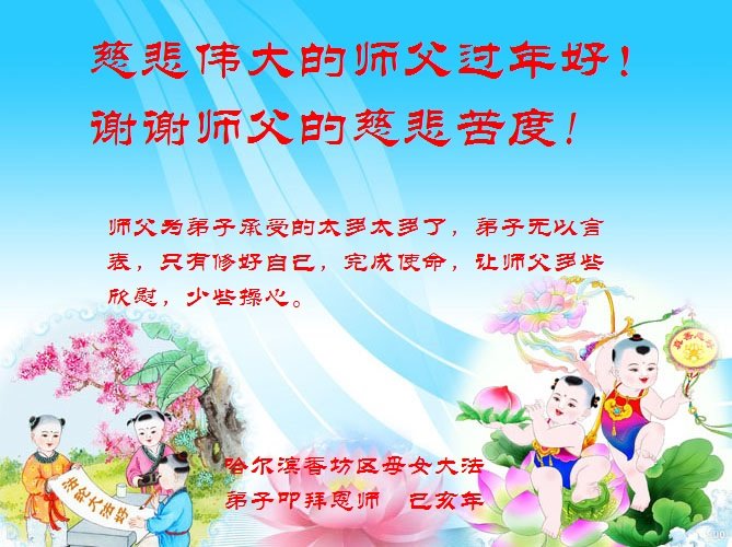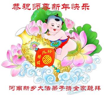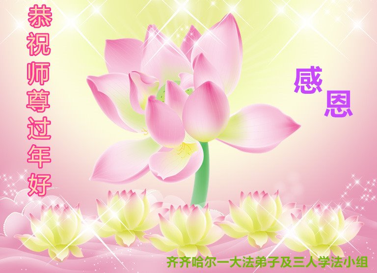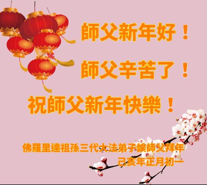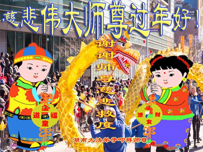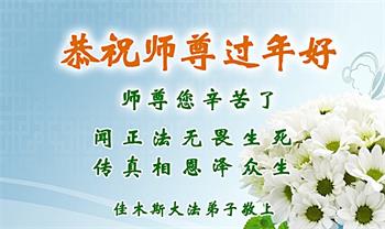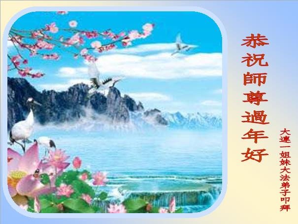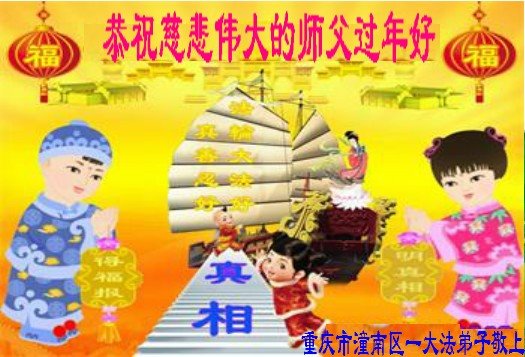 尊敬的师父:您好!在师尊救度苍穹无量众生、法正洪宇的伟大正法中,又一个中国新年来临了。值此辞旧迎新之际,法国大法弟子在无限感恩中向慈悲伟大的师父拜年!恭祝师父新年快乐!