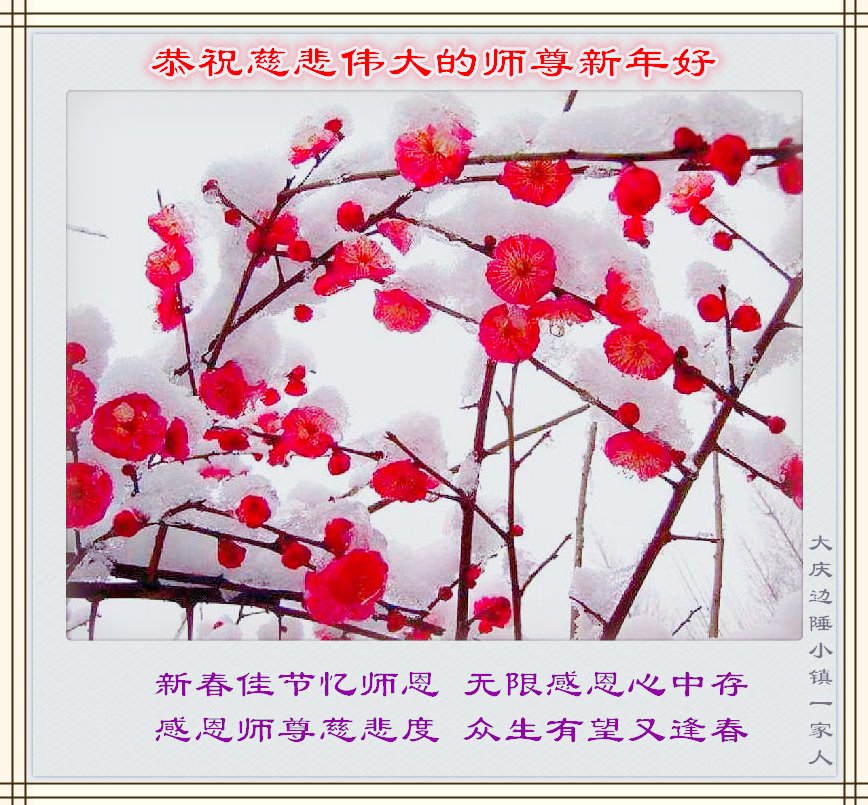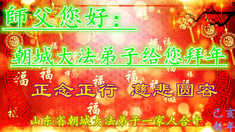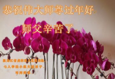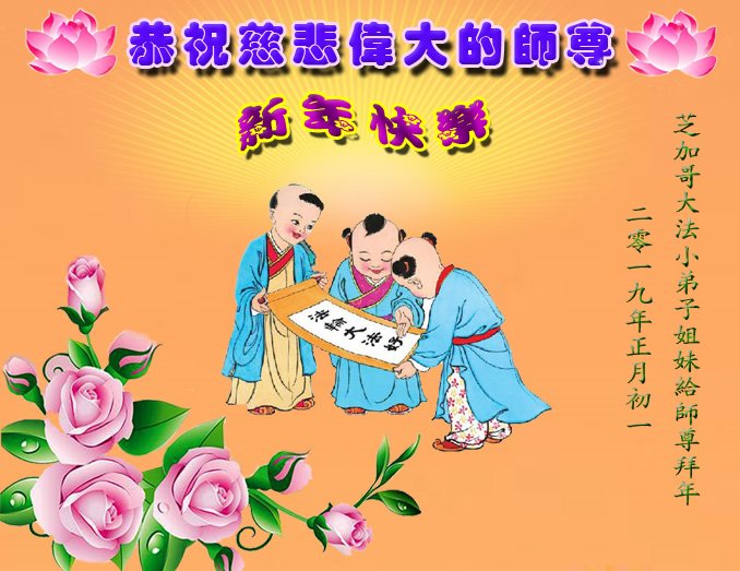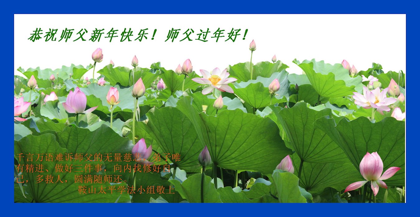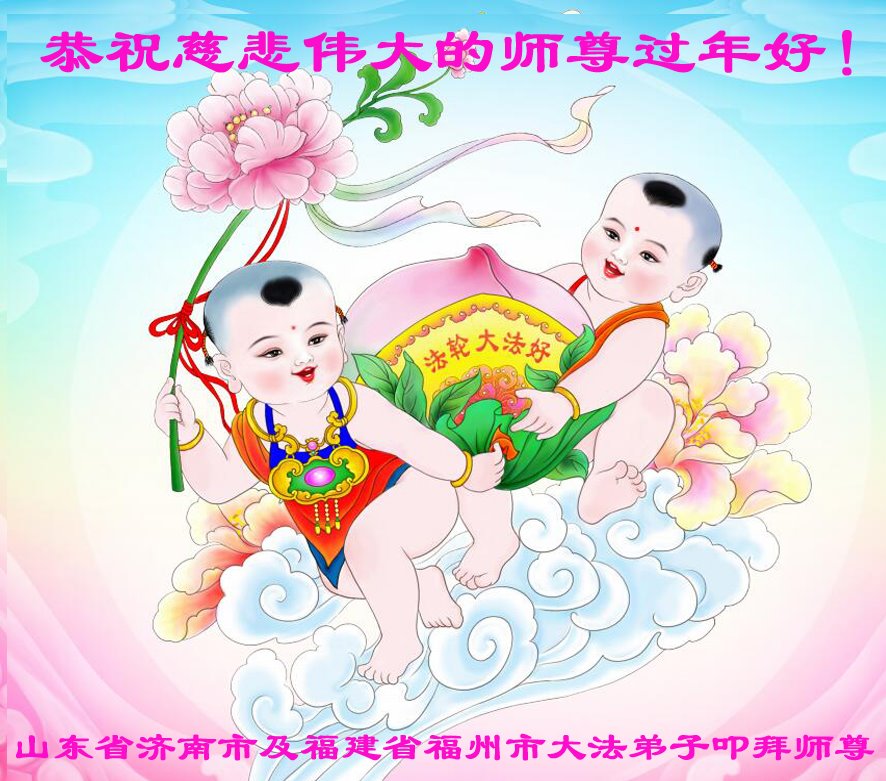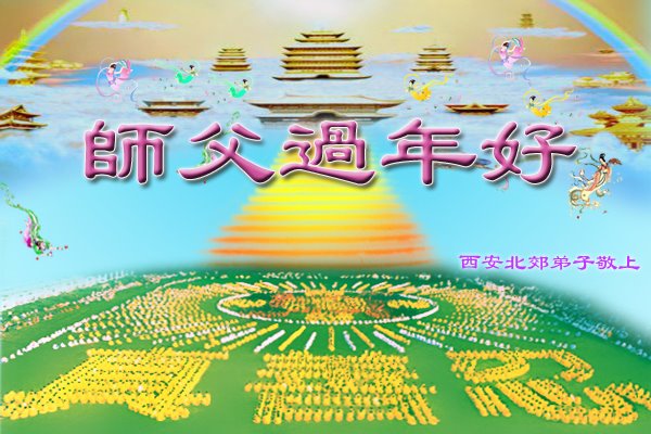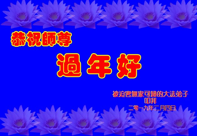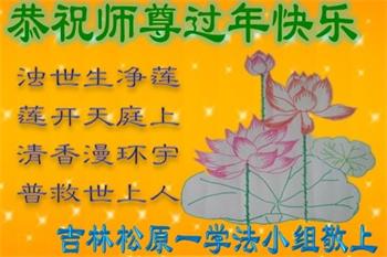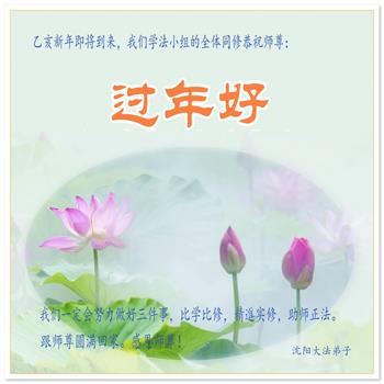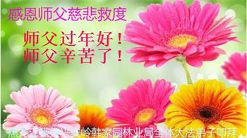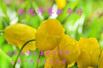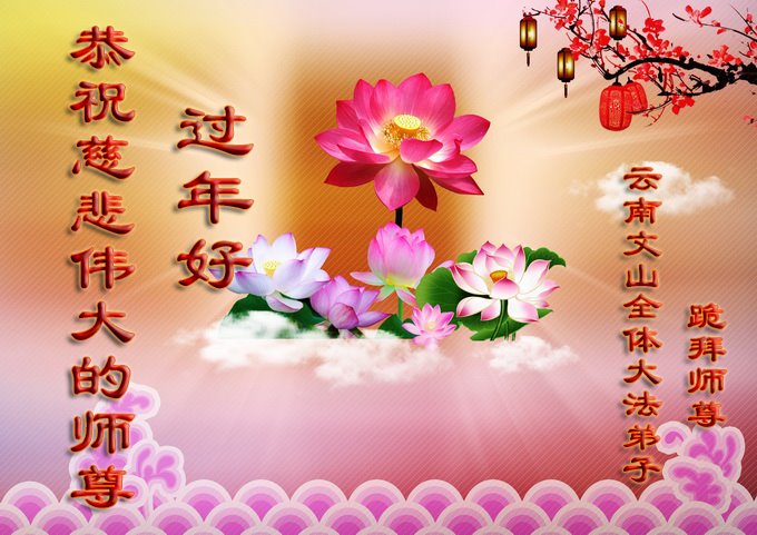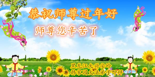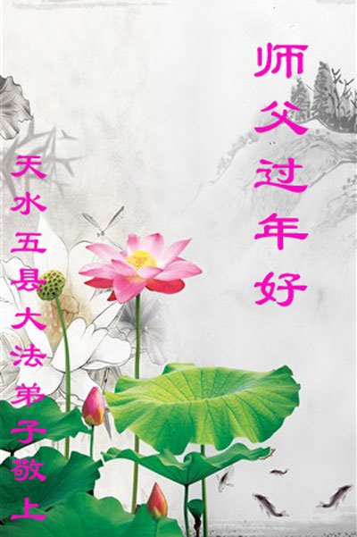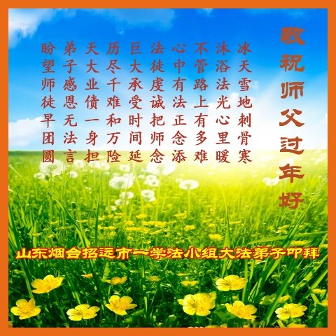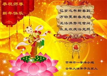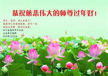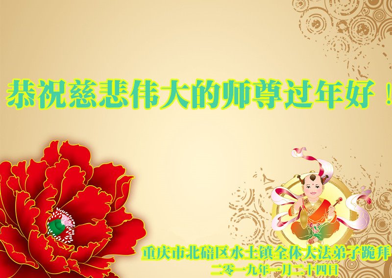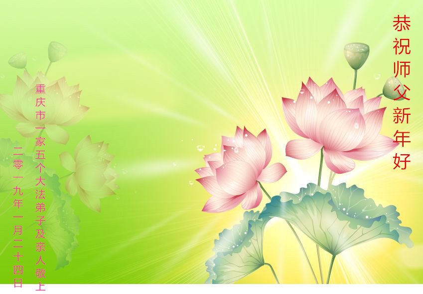 尊敬的师父:您好!在师尊救度苍穹无量众生、法正洪宇的伟大正法中,又一个中国新年来临了。值此辞旧迎新之际,法国大法弟子在无限感恩中向慈悲伟大的师父拜年!恭祝师父新年快乐!