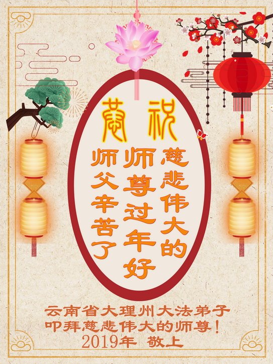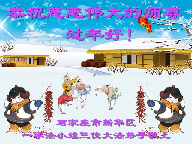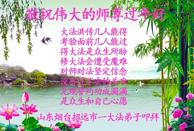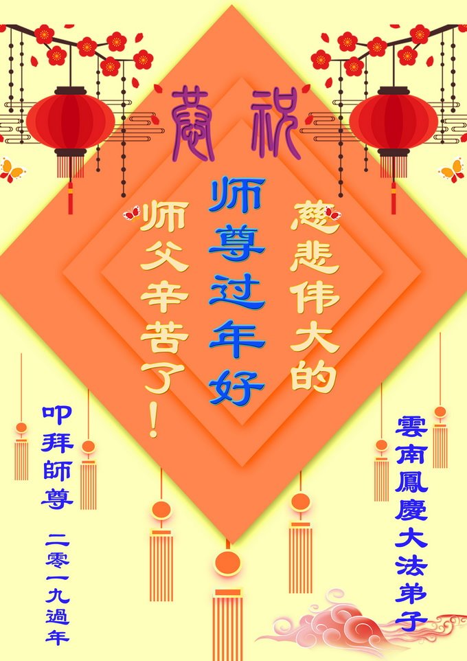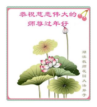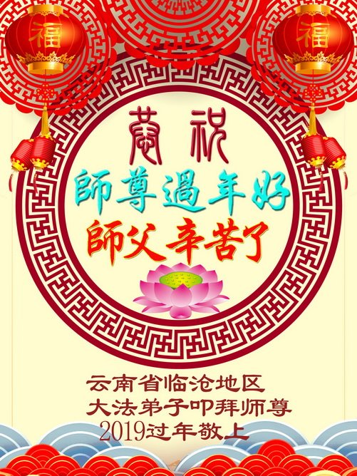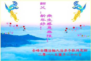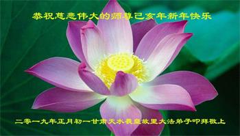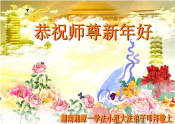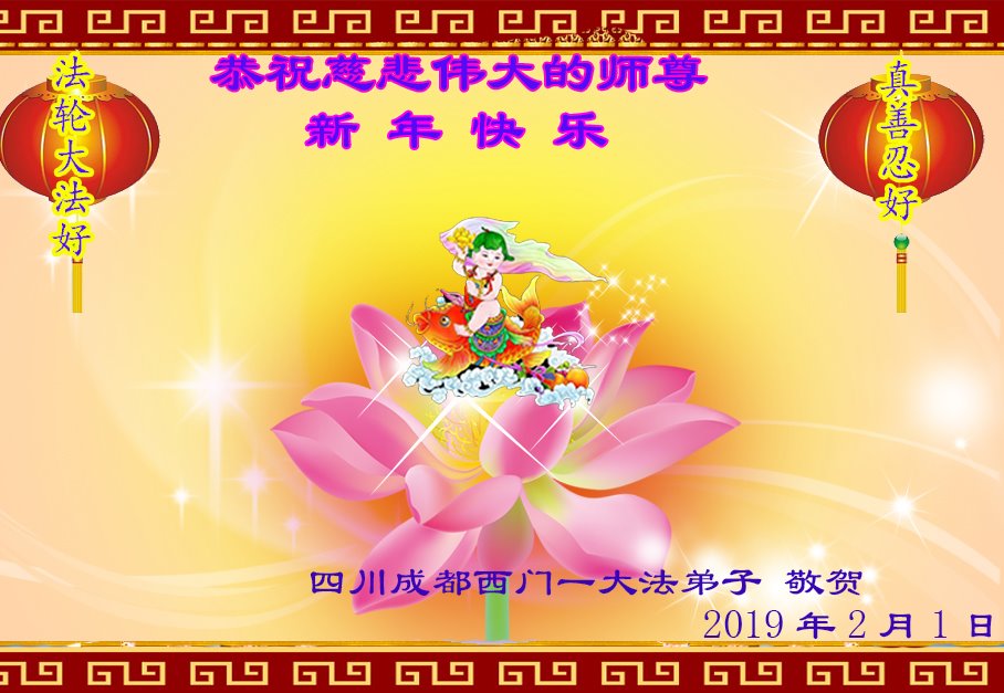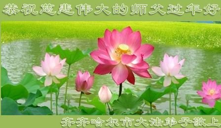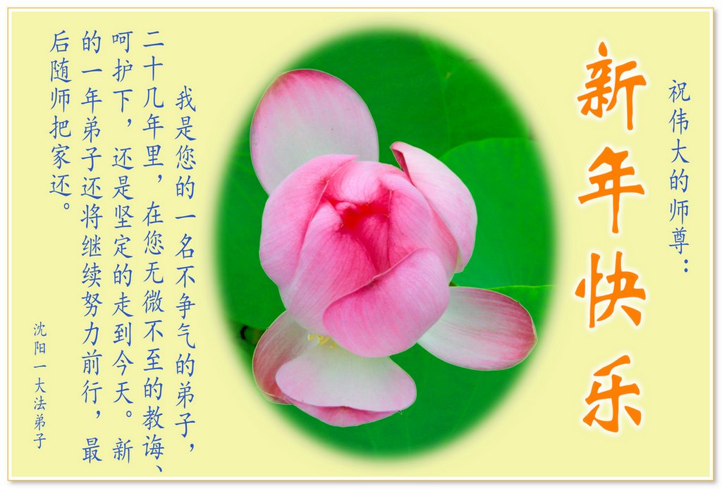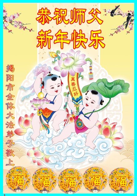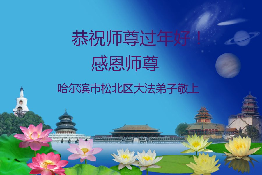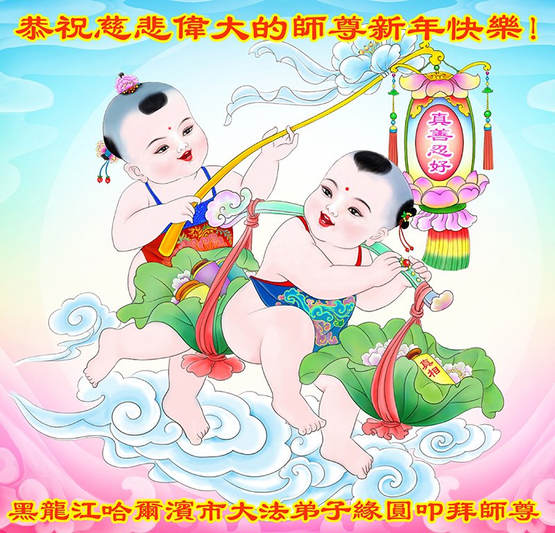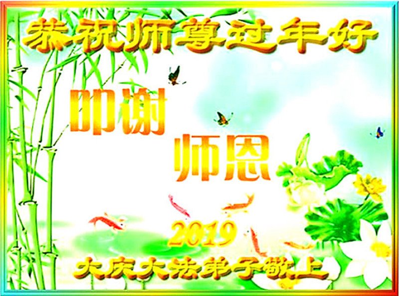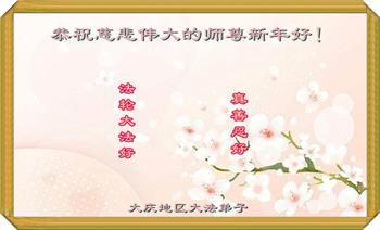 尊敬的师父:您好!在师尊救度苍穹无量众生、法正洪宇的伟大正法中,又一个中国新年来临了。值此辞旧迎新之际,法国大法弟子在无限感恩中向慈悲伟大的师父拜年!恭祝师父新年快乐!