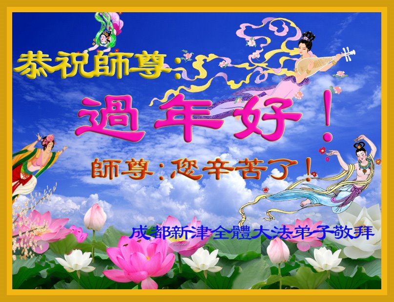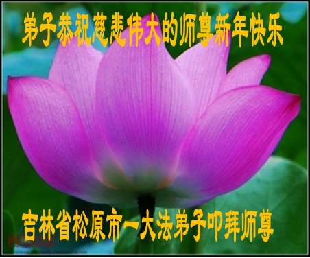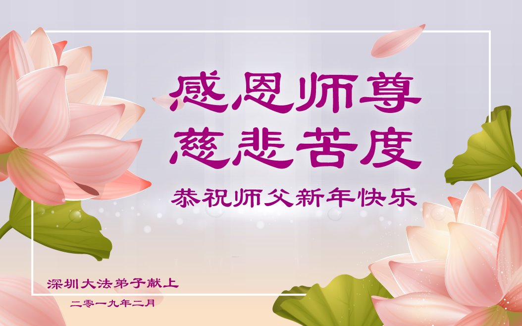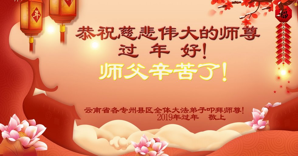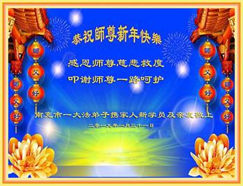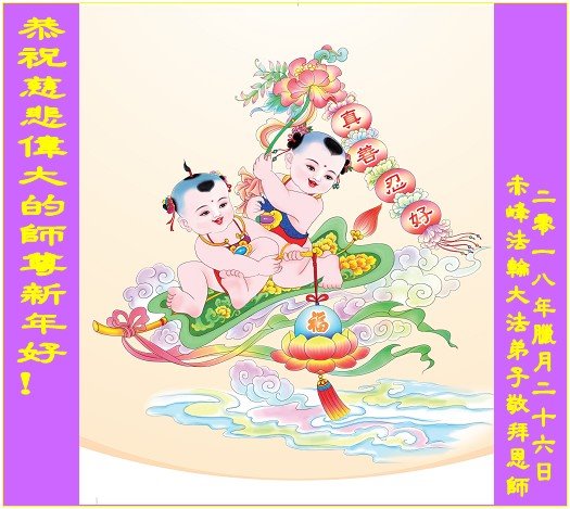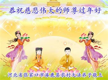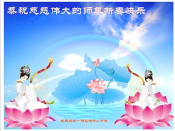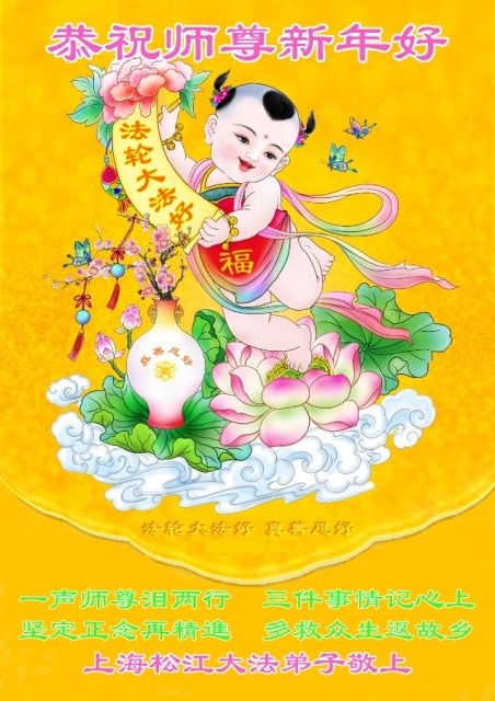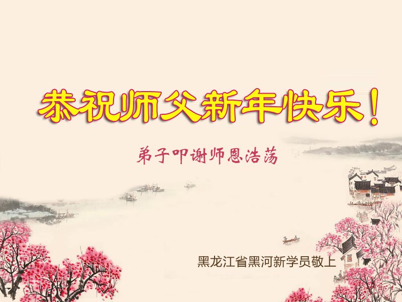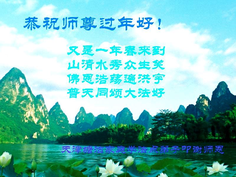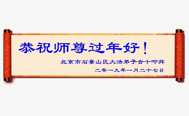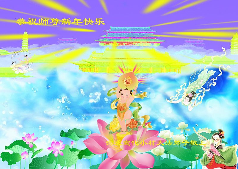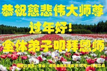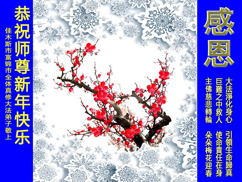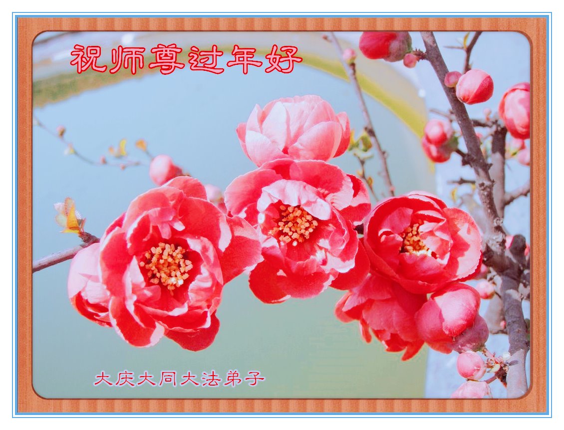 尊敬的师父:您好!在师尊救度苍穹无量众生、法正洪宇的伟大正法中,又一个中国新年来临了。值此辞旧迎新之际,法国大法弟子在无限感恩中向慈悲伟大的师父拜年!恭祝师父新年快乐!