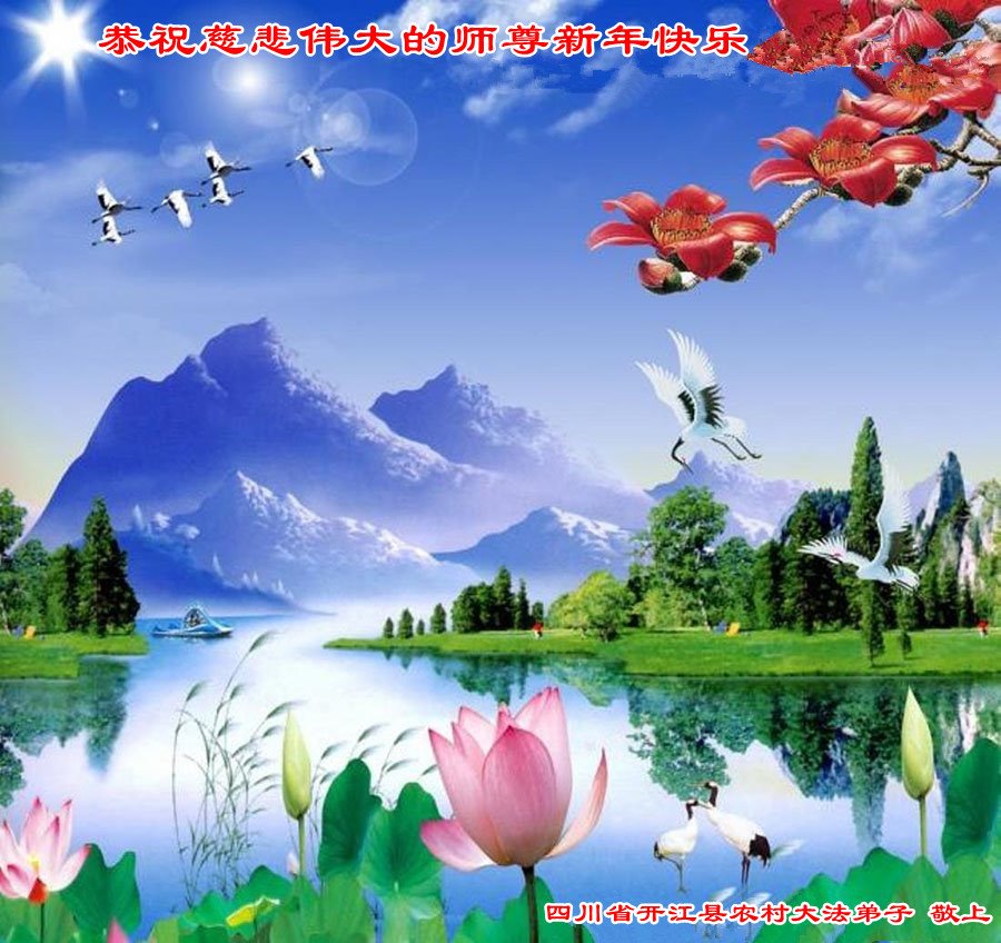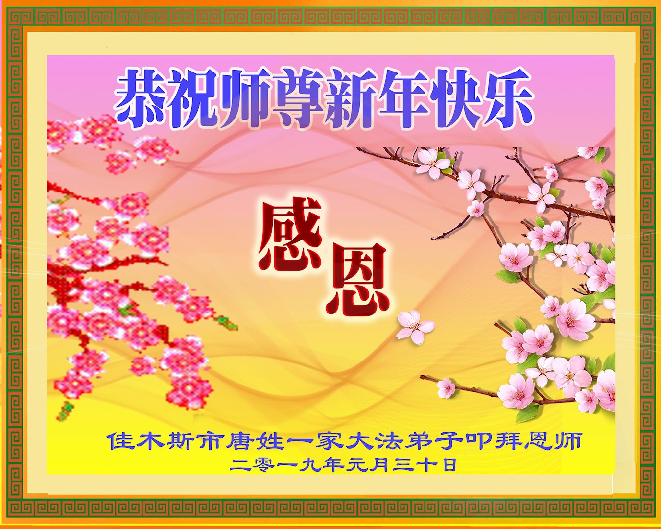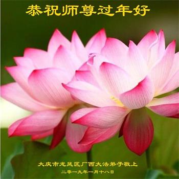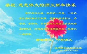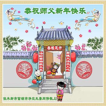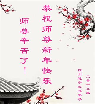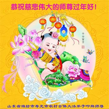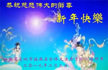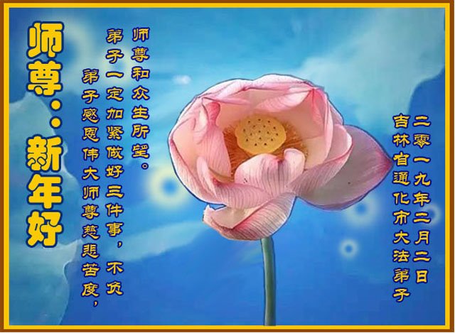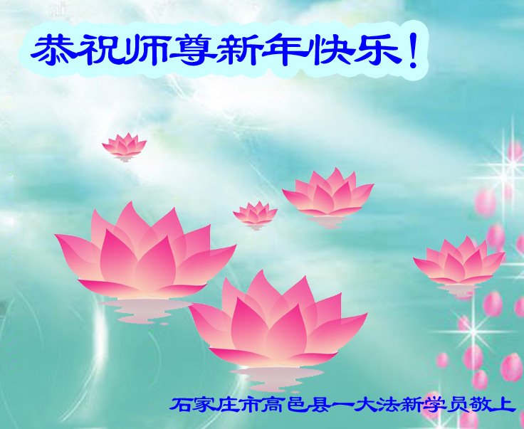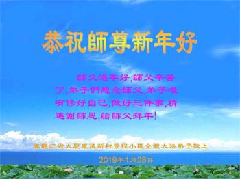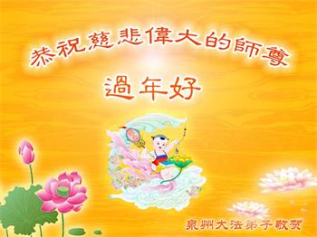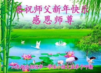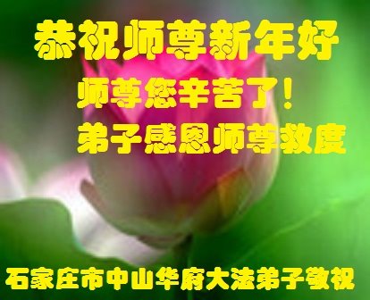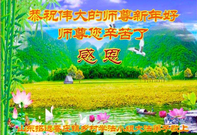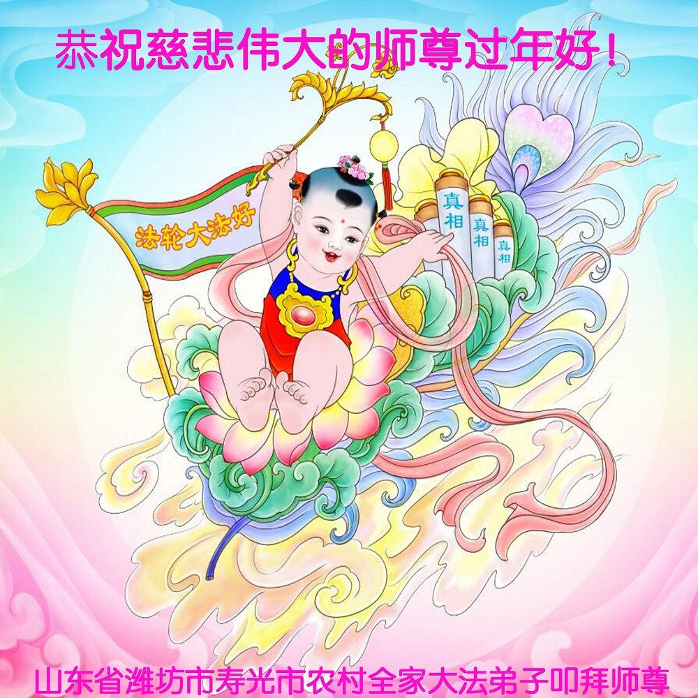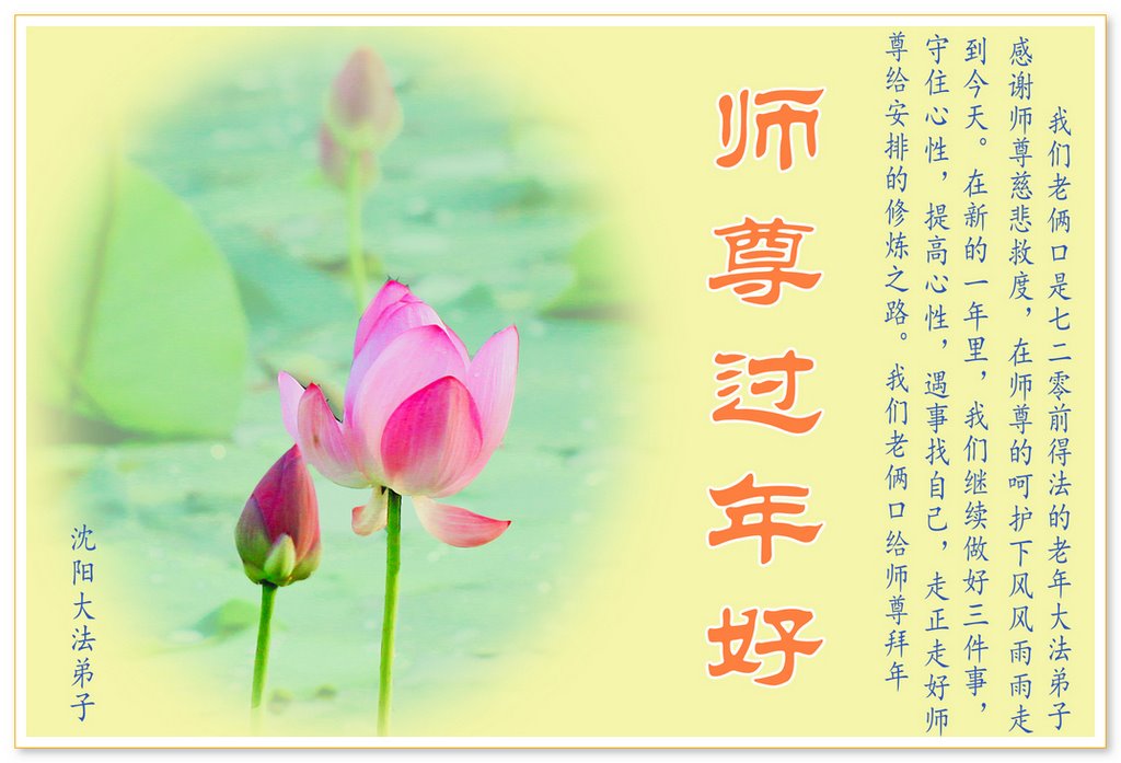 尊敬的师父:您好!在师尊救度苍穹无量众生、法正洪宇的伟大正法中,又一个中国新年来临了。值此辞旧迎新之际,法国大法弟子在无限感恩中向慈悲伟大的师父拜年!恭祝师父新年快乐!