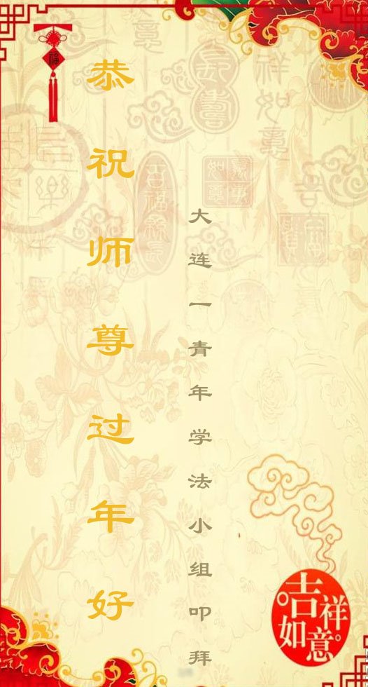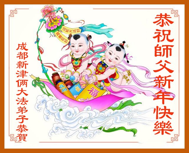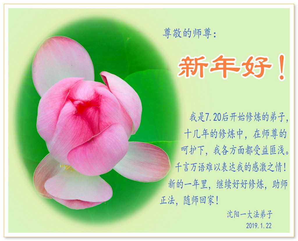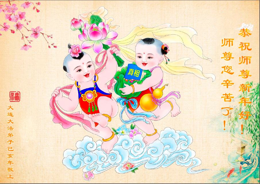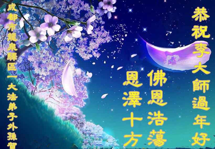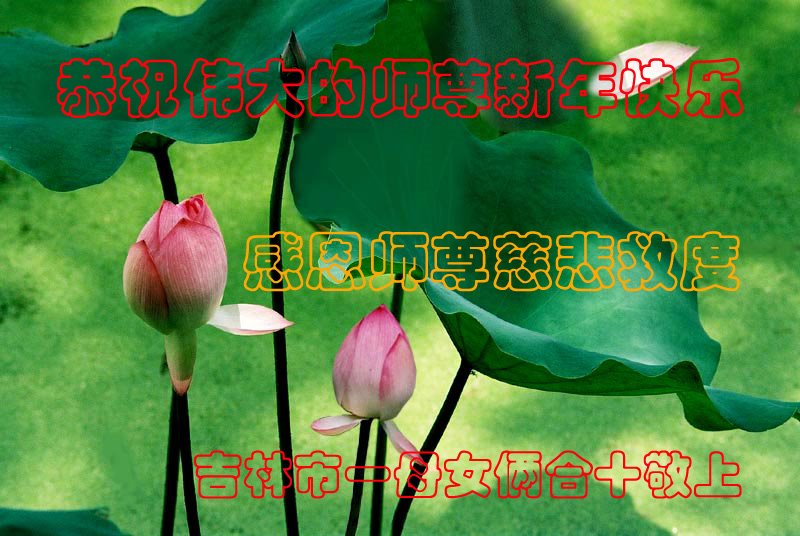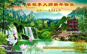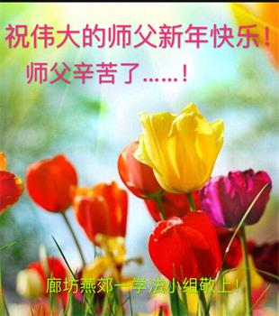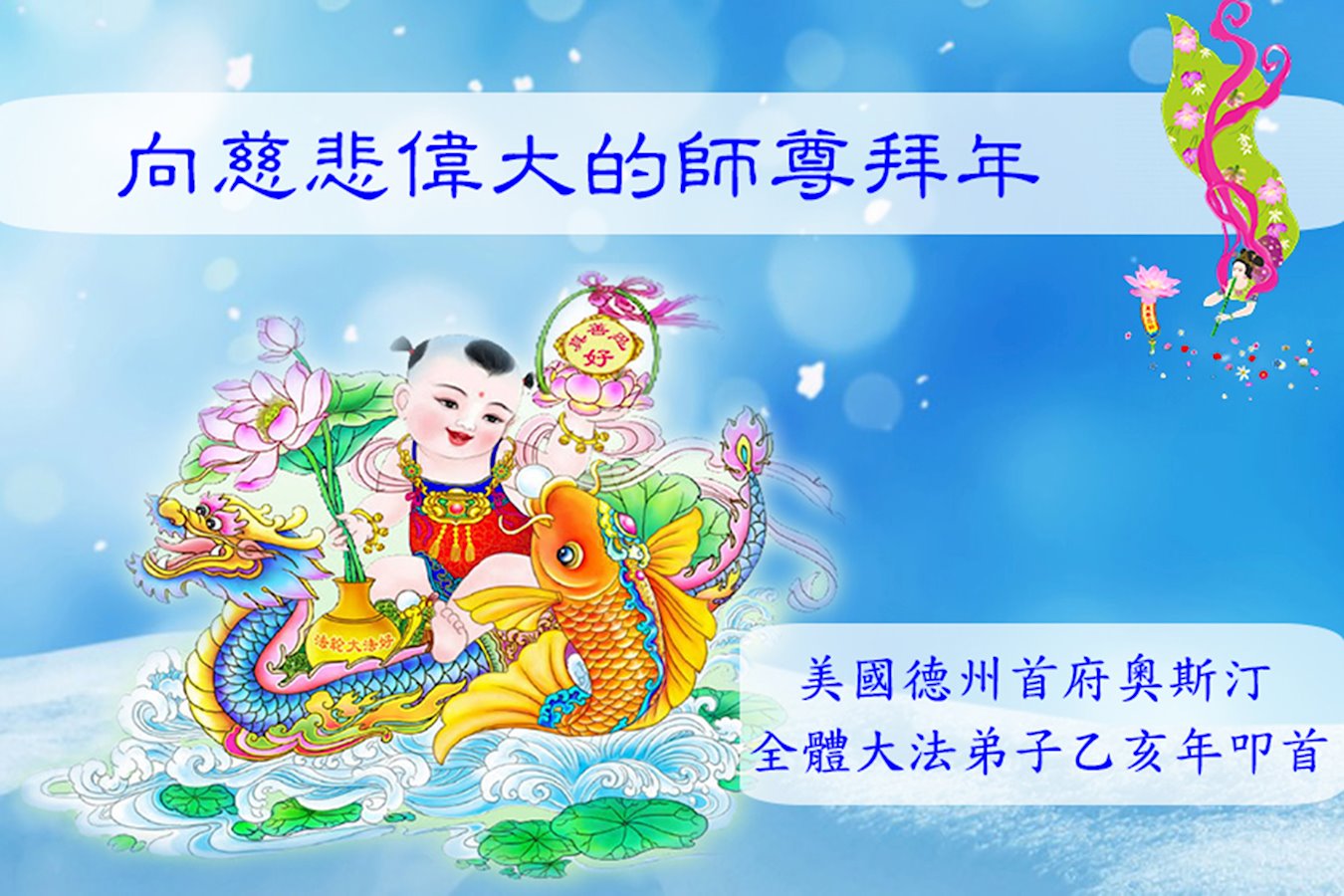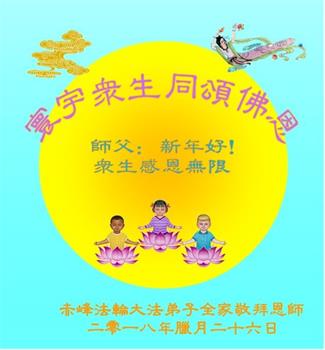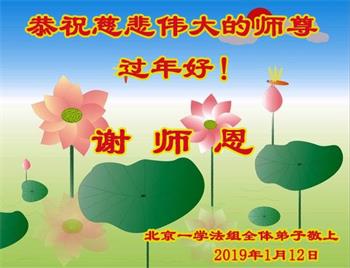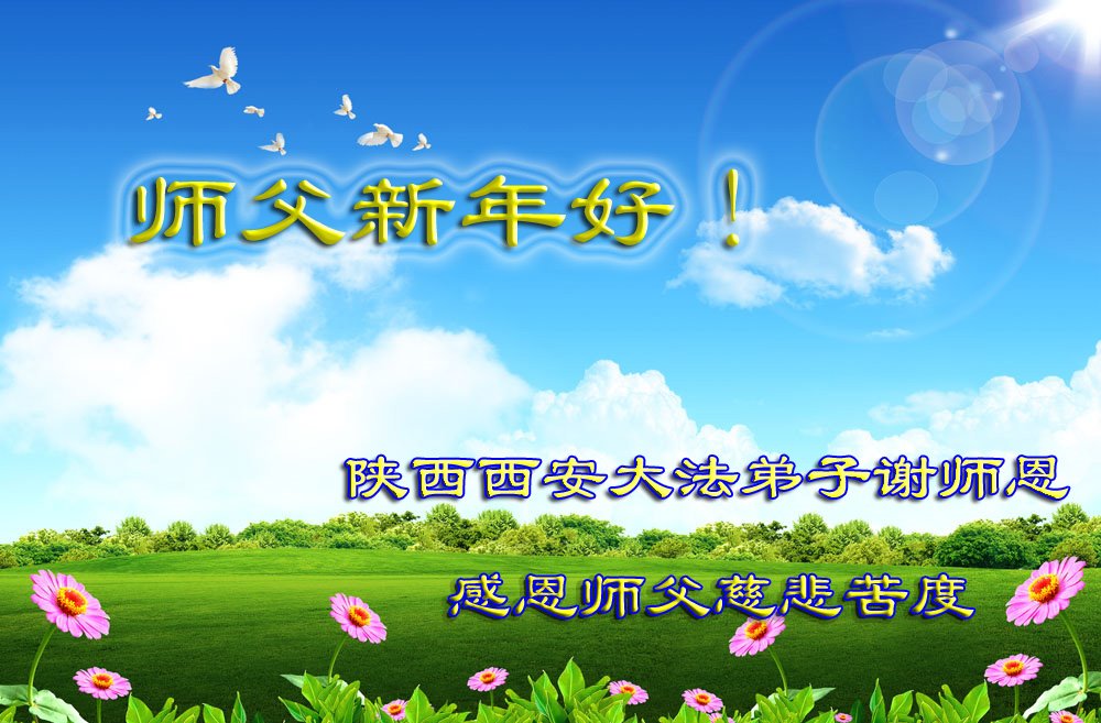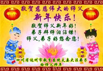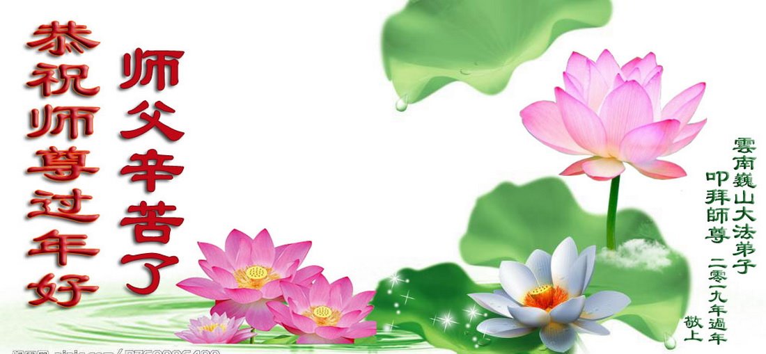 尊敬的师父:您好!在师尊救度苍穹无量众生、法正洪宇的伟大正法中,又一个中国新年来临了。值此辞旧迎新之际,法国大法弟子在无限感恩中向慈悲伟大的师父拜年!恭祝师父新年快乐!