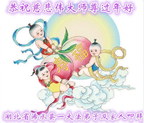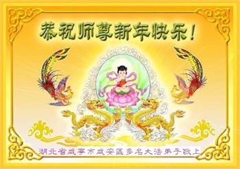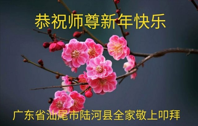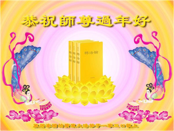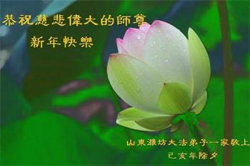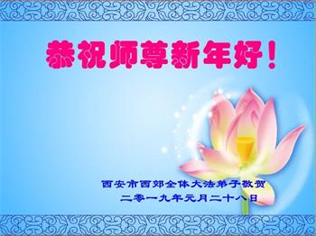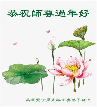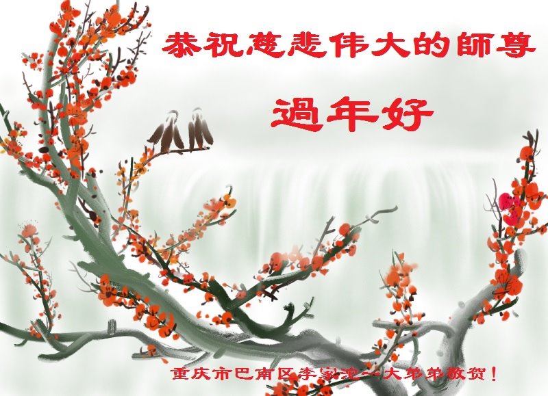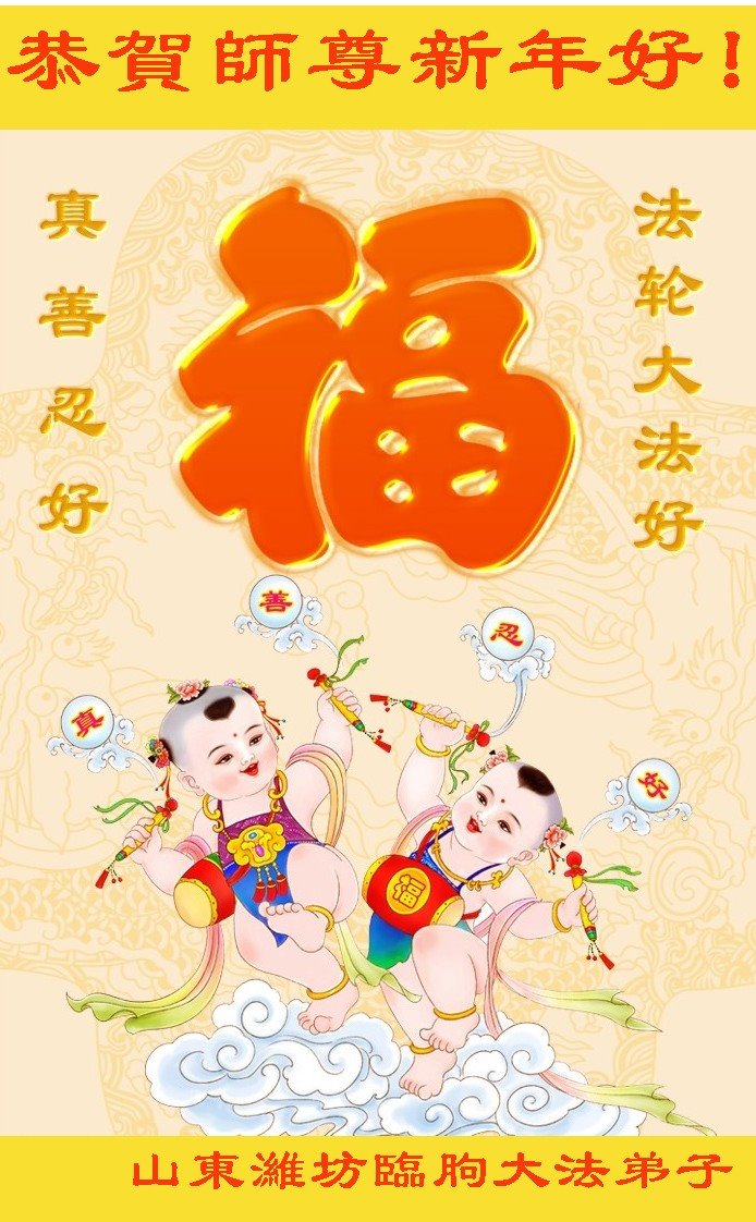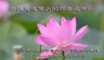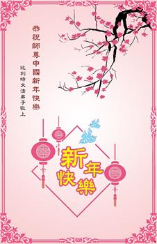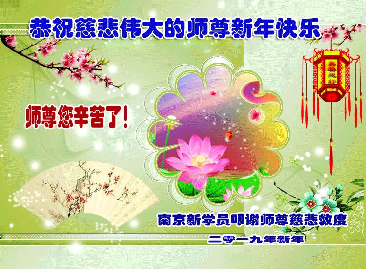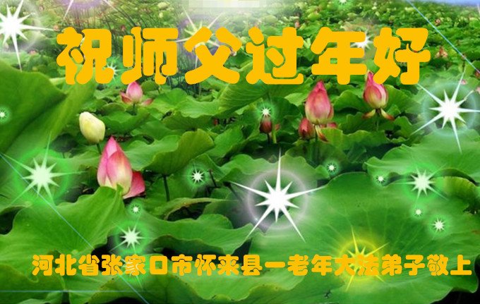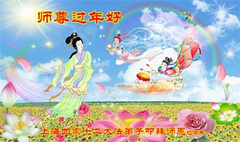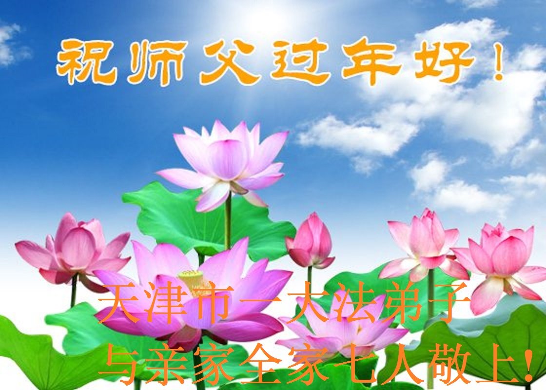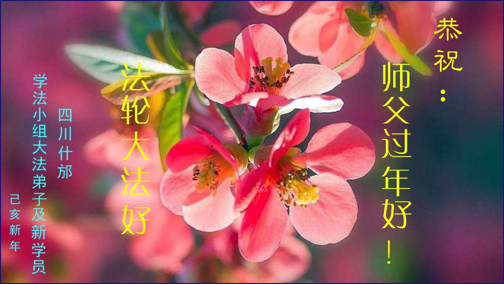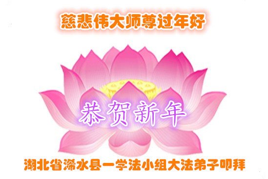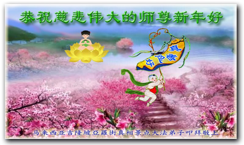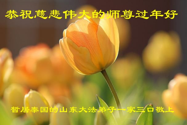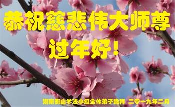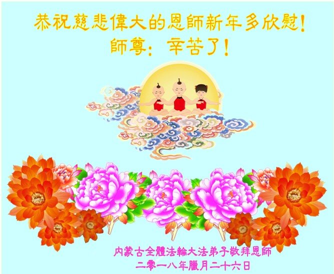 尊敬的师父:您好!在师尊救度苍穹无量众生、法正洪宇的伟大正法中,又一个中国新年来临了。值此辞旧迎新之际,法国大法弟子在无限感恩中向慈悲伟大的师父拜年!恭祝师父新年快乐!