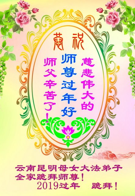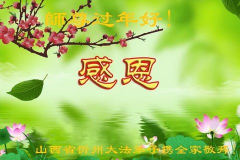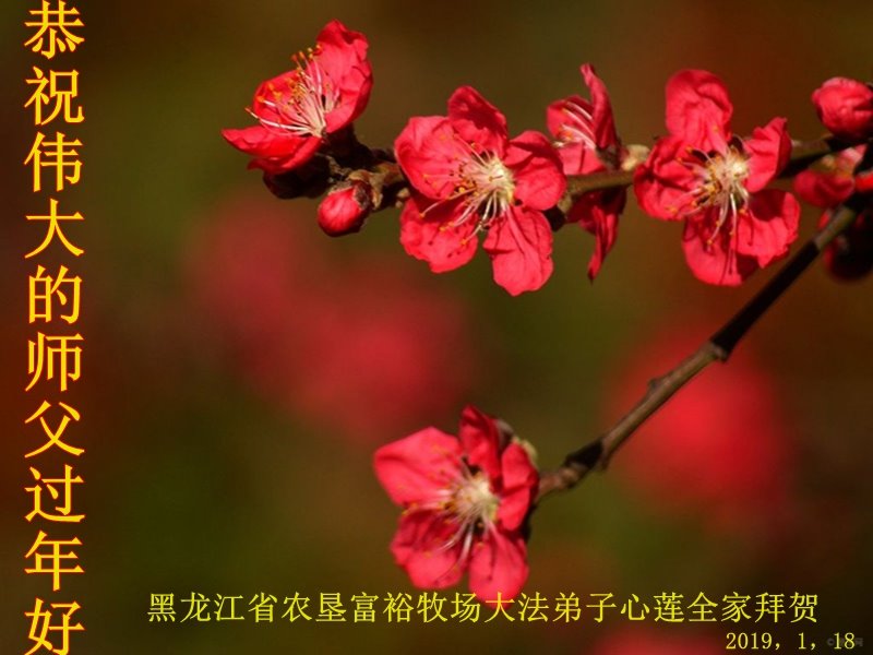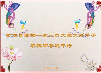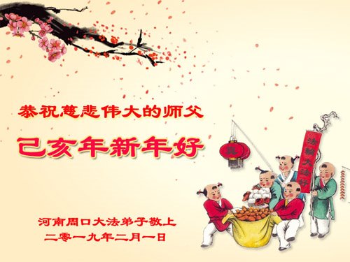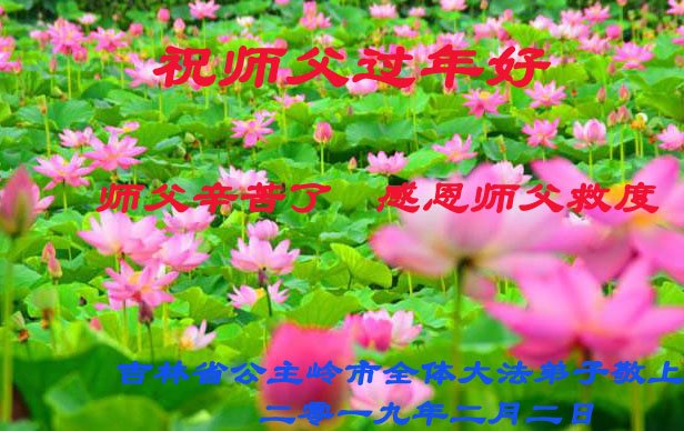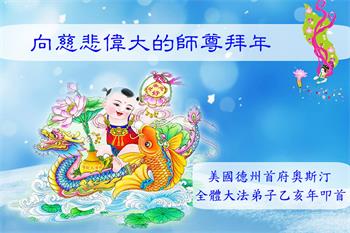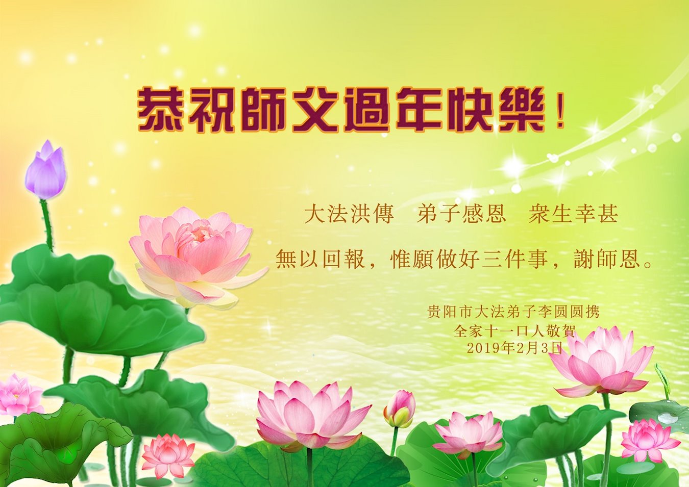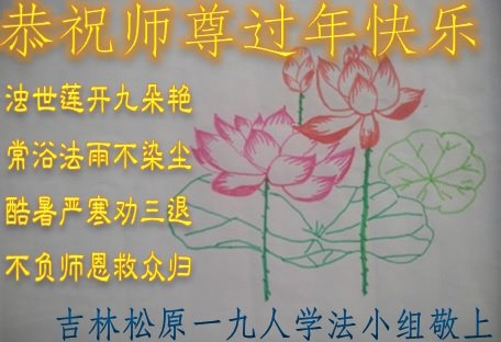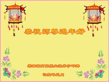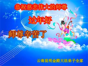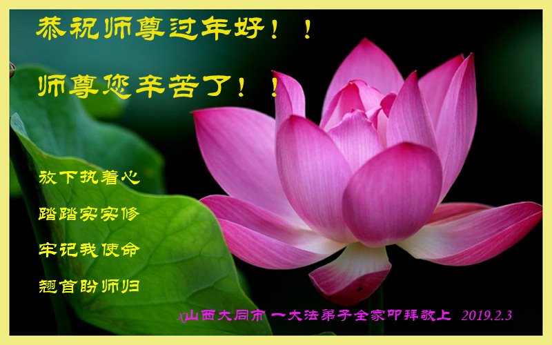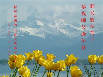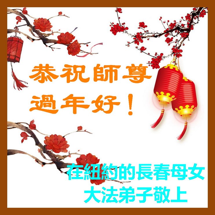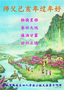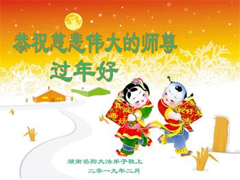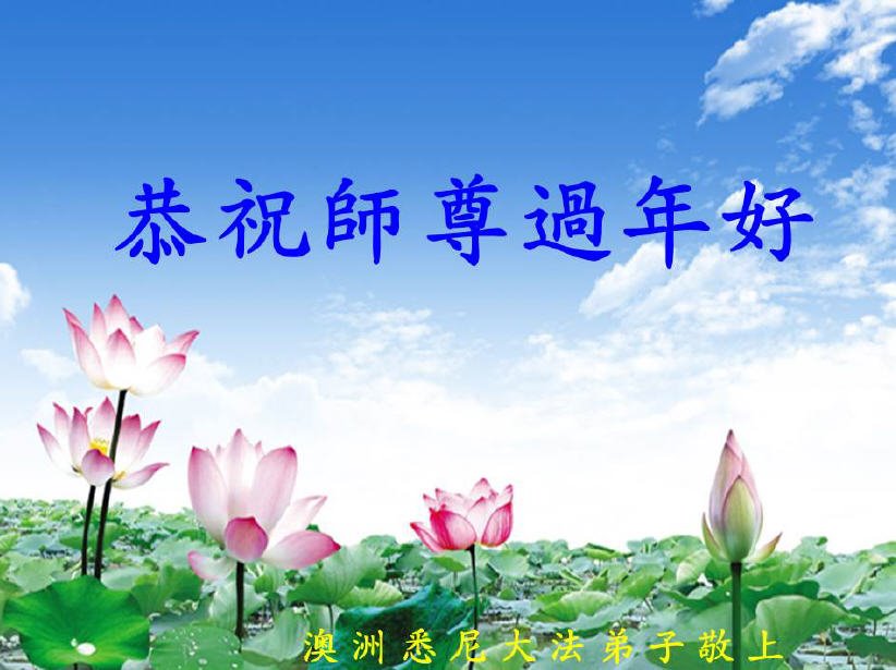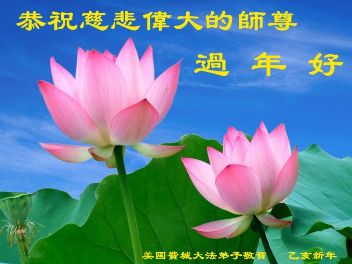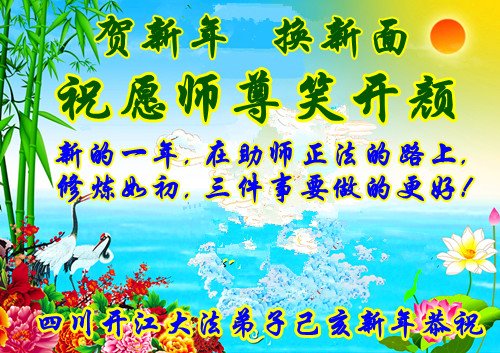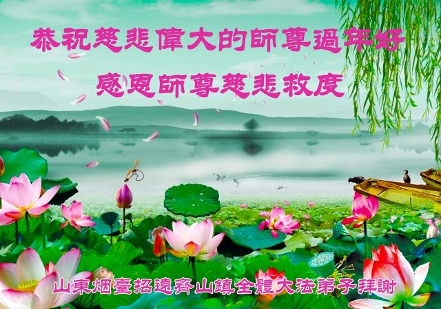 尊敬的师父:您好!在师尊救度苍穹无量众生、法正洪宇的伟大正法中,又一个中国新年来临了。值此辞旧迎新之际,法国大法弟子在无限感恩中向慈悲伟大的师父拜年!恭祝师父新年快乐!