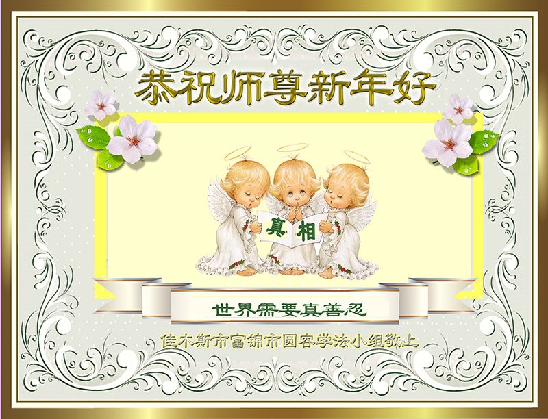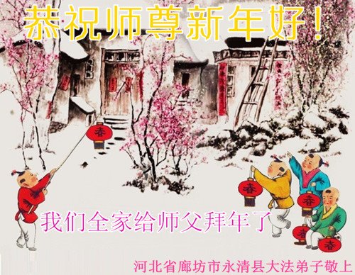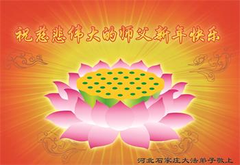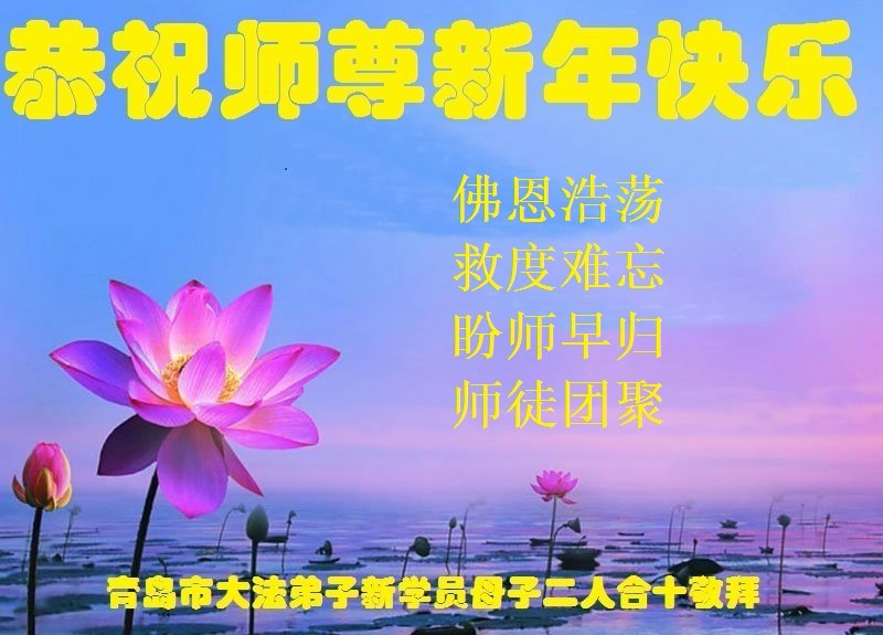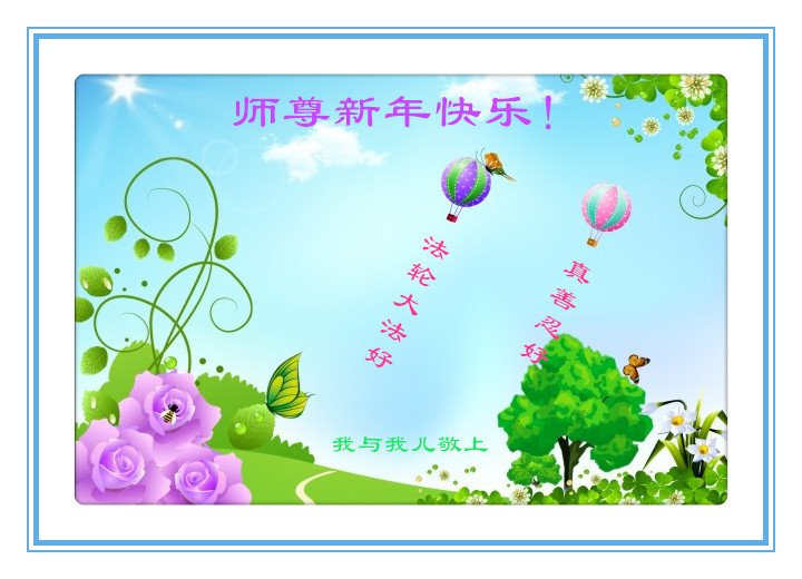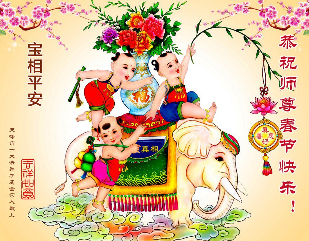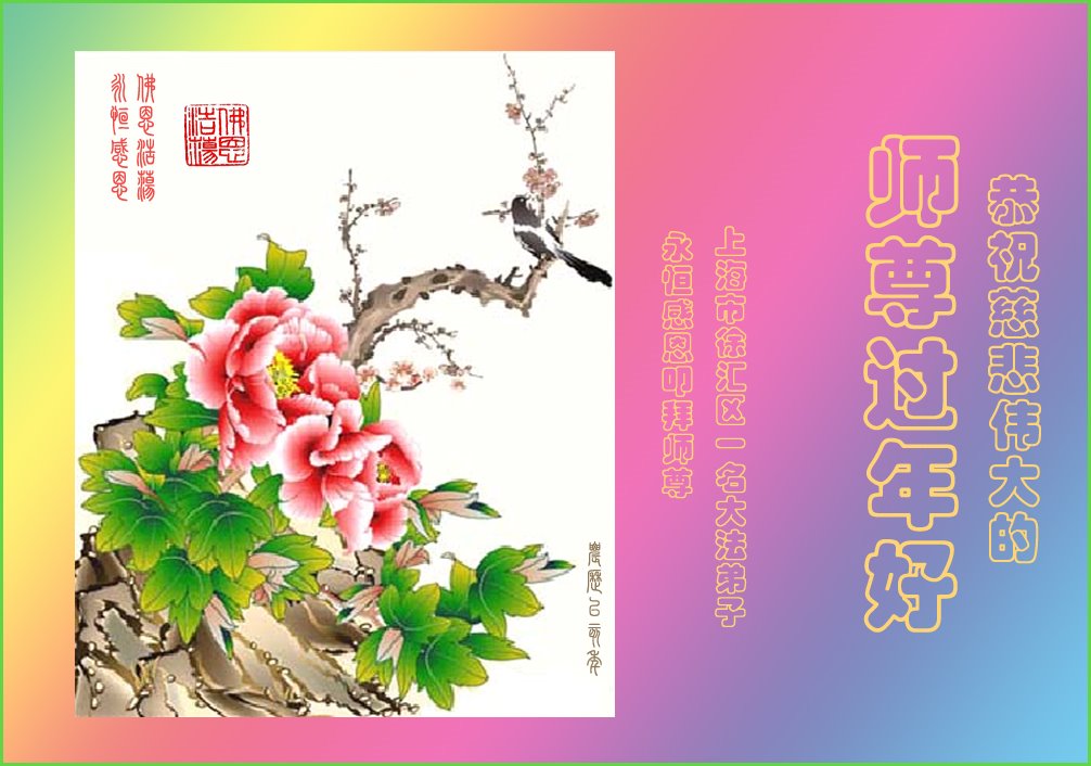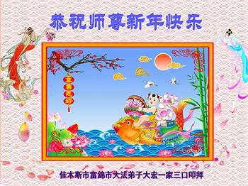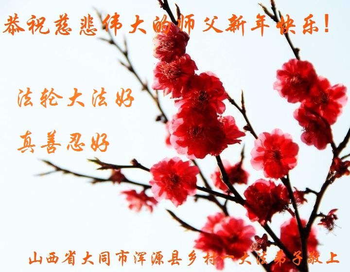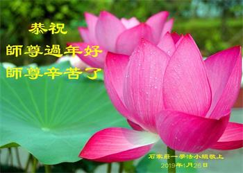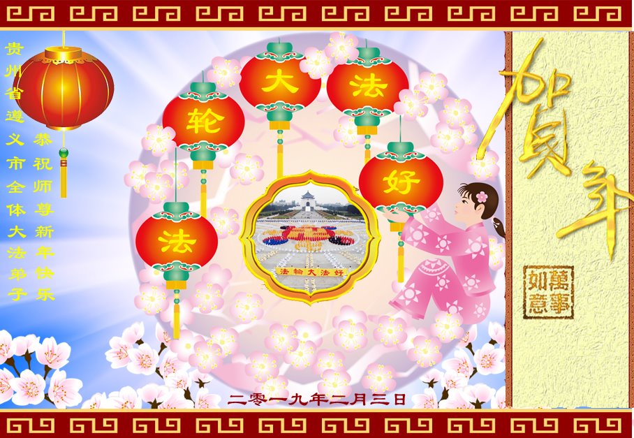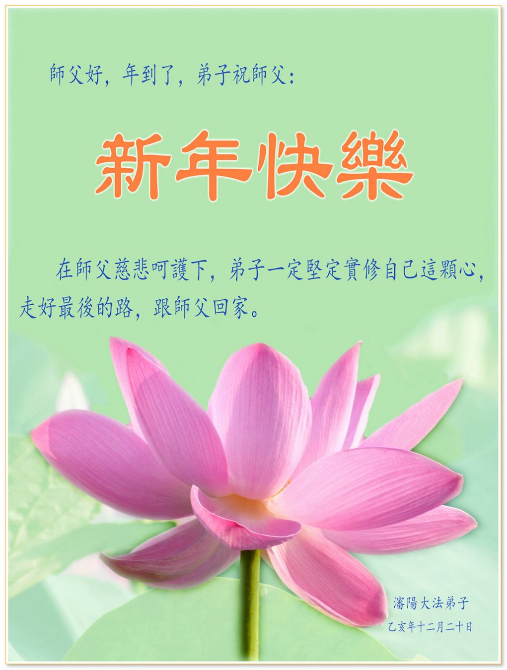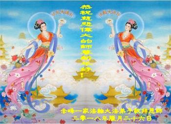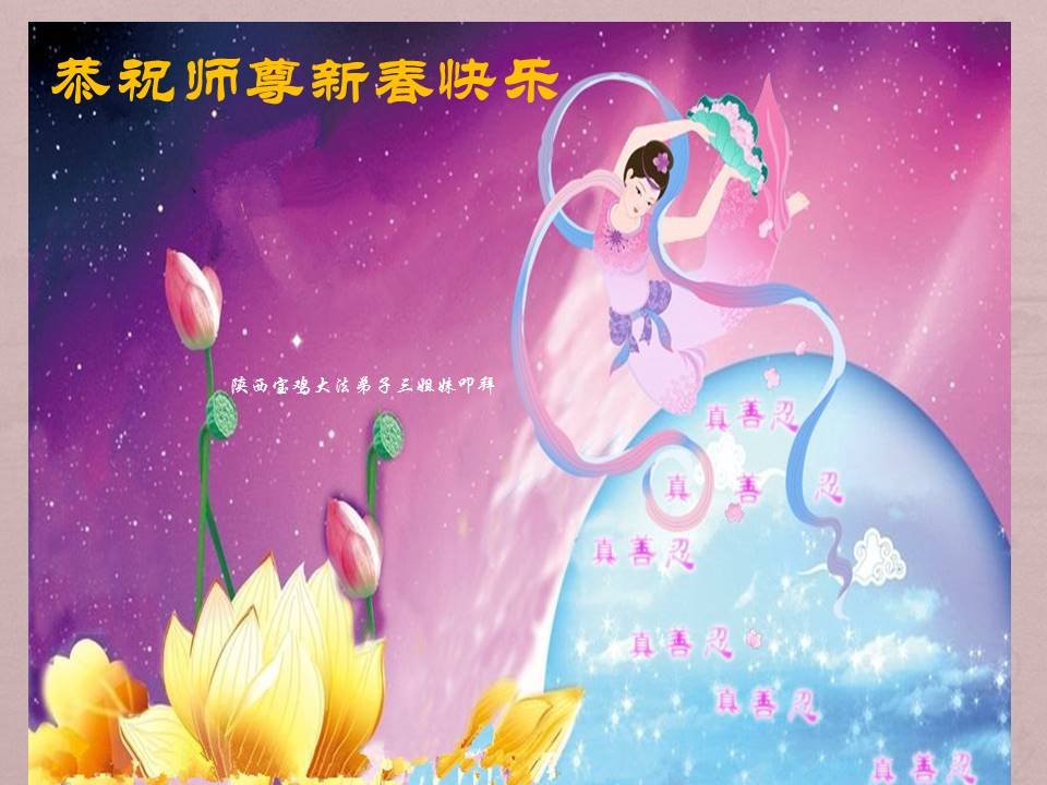 尊敬的师父:您好!在师尊救度苍穹无量众生、法正洪宇的伟大正法中,又一个中国新年来临了。值此辞旧迎新之际,法国大法弟子在无限感恩中向慈悲伟大的师父拜年!恭祝师父新年快乐!