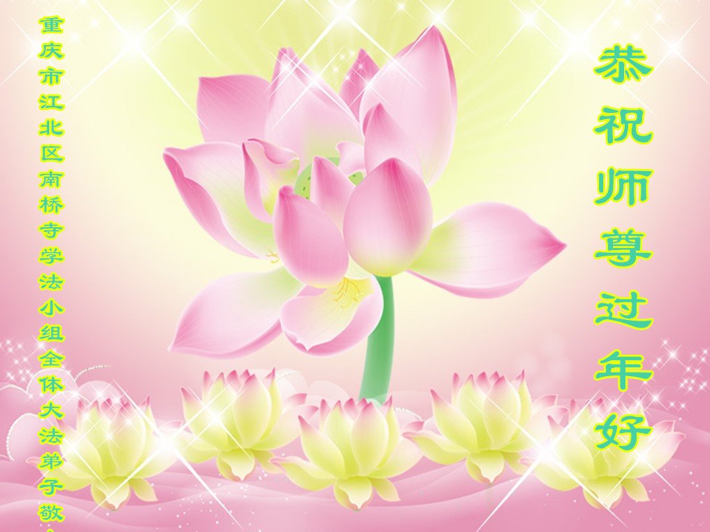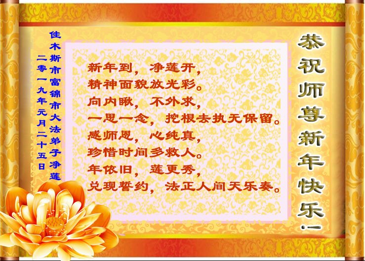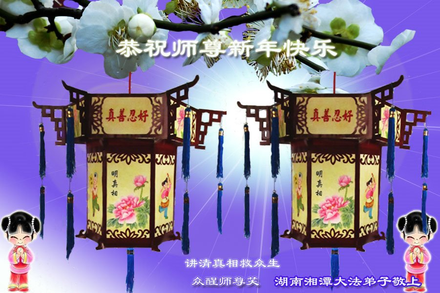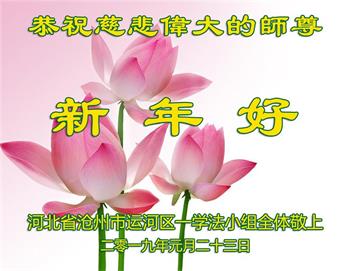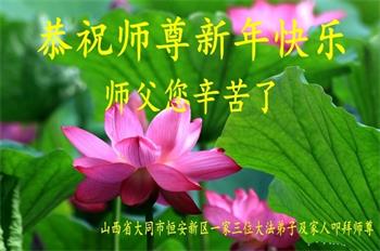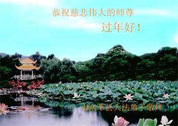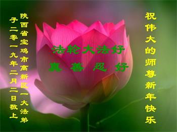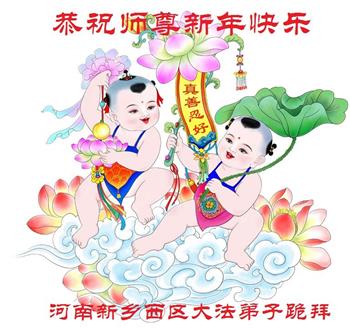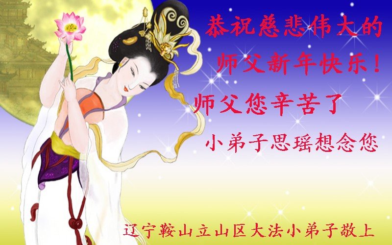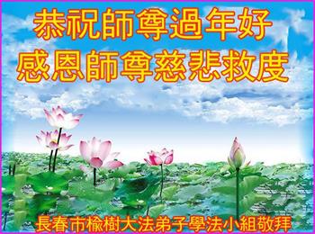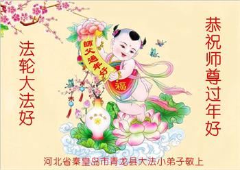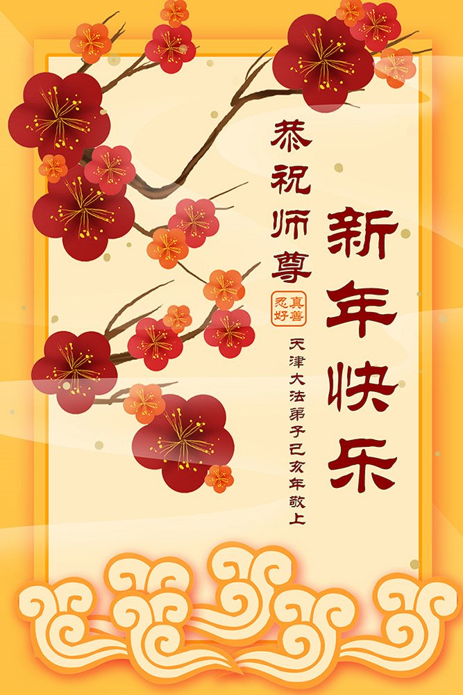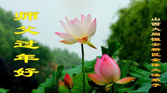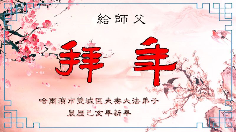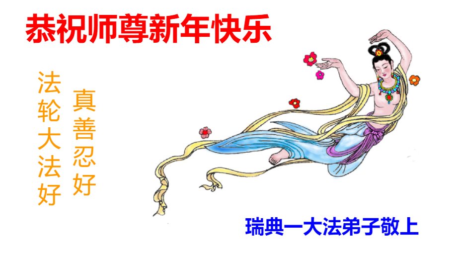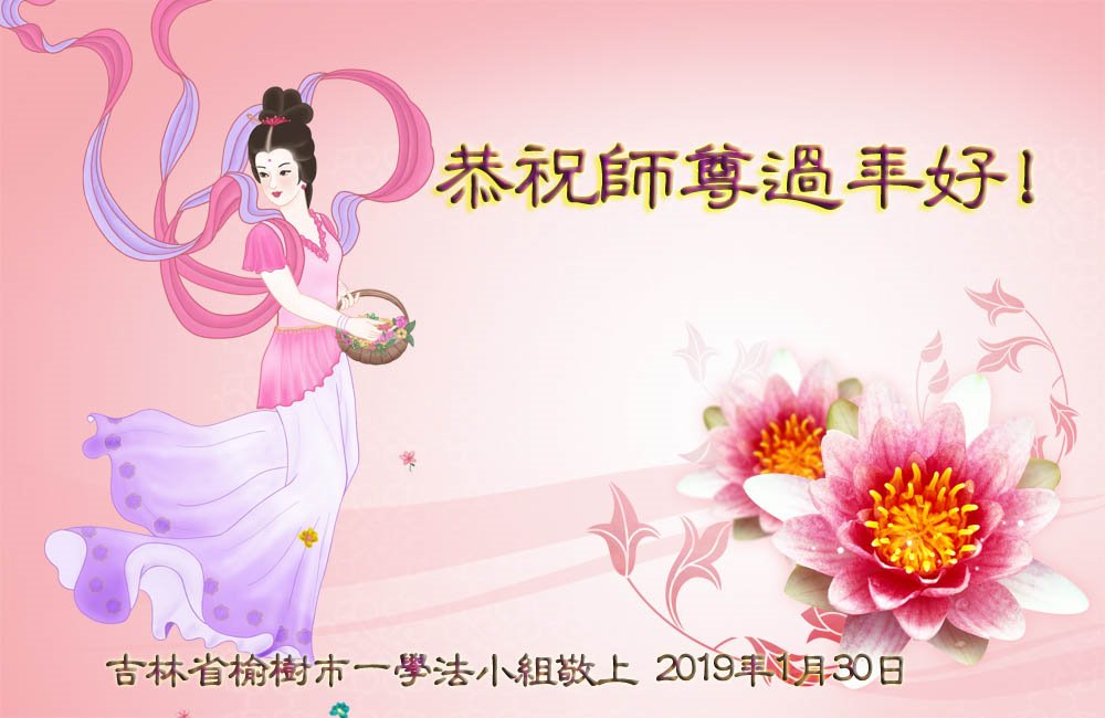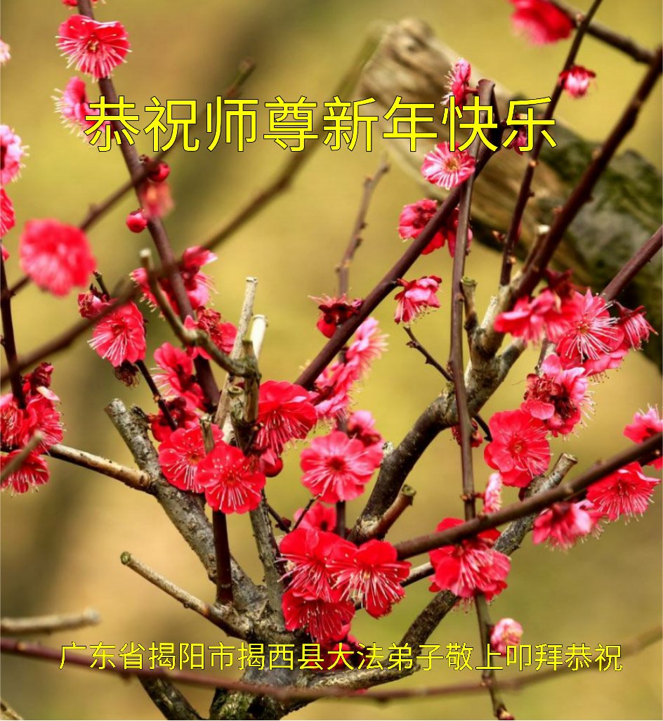 尊敬的师父:您好!在师尊救度苍穹无量众生、法正洪宇的伟大正法中,又一个中国新年来临了。值此辞旧迎新之际,法国大法弟子在无限感恩中向慈悲伟大的师父拜年!恭祝师父新年快乐!
