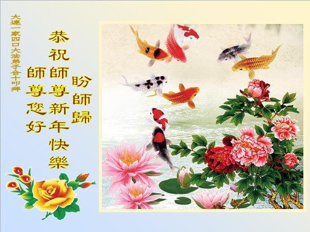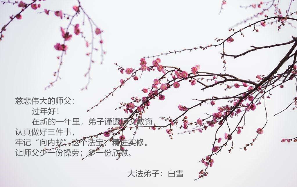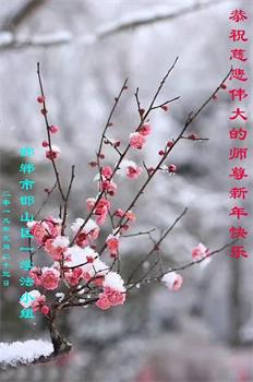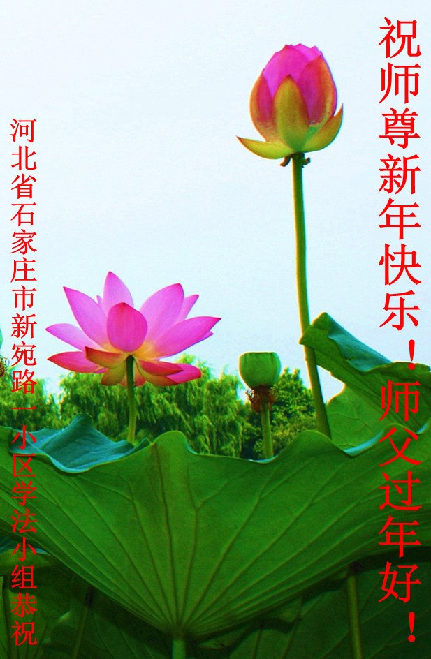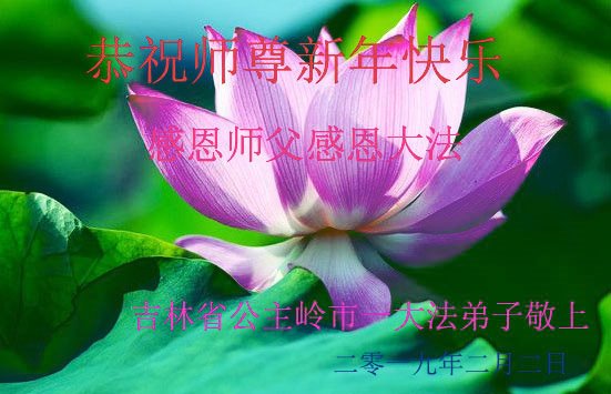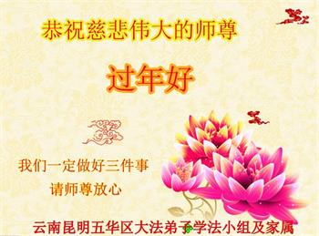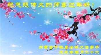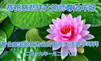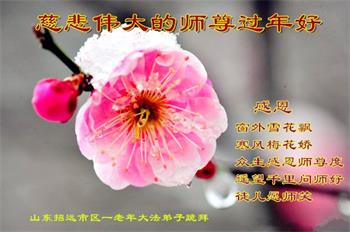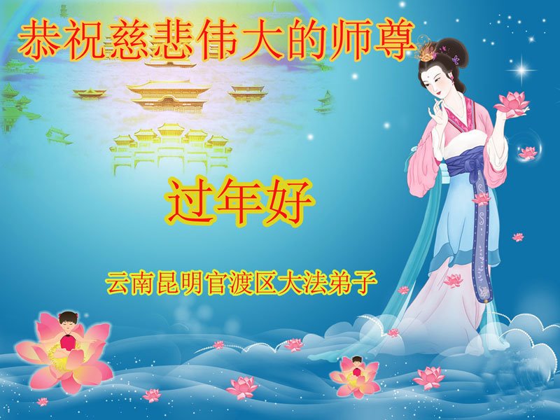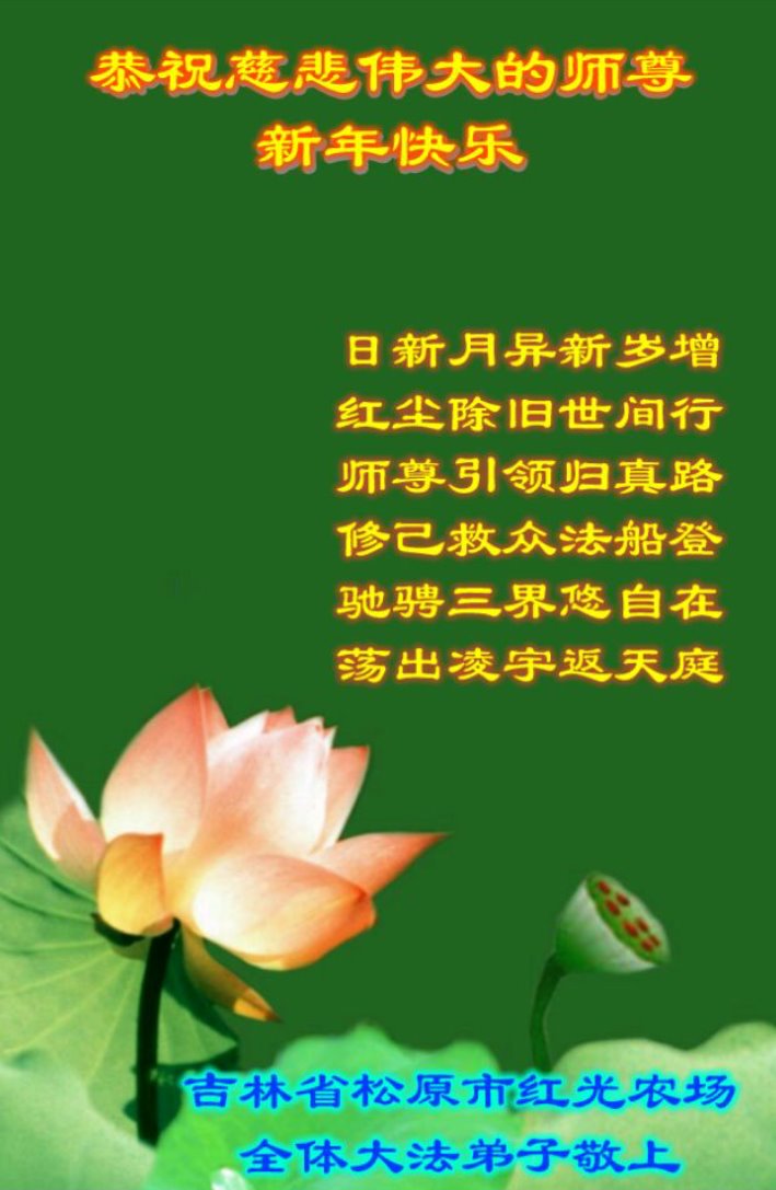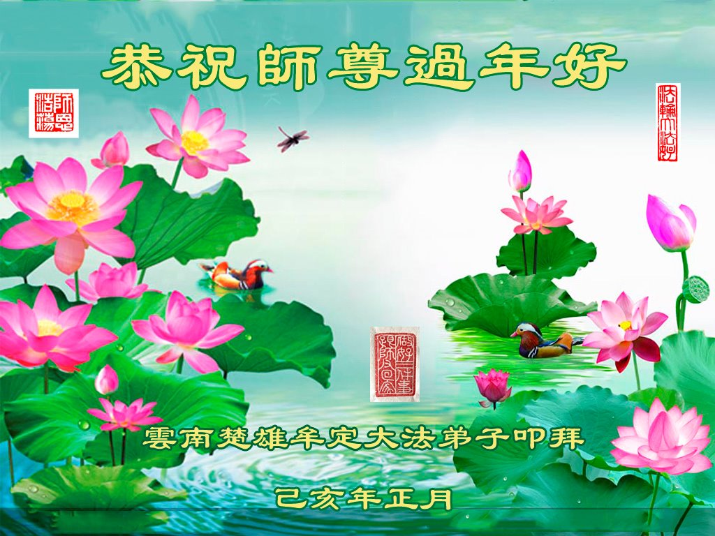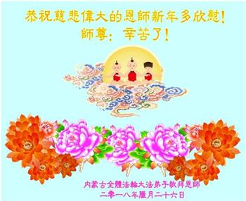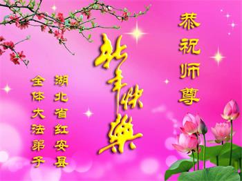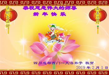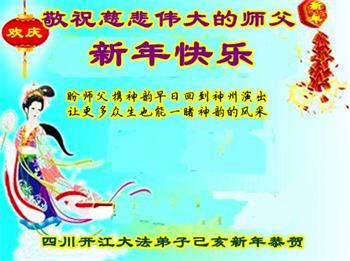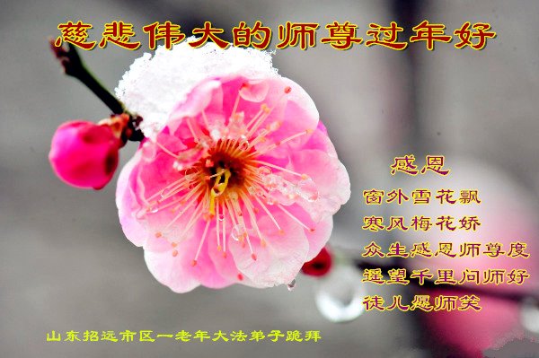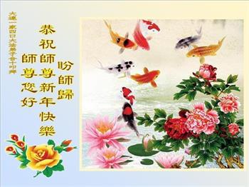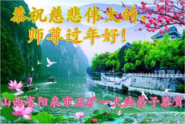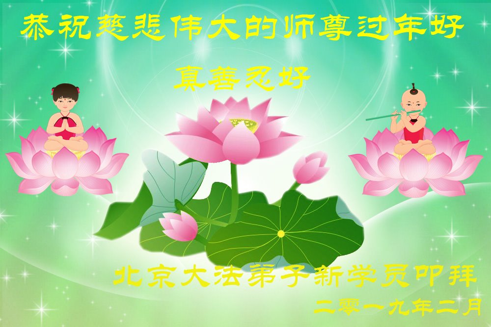 尊敬的师父:您好!在师尊救度苍穹无量众生、法正洪宇的伟大正法中,又一个中国新年来临了。值此辞旧迎新之际,法国大法弟子在无限感恩中向慈悲伟大的师父拜年!恭祝师父新年快乐!