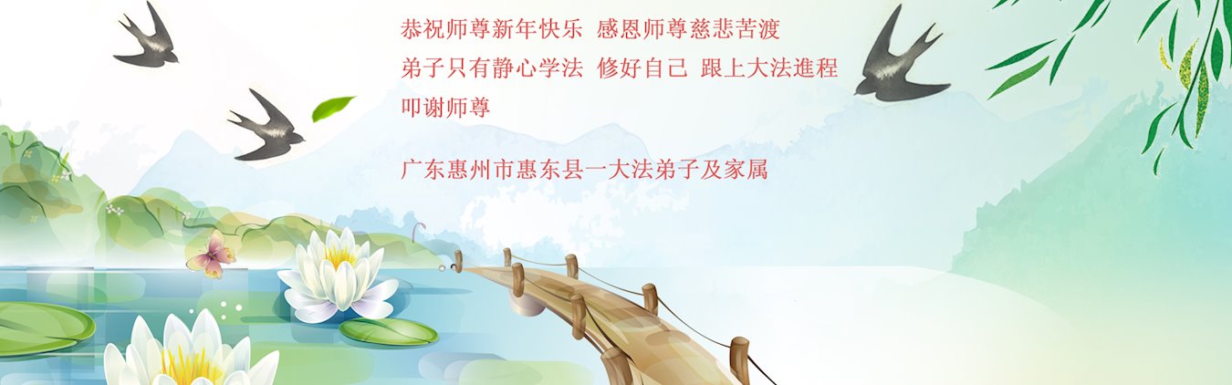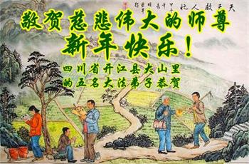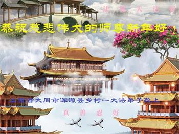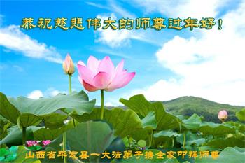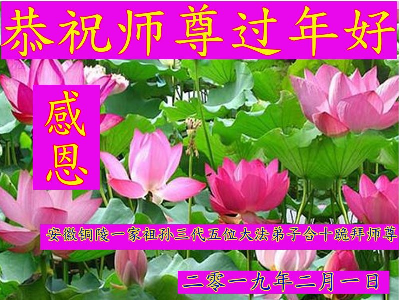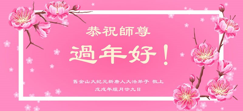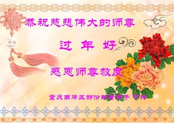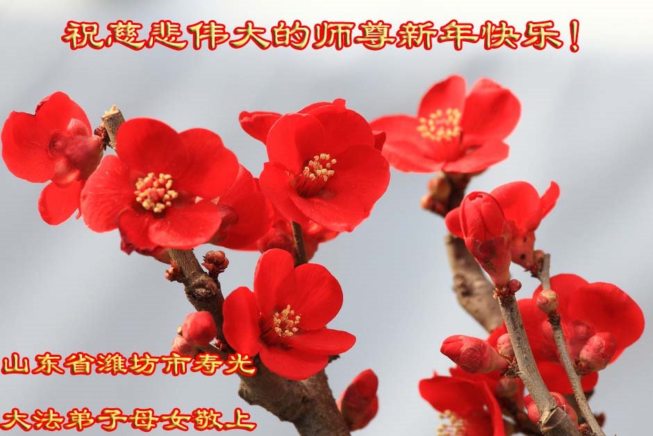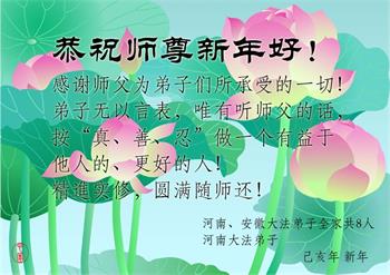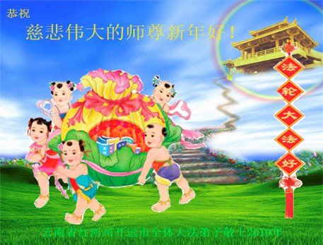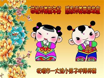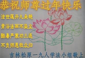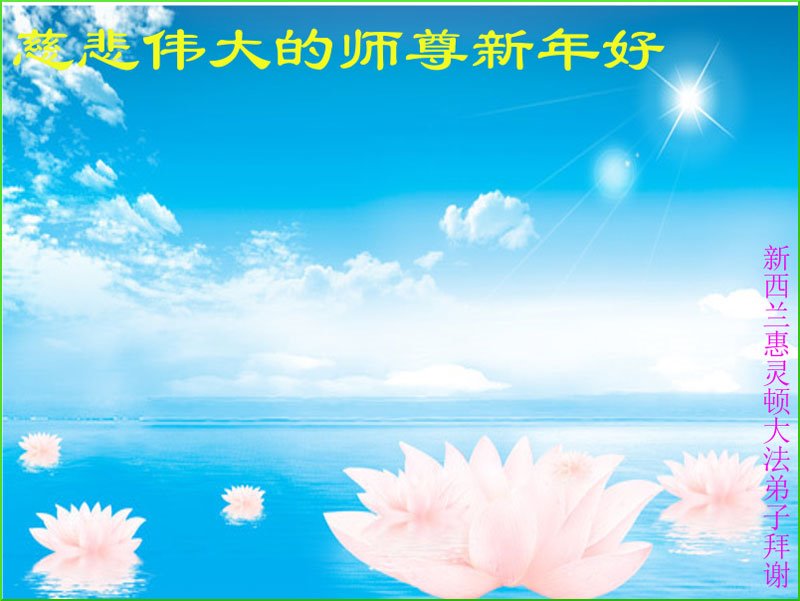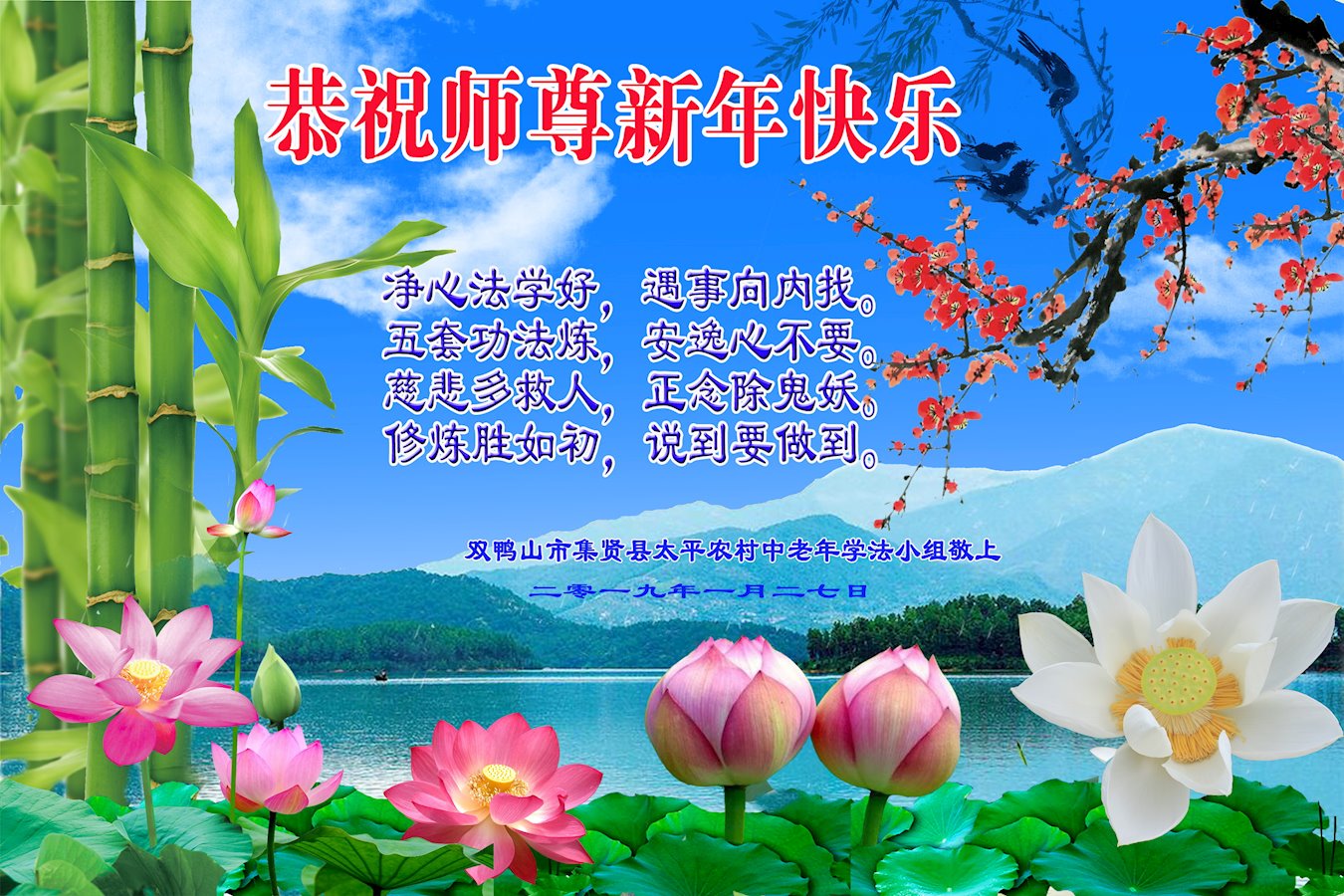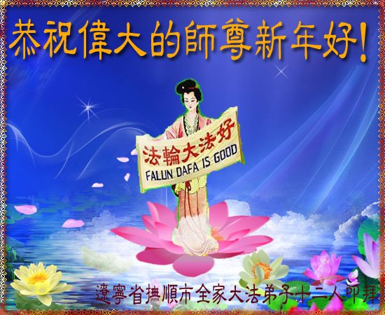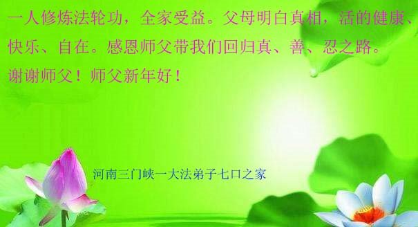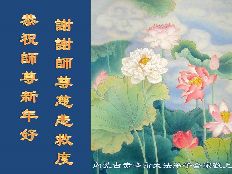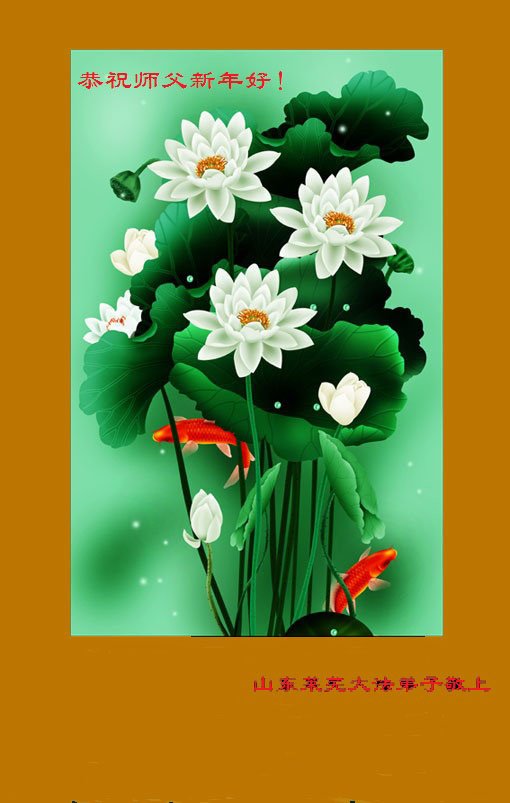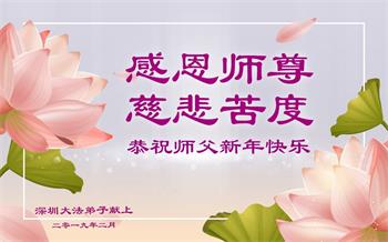 尊敬的师父:您好!在师尊救度苍穹无量众生、法正洪宇的伟大正法中,又一个中国新年来临了。值此辞旧迎新之际,法国大法弟子在无限感恩中向慈悲伟大的师父拜年!恭祝师父新年快乐!
