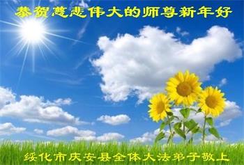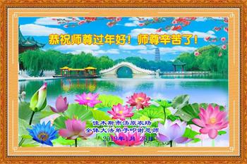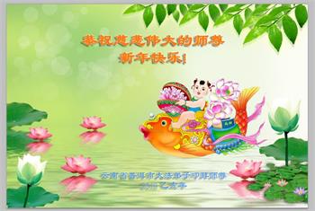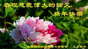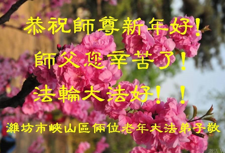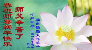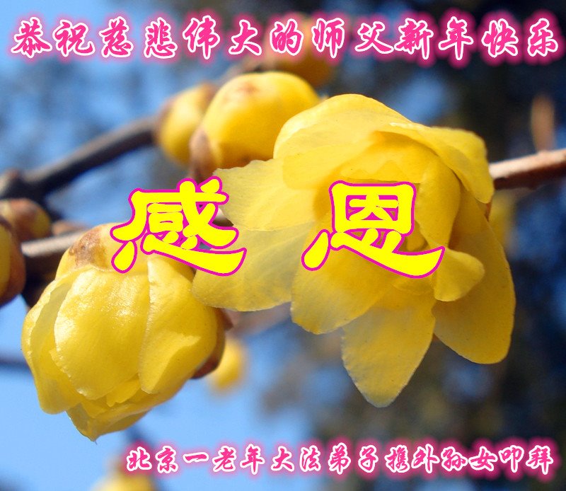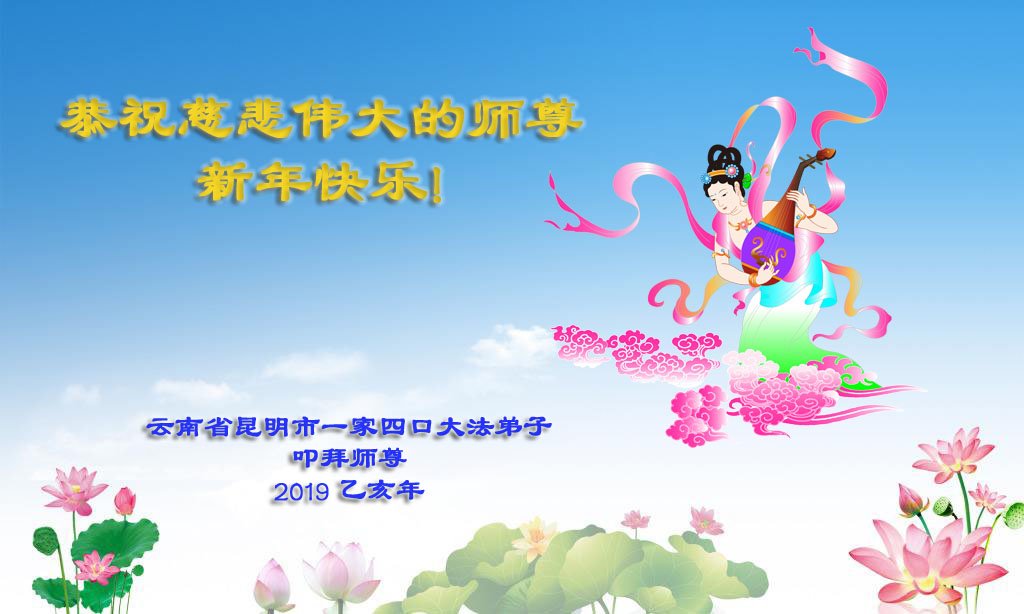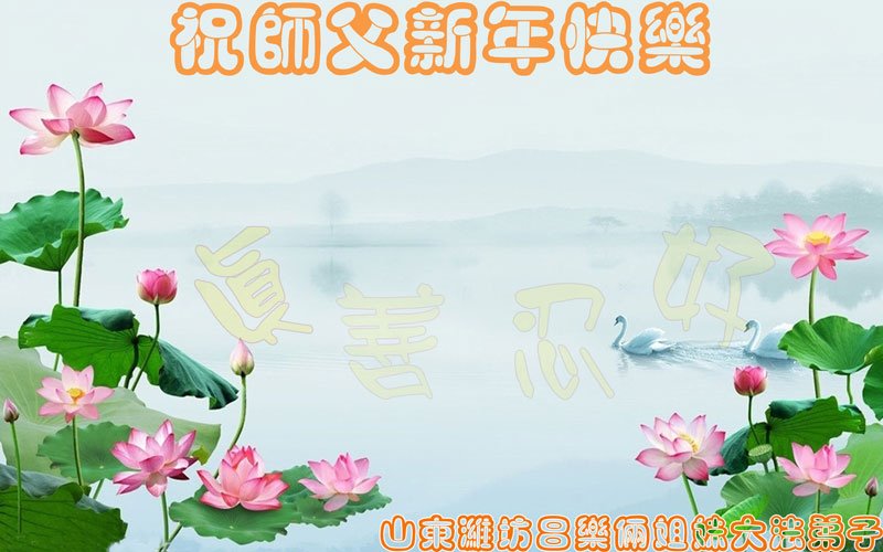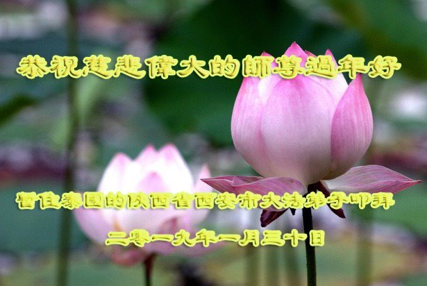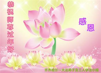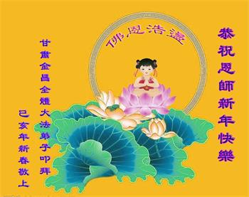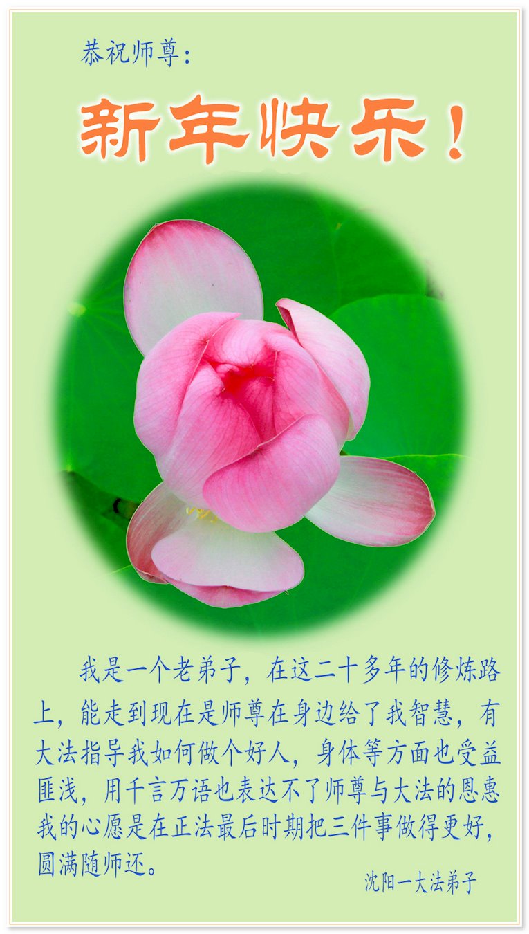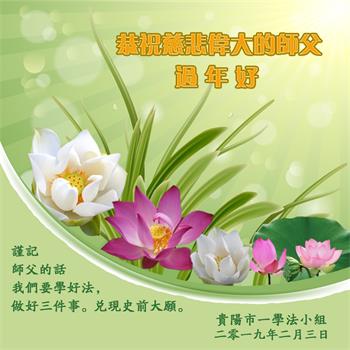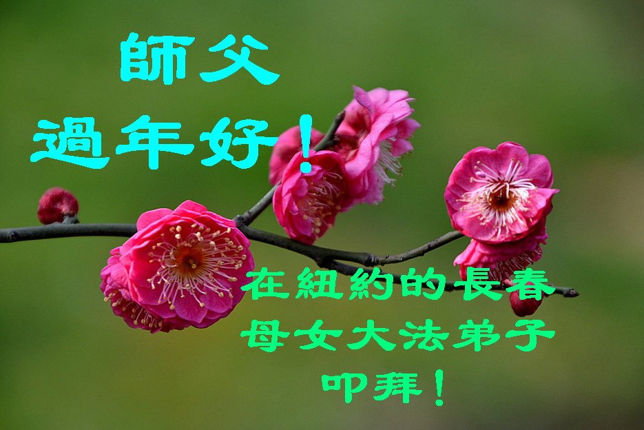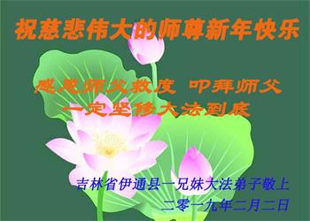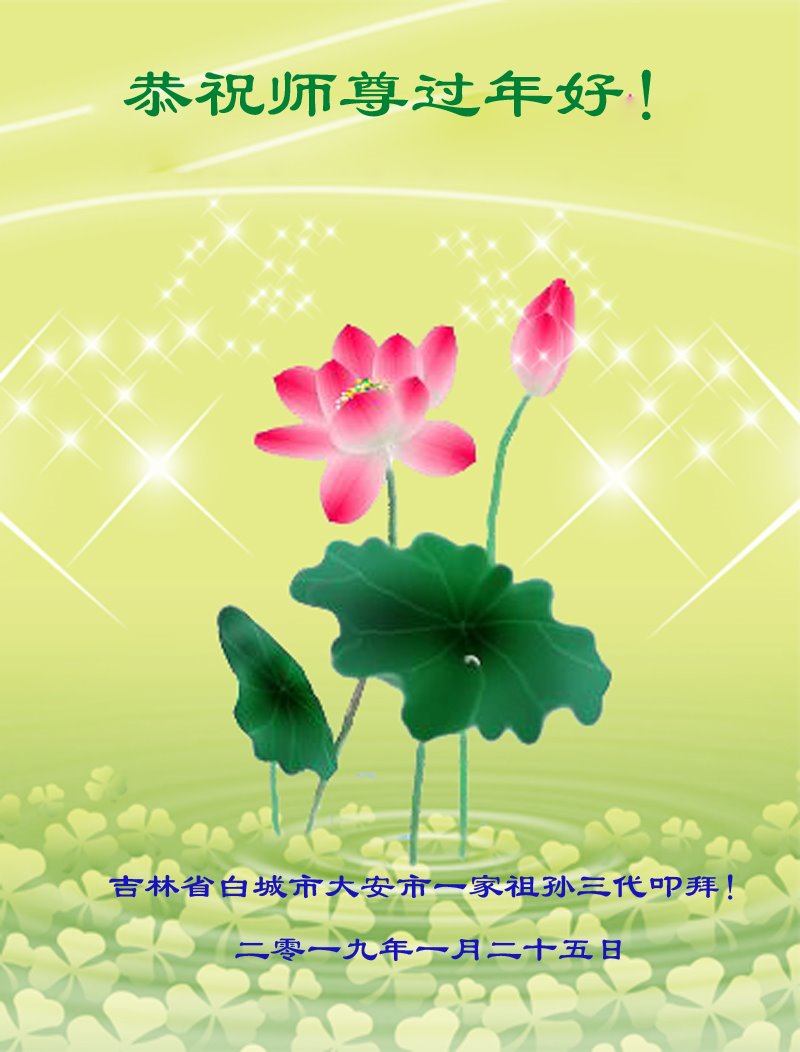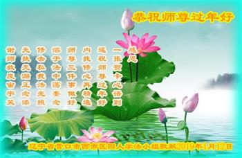 尊敬的师父:您好!在师尊救度苍穹无量众生、法正洪宇的伟大正法中,又一个中国新年来临了。值此辞旧迎新之际,法国大法弟子在无限感恩中向慈悲伟大的师父拜年!恭祝师父新年快乐!