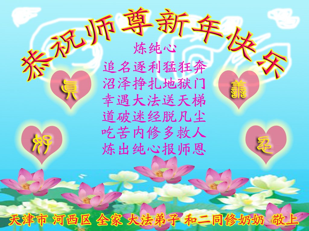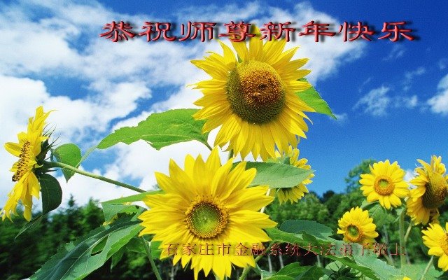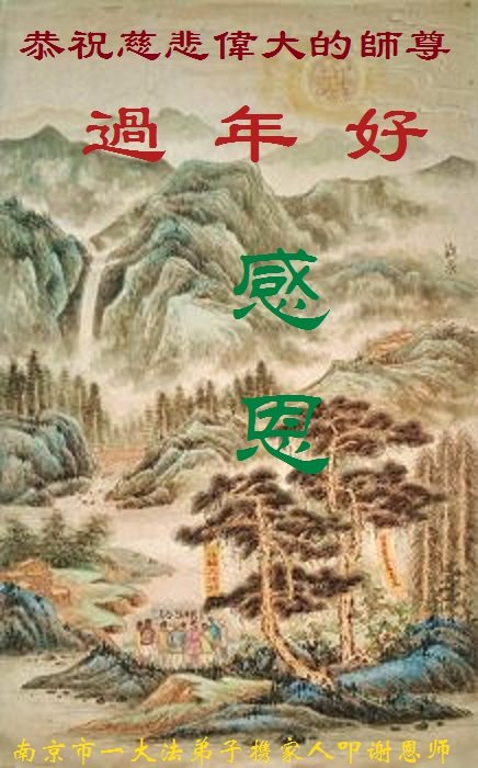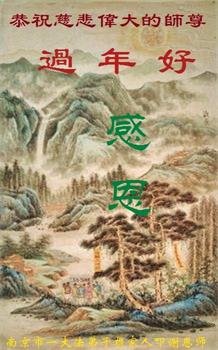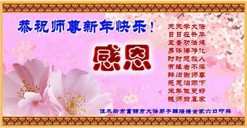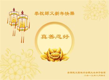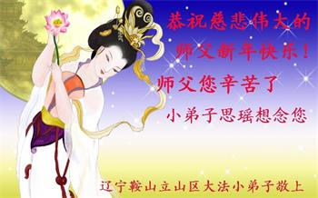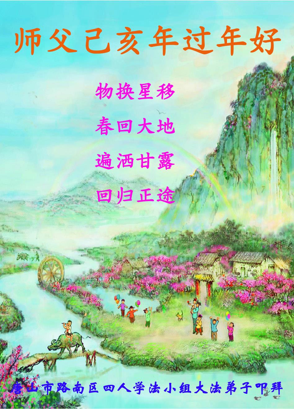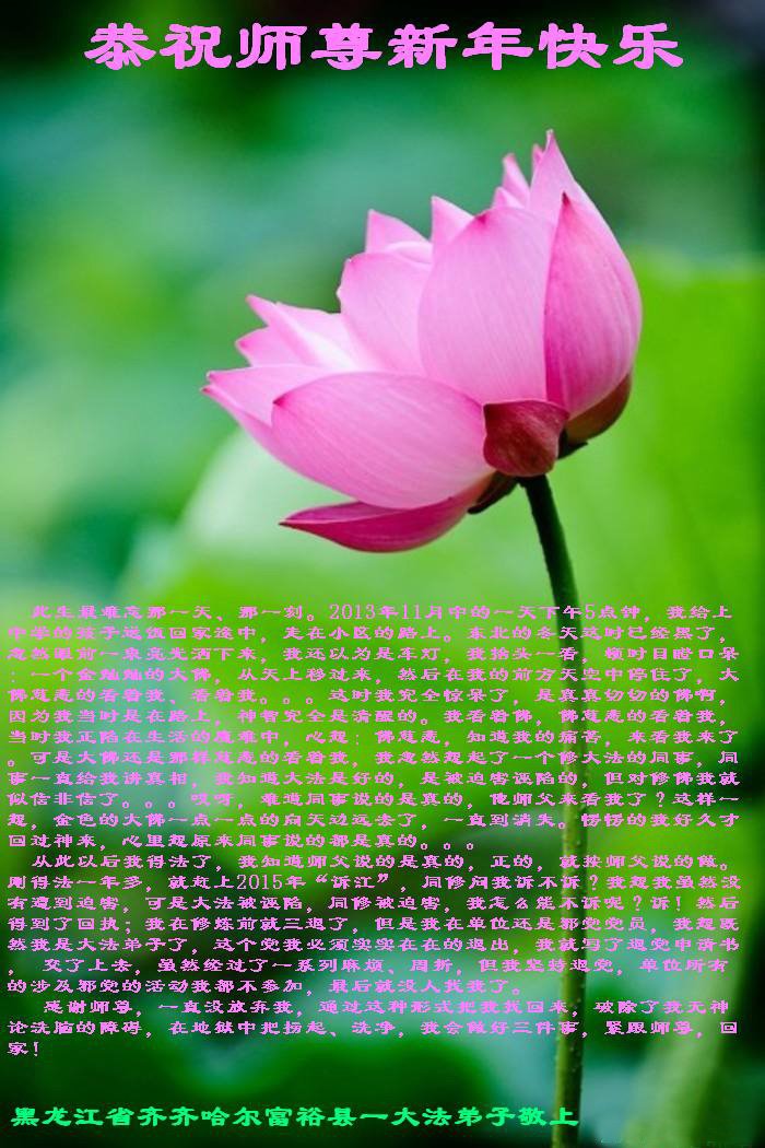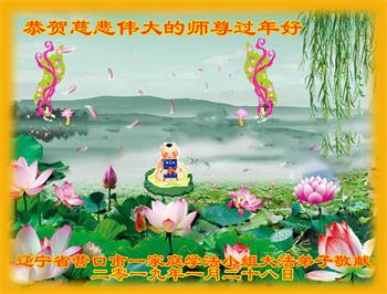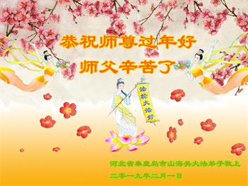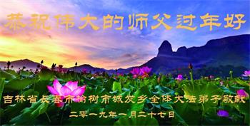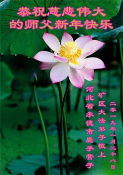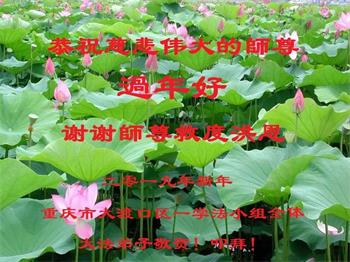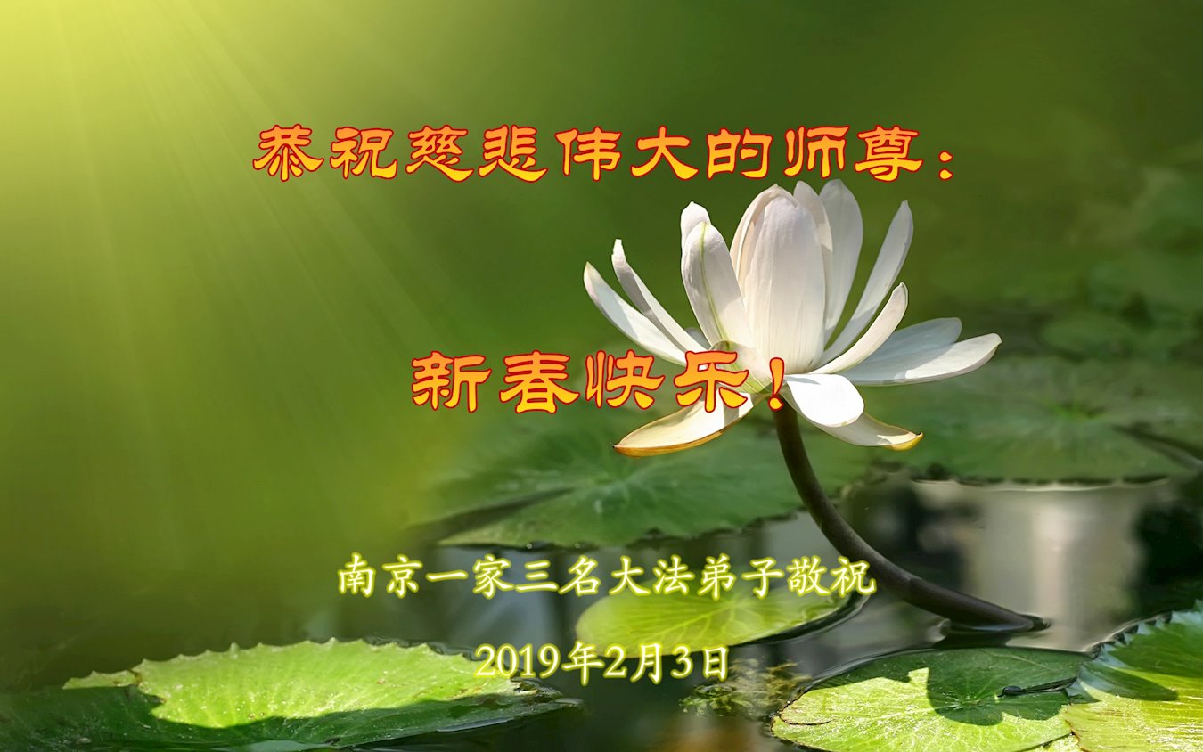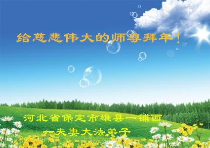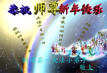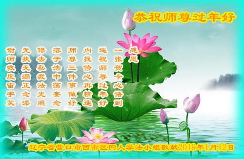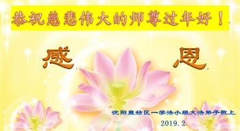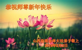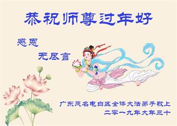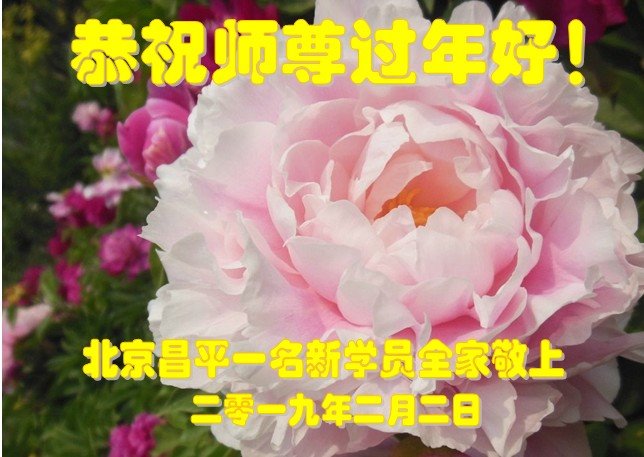 尊敬的师父:您好!在师尊救度苍穹无量众生、法正洪宇的伟大正法中,又一个中国新年来临了。值此辞旧迎新之际,法国大法弟子在无限感恩中向慈悲伟大的师父拜年!恭祝师父新年快乐!