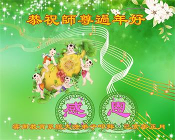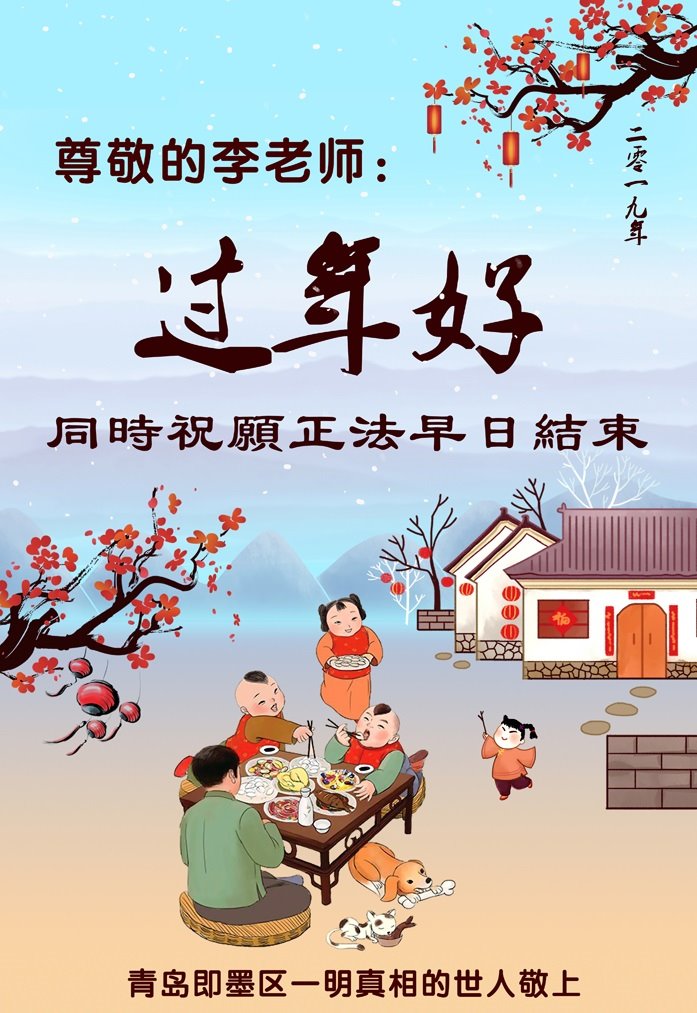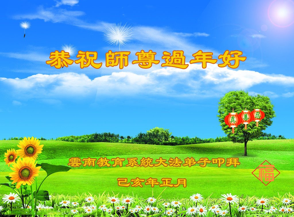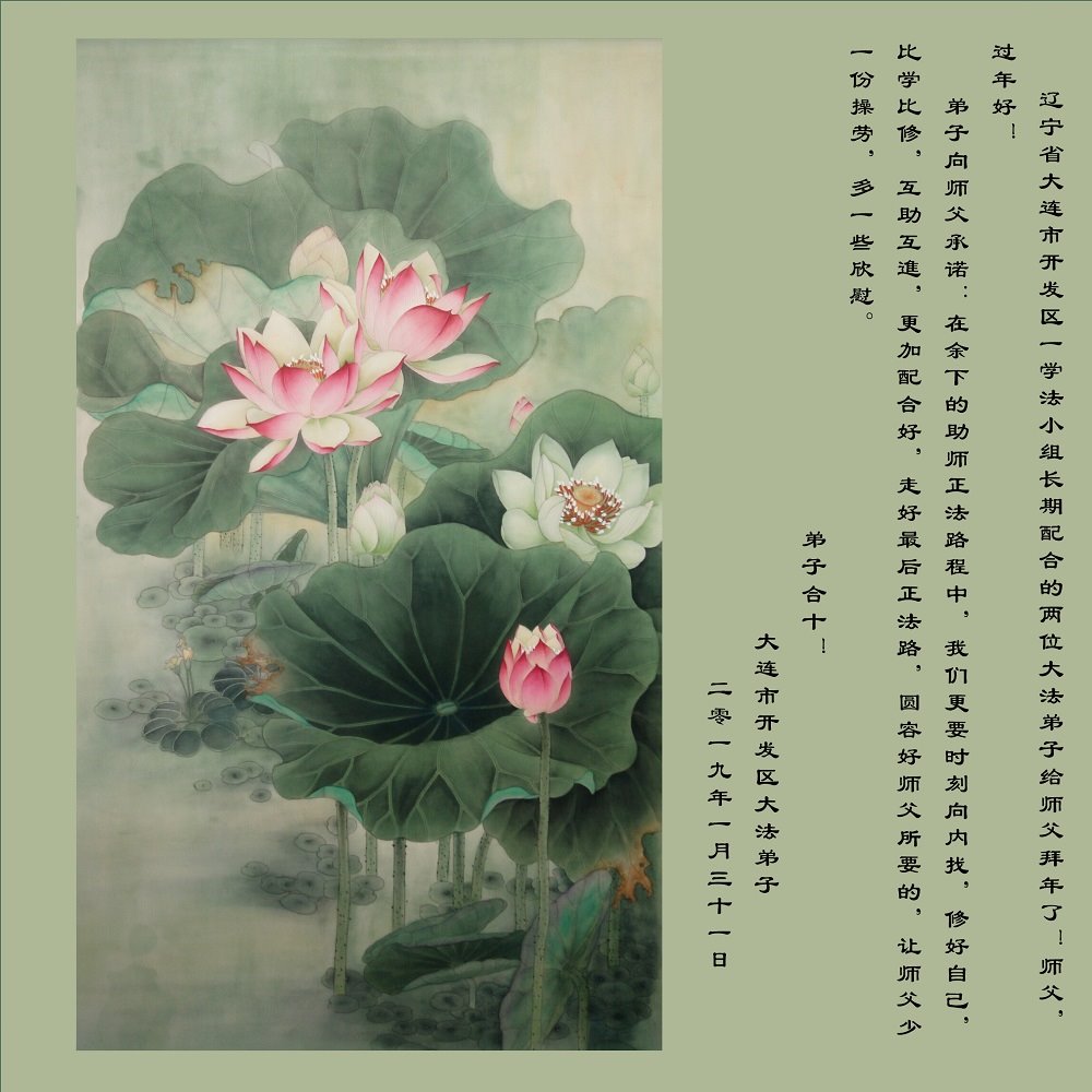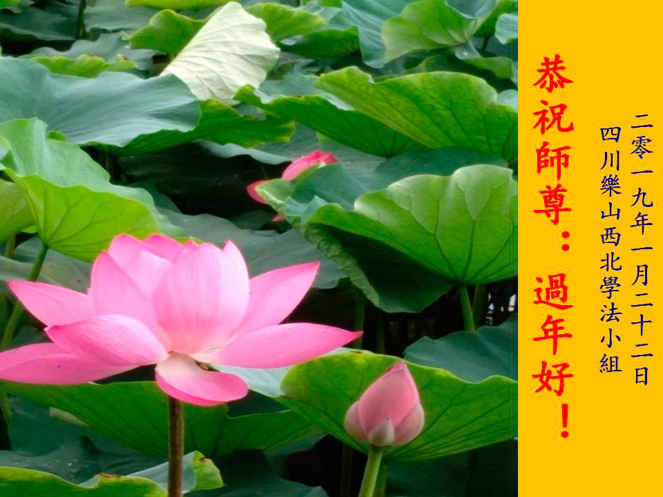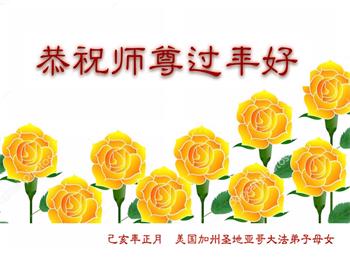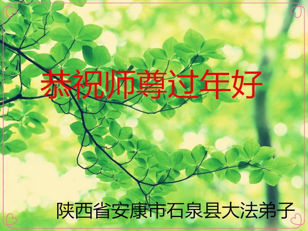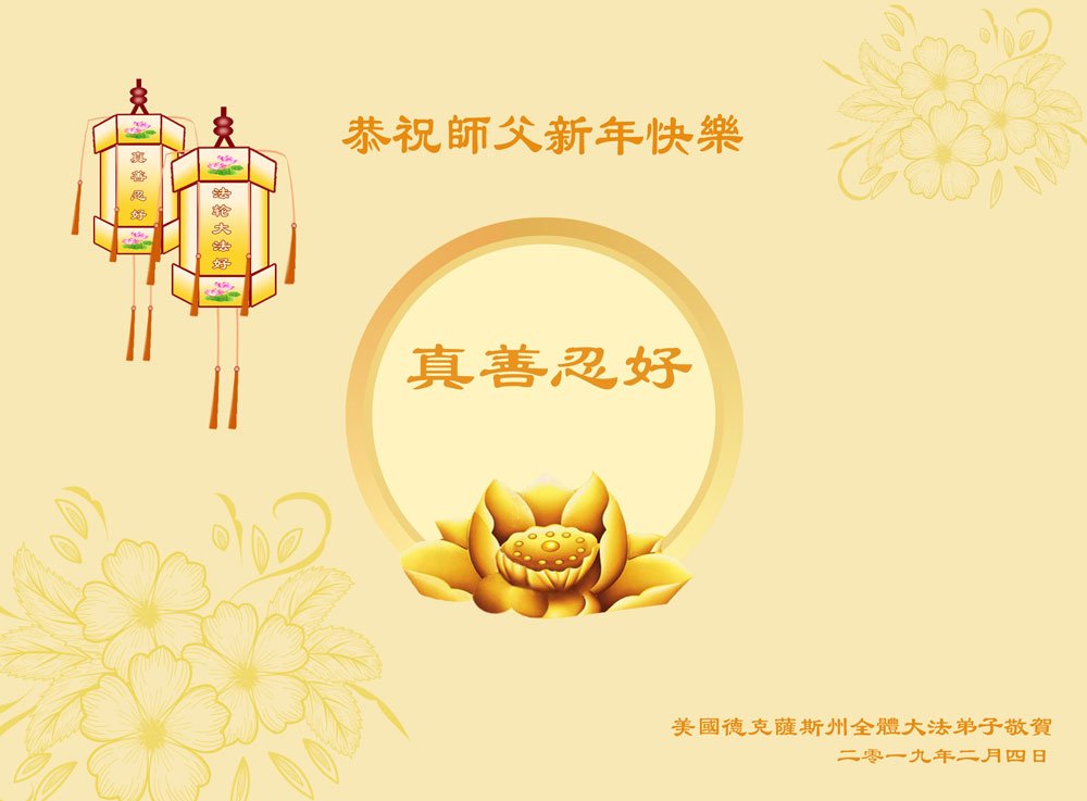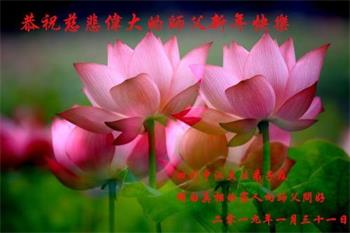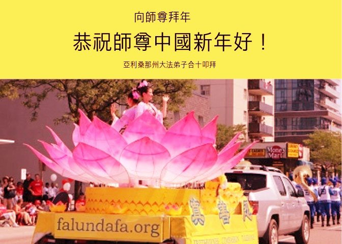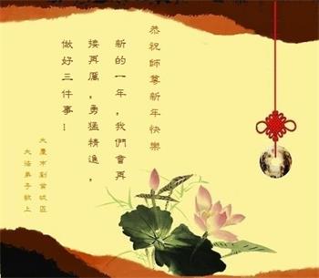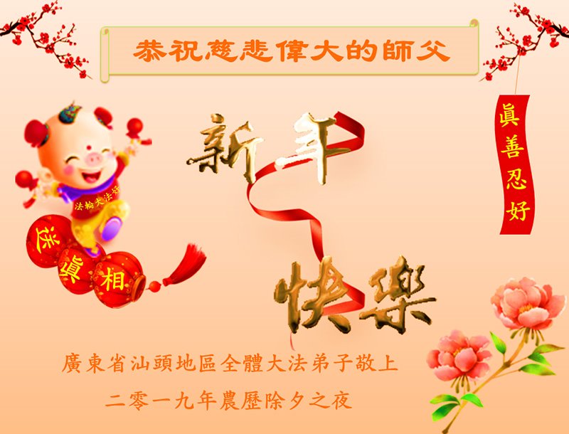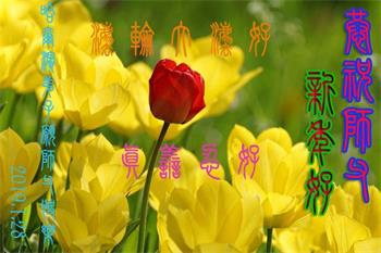 尊敬的师父:您好!在师尊救度苍穹无量众生、法正洪宇的伟大正法中,又一个中国新年来临了。值此辞旧迎新之际,法国大法弟子在无限感恩中向慈悲伟大的师父拜年!恭祝师父新年快乐!