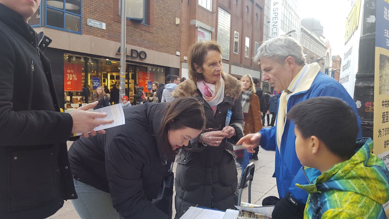 来自都柏林的一位小伙子在看过法轮功被迫害的展板后心情非常沉重,默默地在征签信上签名后,他向爱尔兰裔学员麦克尔询问了很多问题,希望能够了解更多的真相,并询问自己如何能帮忙。
