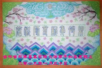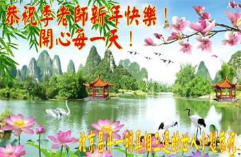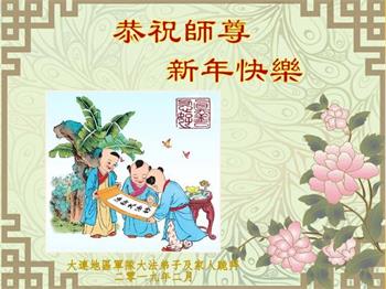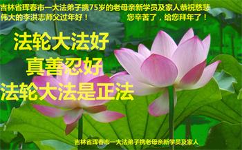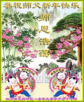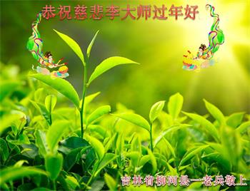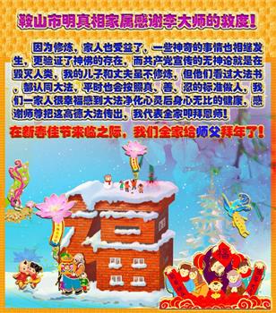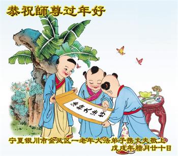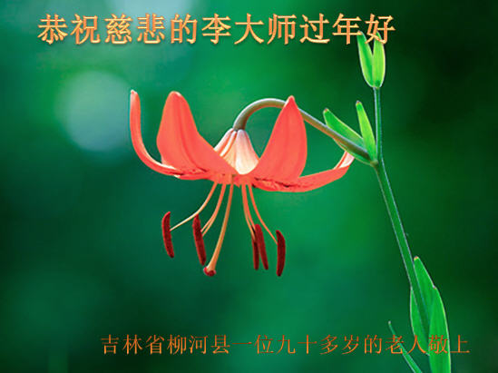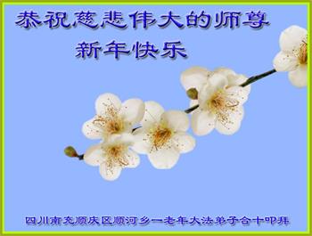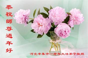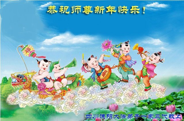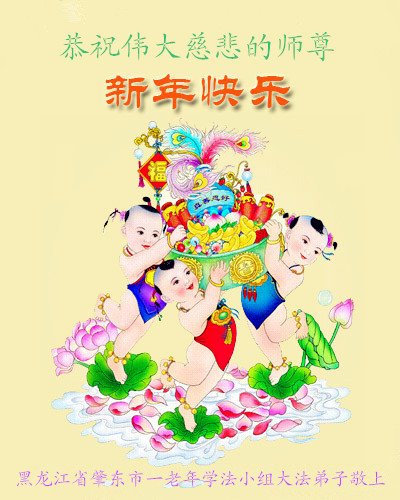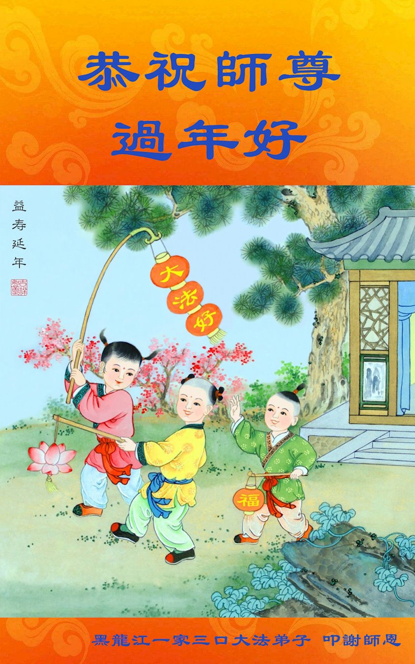 又到新年了,李大师托您的福,八十岁的我,越活越年轻,每天乐乐呵呵的。虽然我眼下还没炼法轮功,可我三个孩子都是您的弟子,他们跟着您学做好人,我也跟着沾光,左邻右舍都说我这仨孩子一个赛一个的孝顺,羡慕我老头子有福。