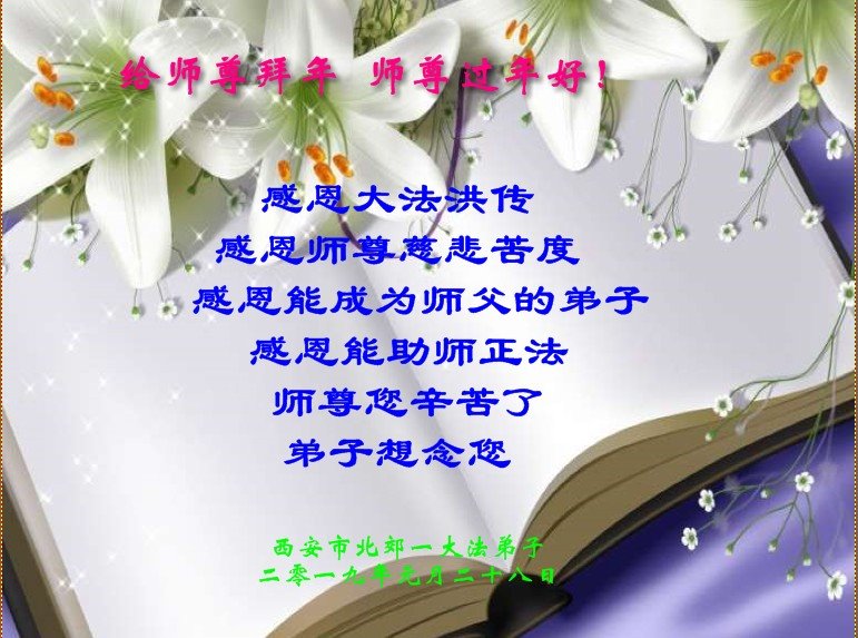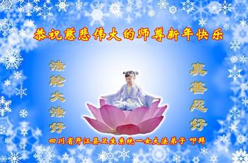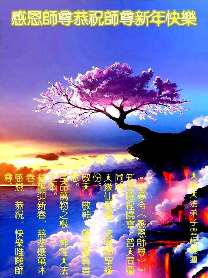 您的大法给予了我们太多太多。在新年到来之际,我在此感谢师父的慈悲苦度!恭祝师父新年快乐!万事如意!