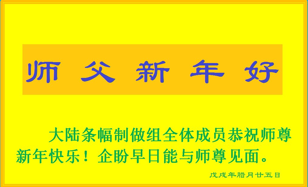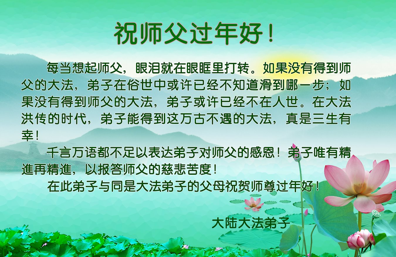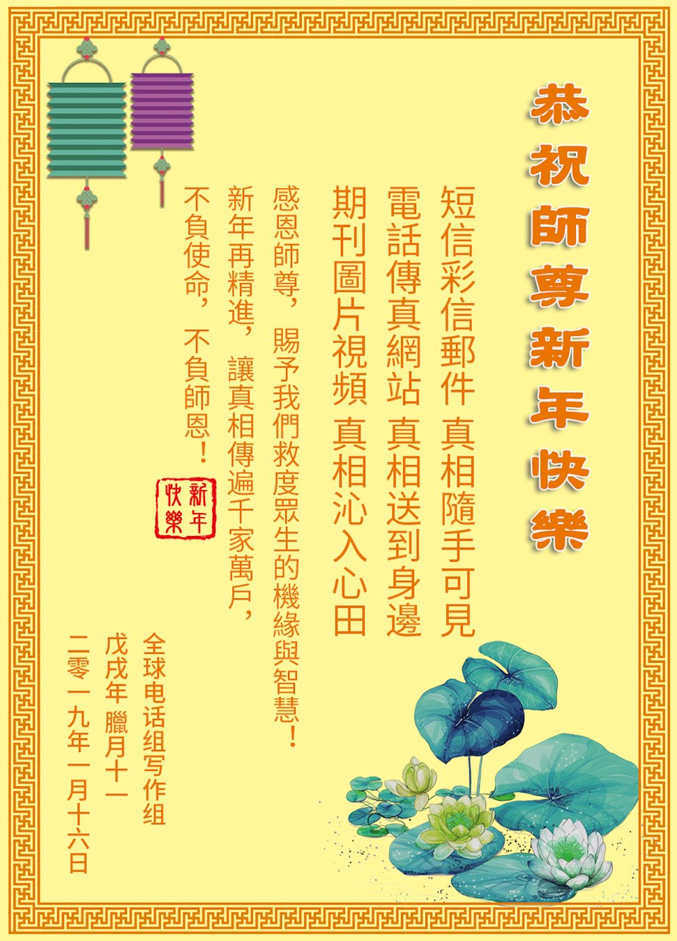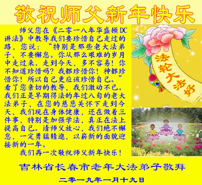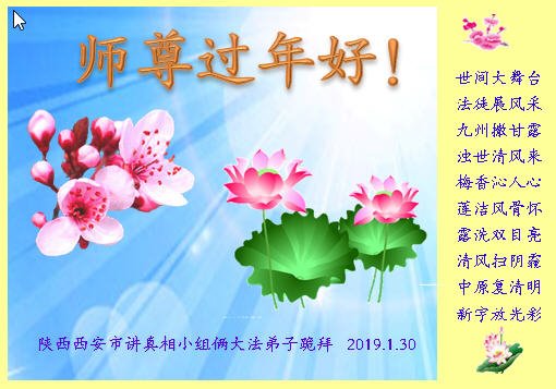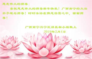 【明慧网二零一九年二月六日】(明慧网通讯员综合报道)2019年新年到,明真相的中国民众发来贺信给李洪志大师拜年!尽管法轮大法仍在遭受中共严重迫害,但了解大法真相的民众与日俱增。