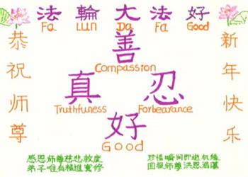 深圳市民在贺卡中说:“拜读过师父的《转法轮》一书,书中论述的道理令人赞服,写的太好了!我希望中国民众能有更多的人拜读此书,使民众道德提升,振兴中华民族。有机会我也要炼法轮功,做一个好人。”