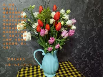 我们深知:没有大法的救度就没有我们的一切,没有师尊的慈悲保护就无法修炼。在新的一年里,我们一定学好法,做好三件事,多救人,向师尊交一份满意的答卷。