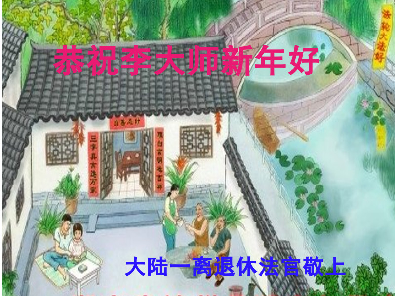 大陆一退休法庭庭长给李大师拜年,写道:想当年迫害初期,我仨孩子都是大法弟子,老伴也炼,我的压力太大了,曾想阻止他们,可您的感召力大呀,老伴一身病也炼好了,他们谁也不放弃修炼。……出门要坐车,警察非让我踩着您的像,我就跟他们火了,理直气壮,还真把他们给震住了。就是这小小的正义之举,就让我福报连连,年年体检身体棒棒的,就连陈年的胃溃疡都好了。