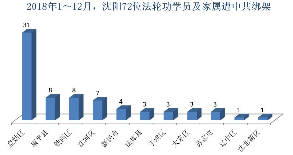 '图:2018年1~12月,沈阳72位法轮功学员及家属遭中共绑架'