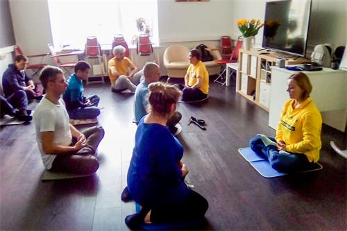 ![]() 图1:二零一九年三月二日至十日,在俄罗斯莫斯科举办了“法轮大法九天班”,参加者们正在听法轮功学员的介绍。 |