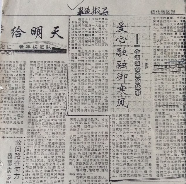在社会上,高锦淑也经常舍己为人做好事。曾帮助过一个被父母遗弃的十岁左右的小女孩,当时正赶上她的生日,高锦淑就象对待亲生女儿一样给她过生日。前后经过二十多天,先是找到了她在上海的生父母,生父母不管,又辗转找到她的养父母,此事在当时绥化地区报登载过,当时的题目是《爱心融融御寒风》,副标题是:一个流浪女童的故事。